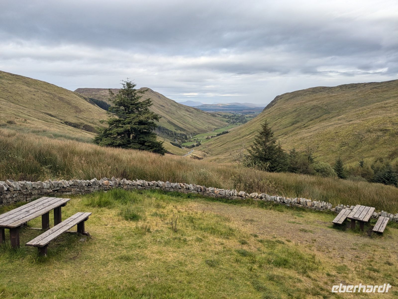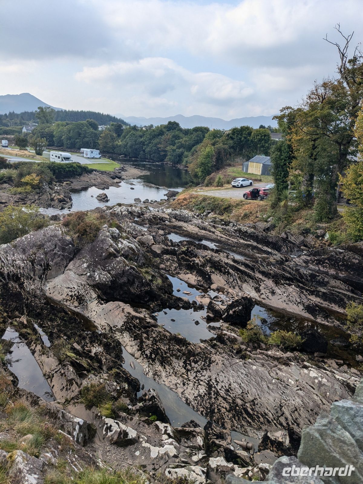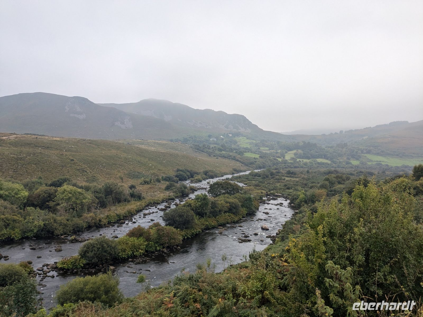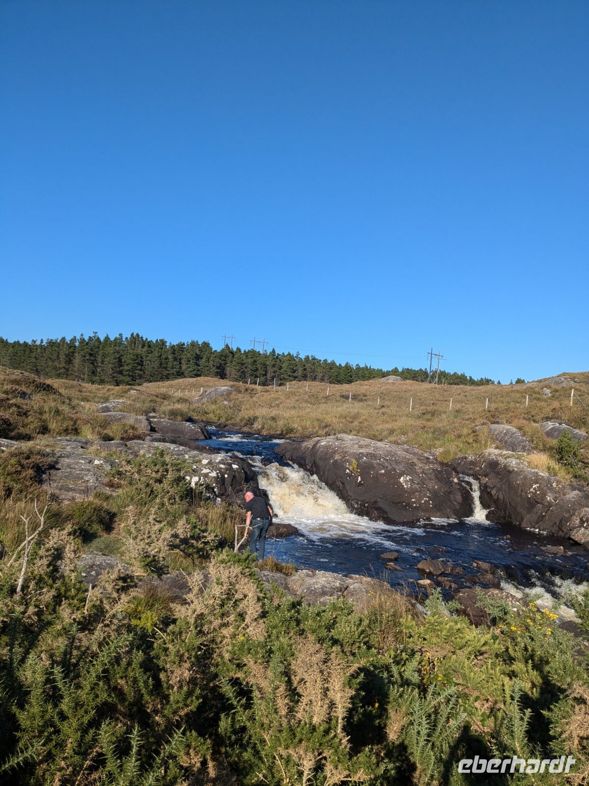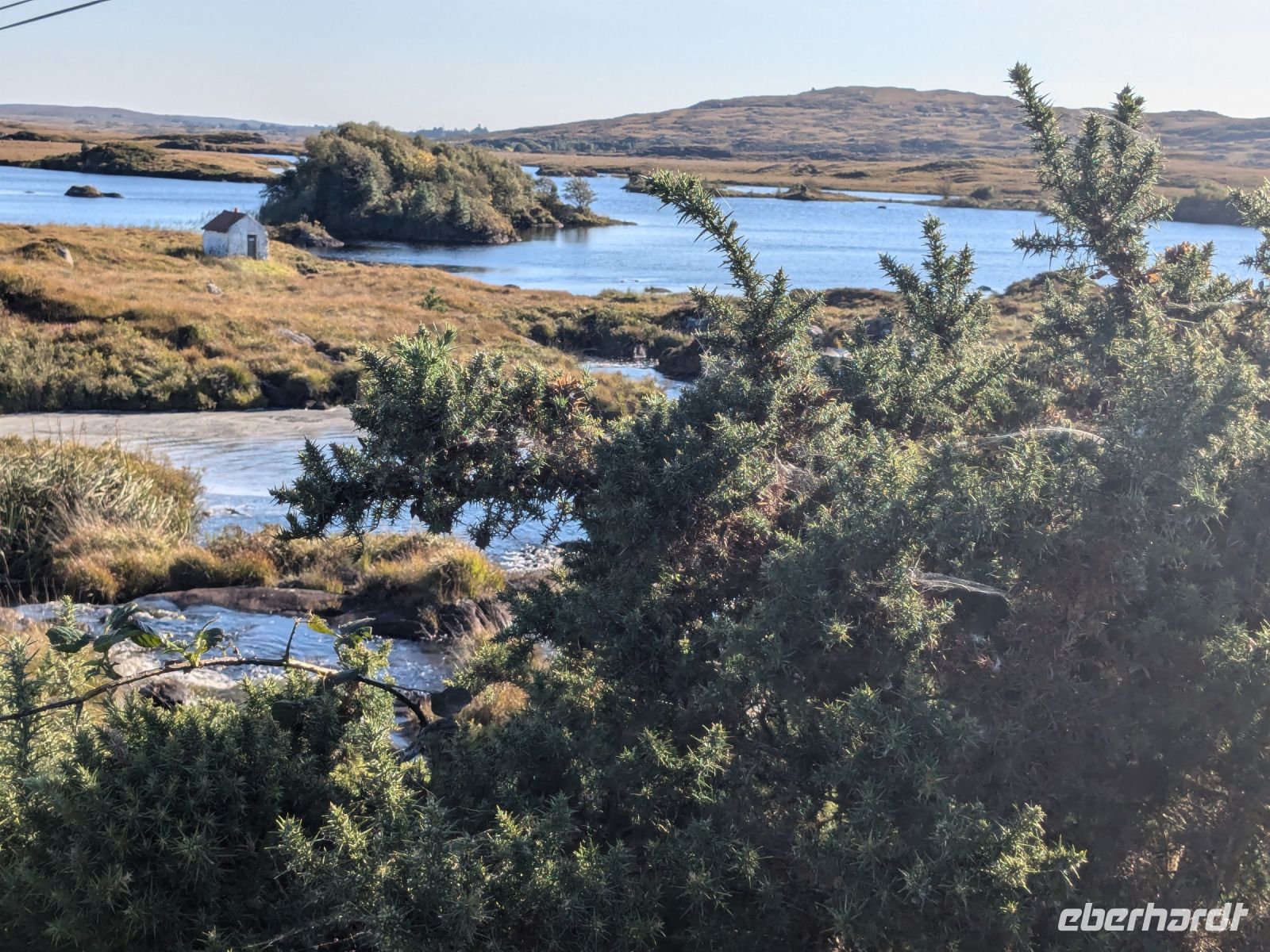 Bevor wir schließlich unser Hotel in Gort erreichten, legten wir einen letzten Zwischenstopp an einem Aussichtspunkt ein. Von hier aus bot sich uns ein wunderbarer Blick auf den Screebe Waterfall, der sich idyllisch in die grüne Landschaft einbettete. In der Ferne konnten wir die Gillie’s Hut erkennen, eine kleine Hütte, die unter den Einheimischen als „Salmon Hut“ bekannt ist. Hier sammelten einst Fischer die besten Lachse der Region.