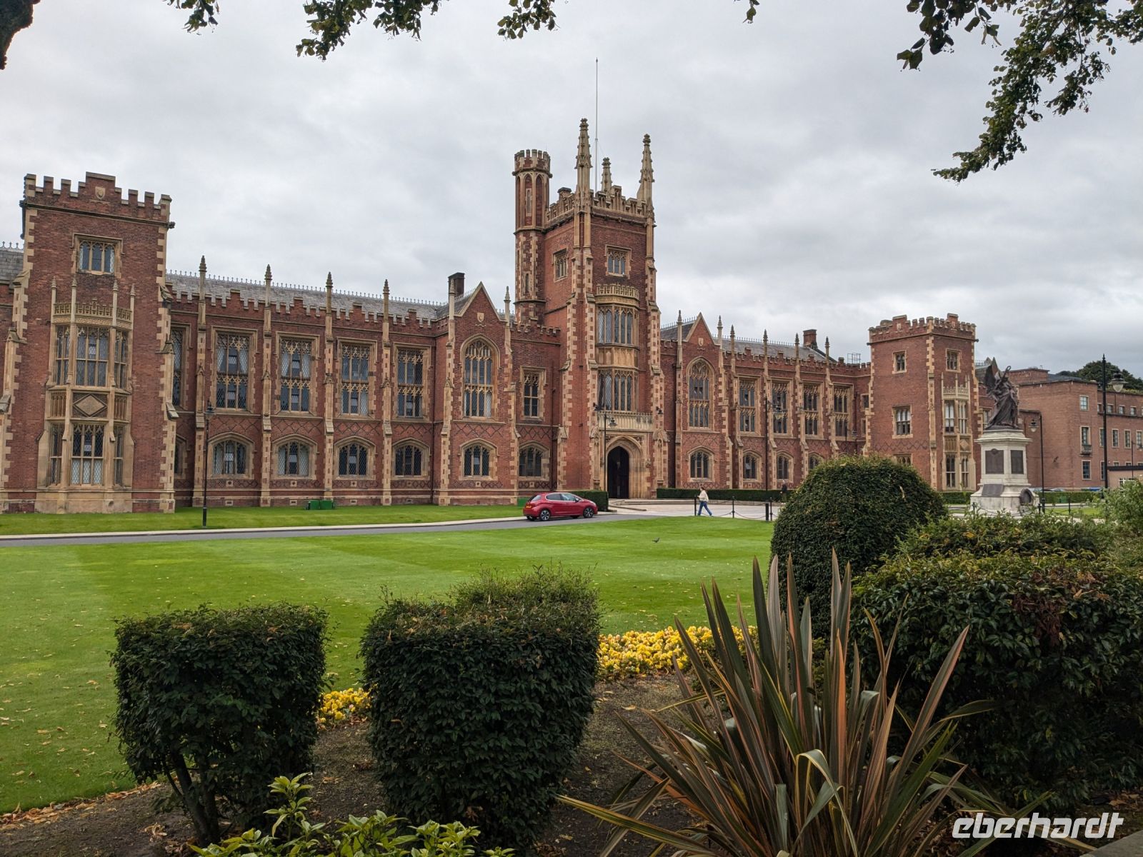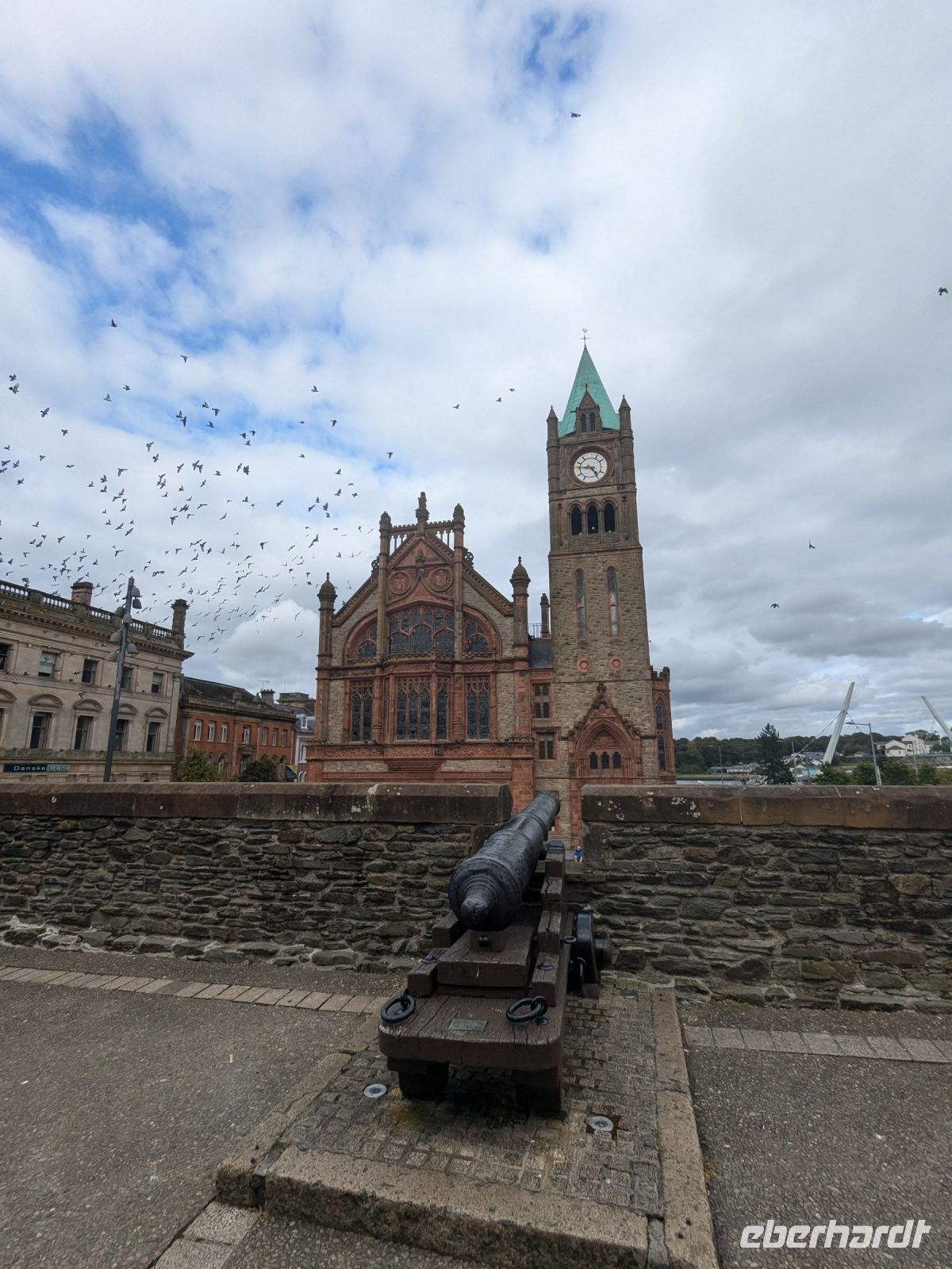 Vorbei an der Ruine des dramatisch auf den Klippen gelegenen Dunluce Castle, die wir noch schnell fotografierten, erreichten wir Londonderry/Derry. Dort spazierten einige von uns auf der 1,5 km langen Stadtmauer, die einen fantastischen Überblick über die Stadt bot. Andere liefen einfach nur durch die Straßen und genossen die lebendige Atmosphäre. Am Abend kamen wir in Letterkenny in der Republik Irland an, wo wir erschöpft aber zufrieden unser Quartier für die nächsten zwei Nächte bezogen.