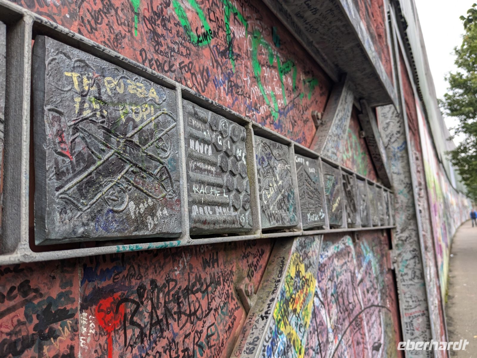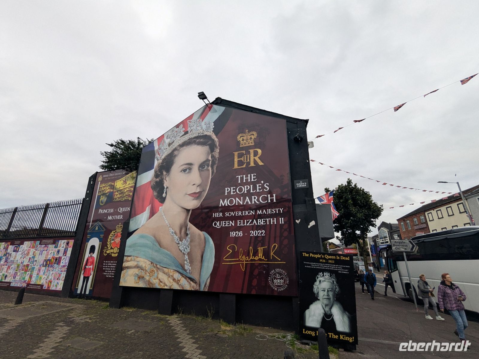 Weiter ging es zur imposanten Peace Wall, einem Symbol für den jahrzehntelangen Konflikt in Nordirland, der hier zwischen katholischen und protestantischen Gemeinden herrschte. Sie trennt bis heute einige Stadtteile, doch auch Zeichen der Hoffnung und Versöhnung sind überall zu finden. Ein besonders emotionaler Moment war der Besuch der Gedenktafel für Queen Elizabeth II. Anschließend führte uns der Weg zum Gelände der Titanic Experience, wo wir das beeindruckende Gebäude umrundeten. Von außen konnten wir die Architektur bewundern und einen Eindruck davon gewinnen, wie hier die Geschichte des berühmten Schiffes – von seinem Bau bis zu seinem tragischen Untergang – anschaulich dargestellt wird.