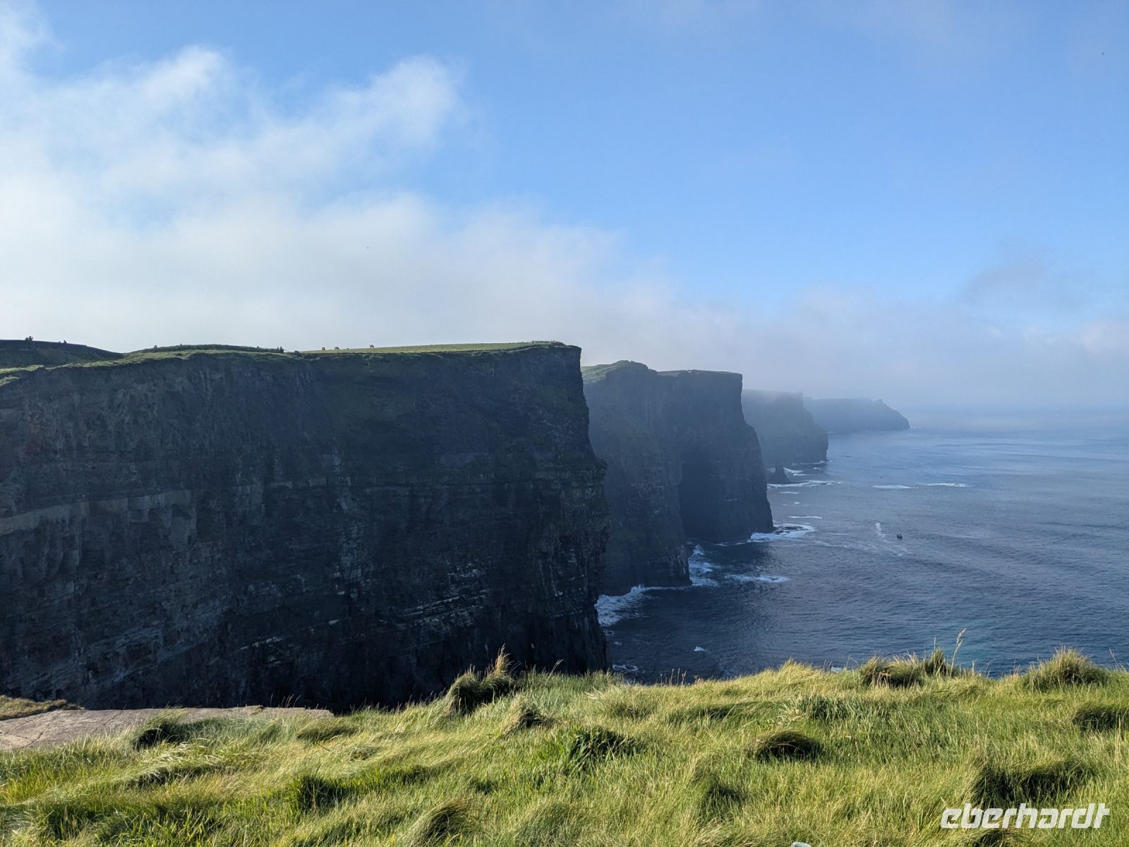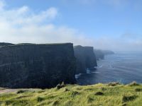 Weiter ging es zu den berühmten Cliffs of Moher, wo uns zunächst eine dichte Nebeldecke die Sicht versperrte. Doch allmählich verzog sich der Nebel, und die Sonnenstrahlen tauchten die imposanten Steilklippen in ein besonderes Licht. Einige Gäste schauten sich im Besucherzentrum einen 4D-Film an, der das Gefühl vermittelte, wie ein Vogel an den Klippen entlangzufliegen – ein außergewöhnliches Erlebnis.