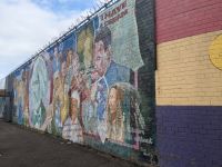Bibi erklärte uns anschaulich, wie diese Mauer einst die Wohnviertel von Katholiken und Protestanten voneinander trennte. Sie zeigte uns die politischen Wandmalereien und berichtete von den anhaltenden Spannungen. Trotz der Fortschritte in der Friedensarbeit waren die Spuren des Konflikts in der Stadt noch spürbar.