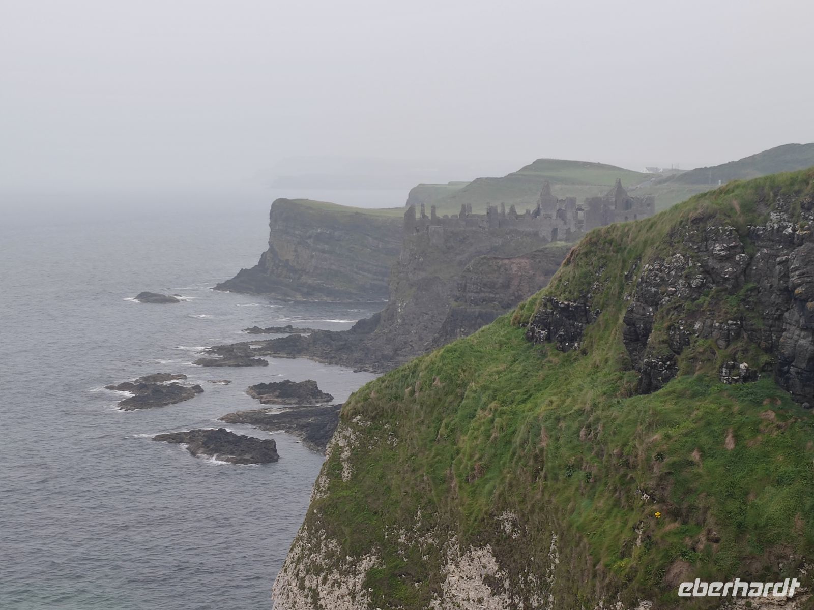 Der Mittwoch begrüßte uns mit etwas Sonnenschein und auf unserer Fahrt entlang der Küste Antrims hielten wir für einen Fotostopp am Carrickfergus Castle, eine der schönsten Burganlagen Nordirlands. Unsere Reise führte uns über Larne weiter zu dem kleinen Fischerort Carnlough. Vor und nach dem Ort münden viele kleine und größere Flüsse aus den Tälern Antrims in den North Channel, der Wasserstraße zwischen Nordirland und Schottland. Über Ballycastle ging es weiter in Richtung Nordküste. Bei der Fahrt durch den Ort sahen wir auch im Hafenbereich die Skulpturengruppe der vier Schwäne. Vor unserem geistigen Auge wurde die Geschichte Lirs und seiner verzauberten Kinder lebendig. Gegen Mittag kamen wir am Giant`s Causeway an, dem „Damm des Riesen“. Die Legende des irischen Helden Fionn und des schottischen Riesen Benandonner wird im modernen Informationszentrum anhand eines Trickfilmes gezeigt. Das Wetter war gut und so konnten wir einen Spaziergang oberhalb der Klippen wagen. Die Aussicht war atemberaubend! Auf dem Rückweg sahen wir unterhalb der Klippen die ca. 60 Millionen Jahre alten, meist sechseckigen Basaltsäulen, die wie ein steinerner Damm im Meer enden.
