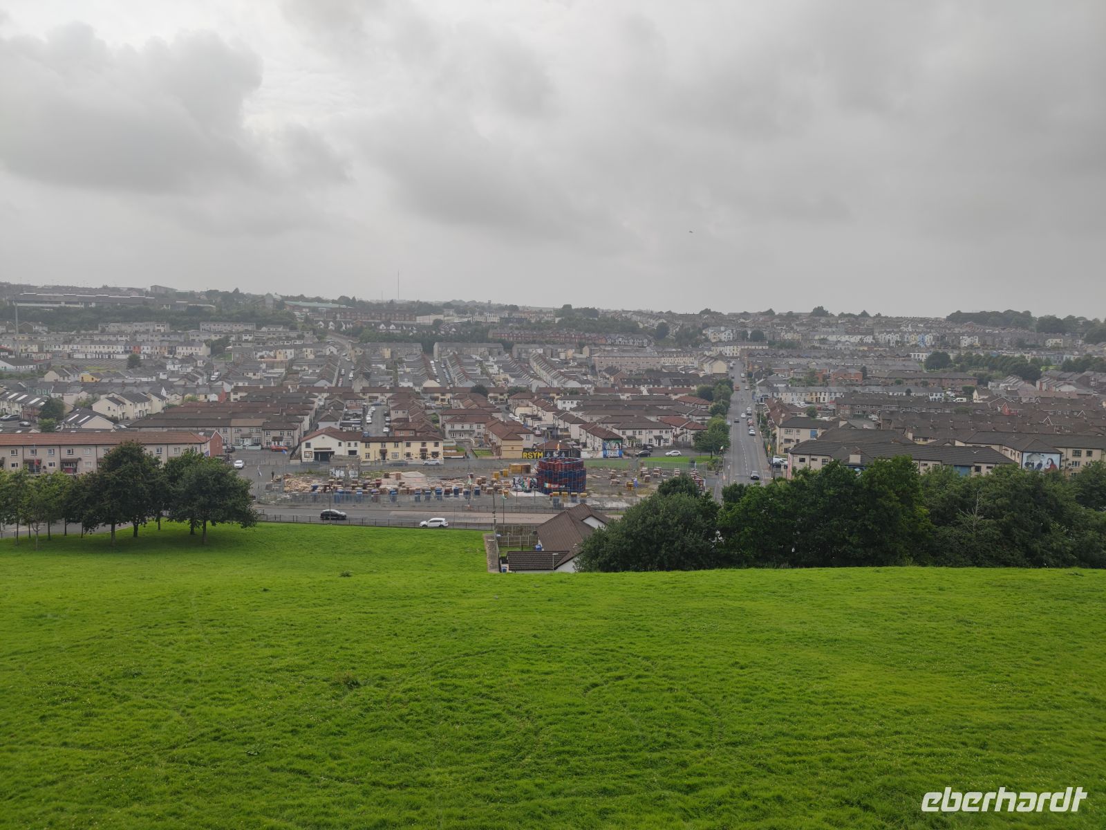 Nach der sich anschließenden Mittagspause im Besucherzentrum fuhren wir weiter nach Derry. Die Stadt steht immer noch als Synonym für die „troubles“, die Auseinandersetzungen zwischen Katholiken und Protestanten rund um den „Bloody Sunday“, dem „Blutigen Sonntag“, an dem am 30.Januar 1972 ein Fallschirmjäger-Regiment der britischen Armee das Feuer auf eine friedlich demonstrierende Menschenmenge eröffnete. Auch in Derry sind die Wohnviertel nach Religionszugehörigkeit getrennt. Wir umrundeten auf der massiven Stadtmauer das historische Stadtzentrum und fuhren danach zu unserem Hotel in Letterkenny. Im Speiseraum wurde eine große Leinwand für das Endspiel der Damen-Europameisterschaft im Fußball aufgebaut. Leider verlor unsere deutsche Mannschaft kurz vor dem Ende der Verlängerung. Zumindest ein kleiner Trost an diesem Abend war die Livemusik an der Bar.