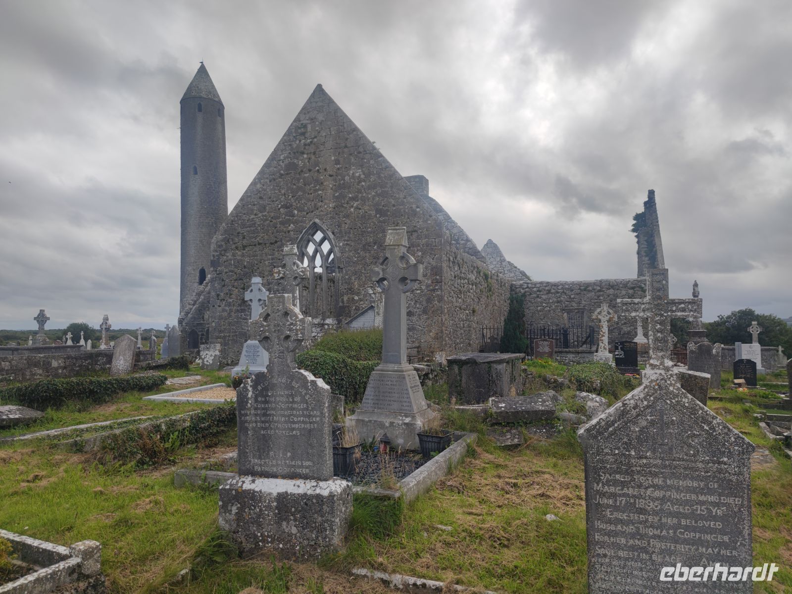 Nach dem Frühstück starteten wir in Richtung Süden und hielten in Donegal, dem Namensgeber des gleichnamigen Countys. Im Ort gibt es mehrere Sehenswürdigkeiten, wie das Donegal Castle, einem ehemaligen Stammsitz des lokalen Clans der O`Donnells, sowie die Ruinen einer ehemaligen Franziskaner-Abtei. Ihr verdanken wir die „Annals of the four masters“, eine Niederschrift keltischer Bräuche, Kultur und Mythologie, welche die Mönche für die Nachwelt bewahren wollten. Von Donegal aus fuhren wir zum National Museum of Island life. Es war interessant zu sehen, wie die Lebensverhältnisse der Iren im vergangenen Jahrhundert gewesen sind. Nach einer Mittagspause in Westport fuhren wir nach Gort, zuerst zum ehemaligen Klosterkomplex Kilmacdough, in welchem sich der höchste Rundturm Irlands befindet und anschließend zu unserem Hotel „Lady Gregory“.
