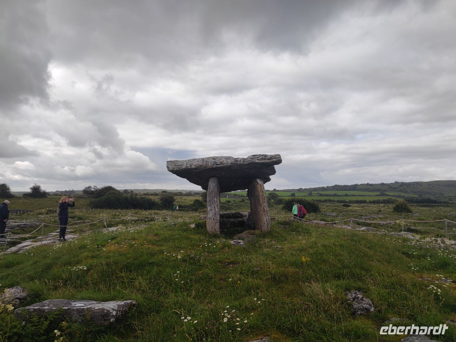 Am Morgen starteten wir zu unserem Tagesausflug in die Region Connemara. Nach der Fahrt durch das Maam-Tal entlang der Maumturk Mountains, machten wir unsere erste Pause am Killarney Fjord in Leenaune. Danach ging es zur Kylemore Abbey. Der Engländer Mitchell Henry erwarb dieses romantische Anwesen im 19.Jahrhundert und ließ eines von Irlands bezauberndsten Schlössern errichten. Anfang des 20.Jahrhunderts übernahmen Benediktinerinnen die Anlage. Während unseres zweieinhalbstündigen Aufenthaltes besuchten wir die Viktorianischen Gärten und die Kylmore Abbey, den ehemaligen Herrensitz. Anschließend fuhren wir durch eine fantastische bergige Landschaft mit vielen Seen voller kleiner bewaldeter Inseln. Am Lough Inagh legten wir einen Fotostopp ein und genossen die Sicht auf die fantastische Bergwelt der Twelve Pins und der Maumturk Mountains. Danach ging es nach Galway. Die Stadt ist eine der lebendigsten Irlands und wir hatten Glück, da in der Woche unseres Besuchs das internationale Kunstfestival mit unzähligen Straßenkünstlern stattfand und die Stadt aus allen Nähten platzte. Ein besonderes Schmuckstück aus Galway ist der Gladdagh-Ring, welcher richtig aufgesteckt anzeigt, wer noch zu haben und wer schon vergeben ist. In der Hauptgeschäftsstraße befindet sich das Lynch Castle, welches einst der Familie Lynch gehörte. Ein Bürgermeister aus der Familie Lynch richtete seinen schuldig gesprochenen Sohn eigenhändig hin, da niemand das Urteil vollstrecken wollte. Wahrscheinlich ist aus dieser Begebenheit der Begriff „Lynchjustiz“ hervorgegangen. Von Galway aus ging es zurück zu unserem Hotel in Gort.