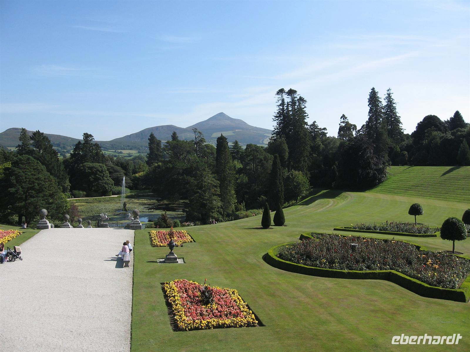 Mit einigen Gästen der Gruppe treffe ich mich am frühen Morgen auf dem Flughafen in Dresden. Gemeinsam fliegen wir mit dem ersten Flugzeug nach Frankfurt/Main und dort treffen wir dann auch die weiteren Gäste die mit uns nach Dublin fliegen. Kurz vor Mittag landen wir dann in Dublin und werden dort schon von unserem Busfahrer Roy erwartet. Auf dem Weg zum Hotel, welches in den Wicklow Mountains liegt, machen wir einen Stopp an einem Supermarkt um uns Wasser zu kaufen. Unser Hotel, das Glen Vieww Hotel liegt unweit der Straße nach Wexford und am Fuße des Sugar Loaf, einem 500 m hohem prägnanten Berg. Den Nachmittag nutzen wir zur Besichtigung von Powerscourt Garden, dem vielleicht schönsten angelegten Garten in Irland. so zu sagen als kleines Bonbon von Eberhardt TRAVEL.