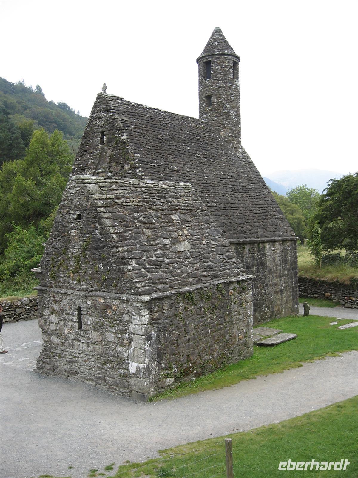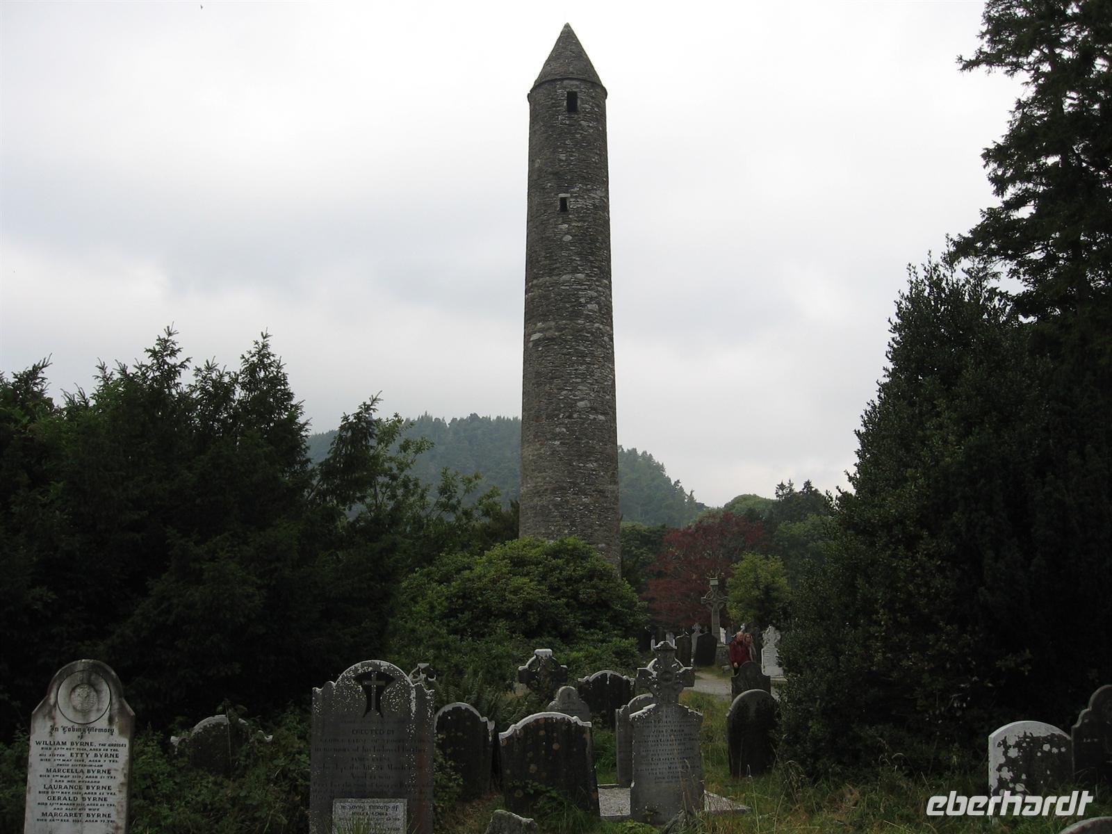 Heute heißt es das erste mal wandern und am Beginn steht auch gleich die anstrengendste Wanderung. Aber bevor es losgeht fahren wir erst einmal vom Hotel aus nach Glendalough, dem Tal der zwei Seen. Hier befand sich eines der wichtigsten frühchristlichen Klöster Irlands, gegründet im 6. Jh. durch St. Kevin. Der christliche Glaube kam durch Patrick vom europäischen Festland nach Irland, verbreitete sich hier und wurde dann von irischen Mönchen wieder auf das europäische Festland zurück gebracht und in den Gebieten, welche nicht unter römischer Herrschaft gestanden haben, verbreitet. Im Visitor Center sehen wir einen Film der darüber und natürlich auch über die Entstehung des Klosters hier berichtet. Anschließend gehen wir gemeinsam mit Fiona, einer deutsch sprechenden Führerin, durch das Klostergelände. Sie zeigt und erklärt uns den Eingang zum Kloster, den Rundturm, die Kathedrale und Kevin Church. Mit Charme und Witz bringt sie uns die Geschichte näher. Das Wetter übrigens meint es mit uns überaus gut. Am Morgen ist es noch etwas diesig, als wir aber zum Wandern aufbrechen kommt wie auf Bestellung die Sonne raus. Wir wandern entlang des Upper Lake bis zum ehemaligen Miners Village, wo sich einige verfallene Gebäude einer längst geschlossenen Bleimine. Dann erfolgt ein Aufstieg bis zu einem Sattel.