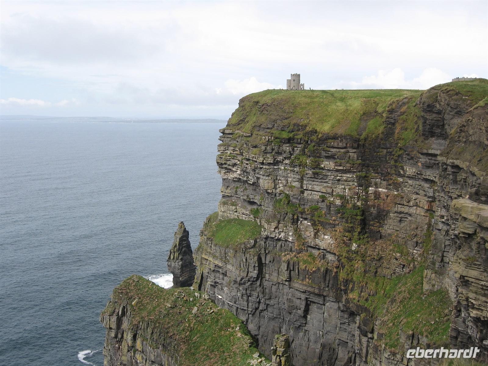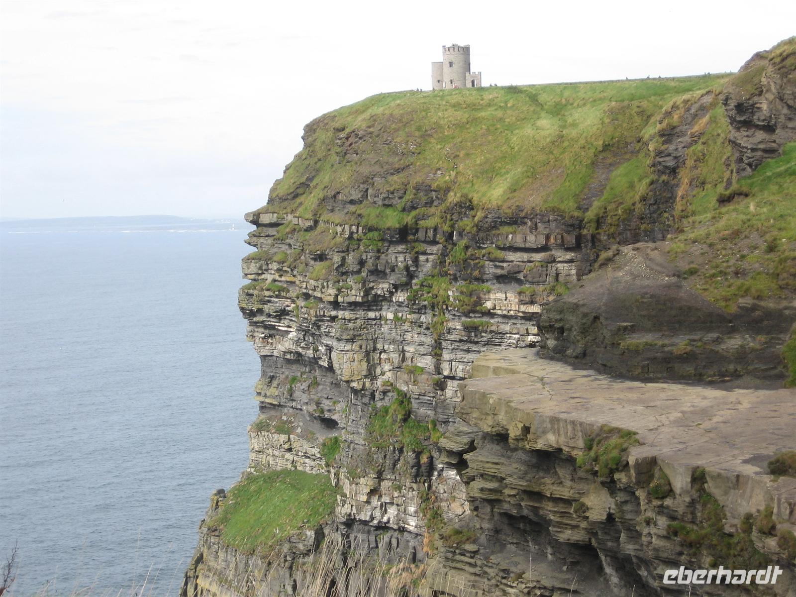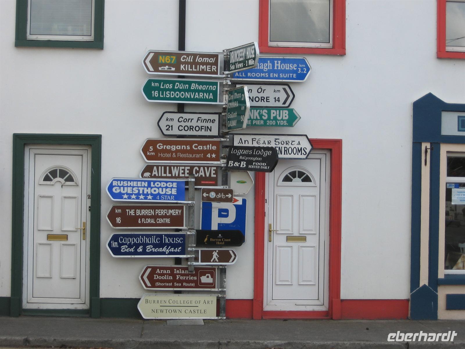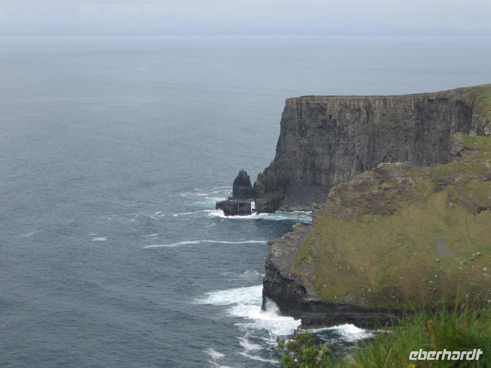 Heute heißt es zeitig abreisen und vor dem Frühstück schon Koffer laden. Wir wollen die AranIslands besuchen, genauer die Insel Inishmore. Dazu müssen wir zum Hafen nach Rosaveel fahren, von dort fährt das Schiff ab. Auf unserem Weg kommen wir an Galway vorbei, der viertgrößten Stadt Irlands. Hier ist immer viel Betrieb. „Stolz wie ein Kaufmann aus Galway" war hier früher ein geflügeltes Wort, war die Stadt doch vor allem im 14.-16. Jh. eine wichtiger Umschlagplatz für Wein. Das heute noch benutzte Wort „Lynchjustiz" soll ebenfalls von hier stammen. James Lynch Fitzstephen, Bürgermeister und oberster Richter der Stadt im 16. Jh., soll seinen Sohn Walter eigenhändig erhängt haben als der Scharfrichter sich weigerte es zu tun. Walter war des Mordes an einem spanischen Seemann angeklagt und der Vater war ein strenger Richter und ließ keine Gnade ergehen, auch nicht bei seinem eigenen Sohn. Inzwischen fahren wir schon am Meer entlang, die Bucht von Galway immer zu unserer Linken und wir können die Berge des Burren sehen, wo wir gestern wanderten. Im Hafen angekommen können wir gleich das Schiff besteigen, auch wenn es noch einige Minuten bis zur Abfahrt dauert. Das Wetter scheint sich aufzuklären. Die Überfahrt ist dann doch ganz schön stürmisch und wir sind froh als wir den Hafen im kleinen Inselhauptort Kilronan erreichen. Wir wandern immer entlang der Nordküste, der Wanderweg führt hier entlang der Straße. Es herrscht allerdings kaum Verkehr, mal ein PKW oder auch eine Kutsche die Gäste transportiert.