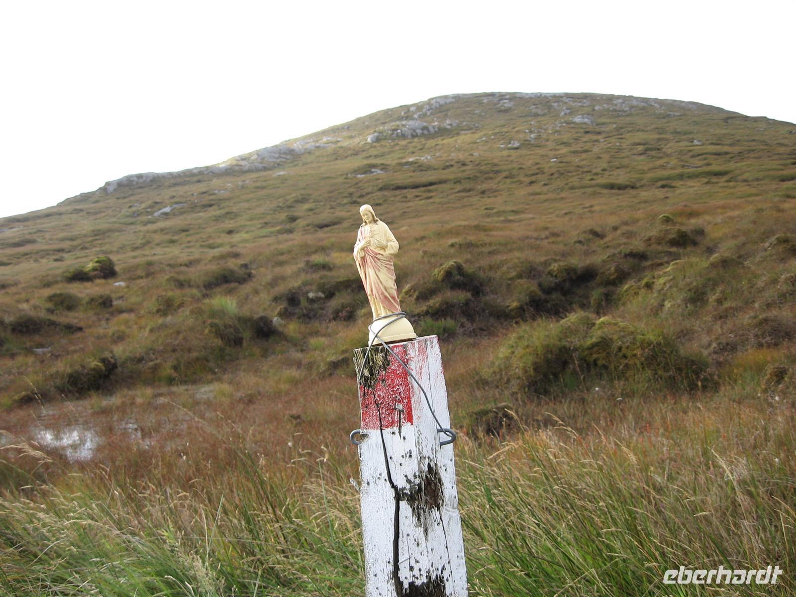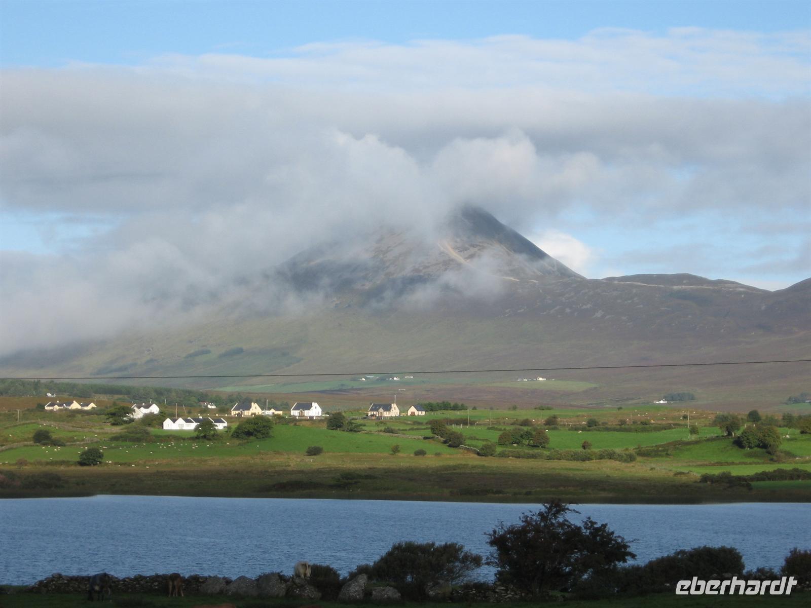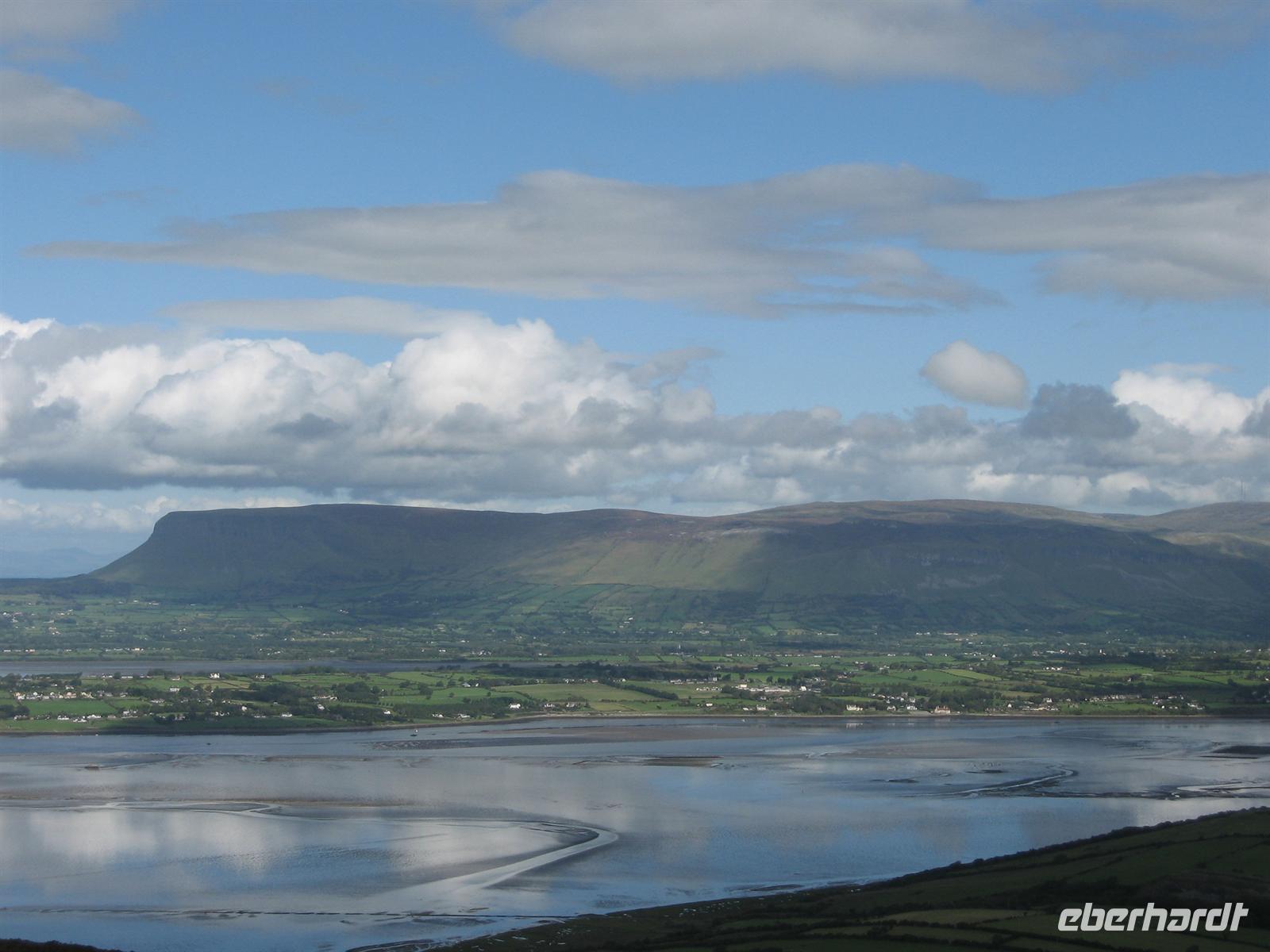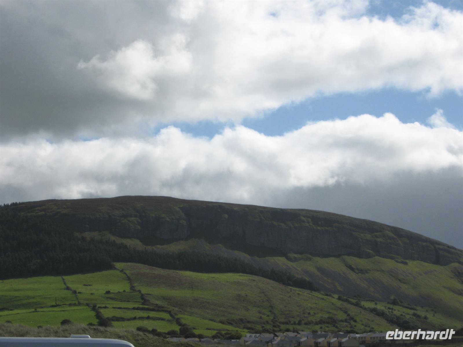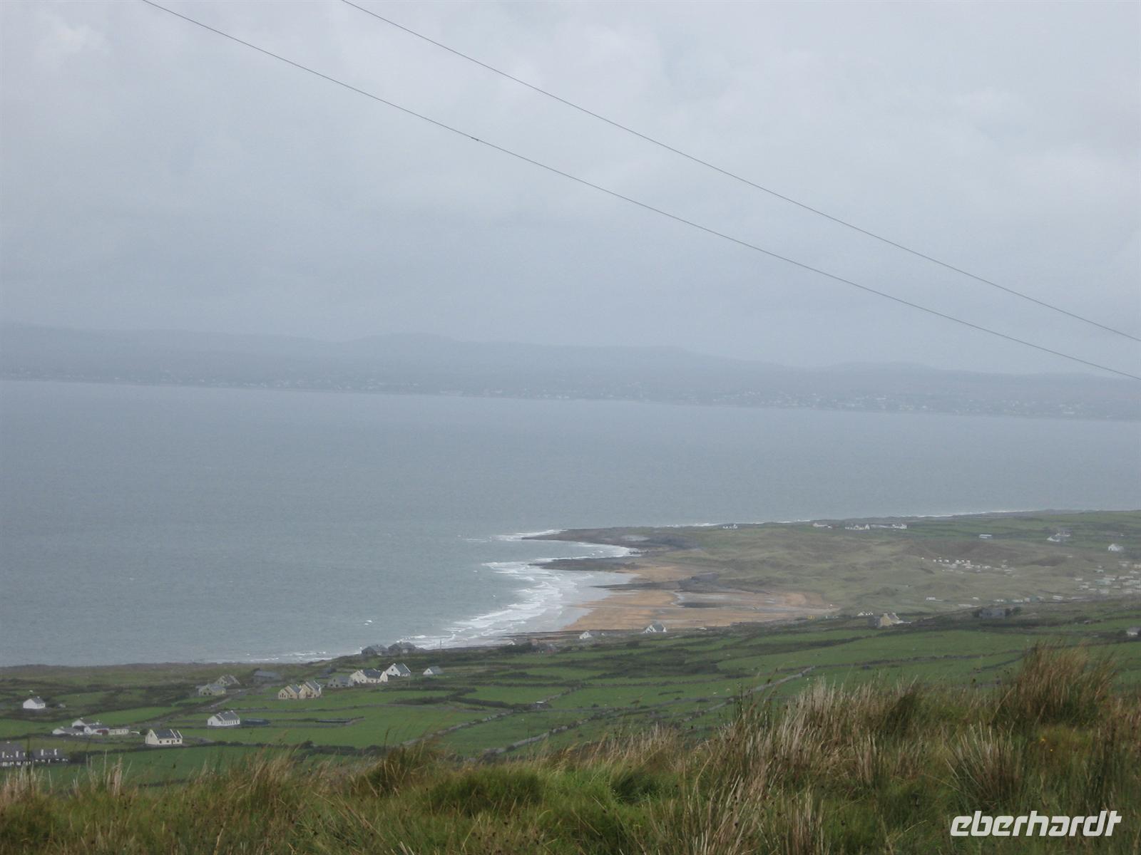 Er ist ein markanter Punkt und schon von weiten sieht man ihn. Bevor wir aufsteigen machen wir noch eine Mittagspause im unweit gelegenen Strandhill, direkt am Meer. Der Aufstieg auf den Knocknarea ist unkompliziert, in etwas über 30 Minuten sind wir schon oben. Auf dem Gipfel findet sich ein von Menschenhand aufgetürmter Steinhaufen, ein Cairn. Es soll das Grab der einst mächtigen Königin Maeve sein. Wir genießen die Aussicht auf die Sligo Bay und den Ben Bulben. Unterhalb des ebenfalls markanten Tafelberges Ben Bulben befindet sich ein kleiner Friedhof mit dem bescheidenen Grab des irischen Schriftstellers William Butler Yeats. Es war sein Wunsch an dieser Stelle begraben zu sein. Auf seinem Grabstein befindet sich eine der berühmtesten selbst verfassten Grabinschriften der Welt: „Wirf einen kalten Blick, auf Leben, auf Tot, Reiter und dann ziehe weiter. Wir ziehen weiter nach Letterkenny unserem Übernachtungsort für die nächsten zwei Tage.