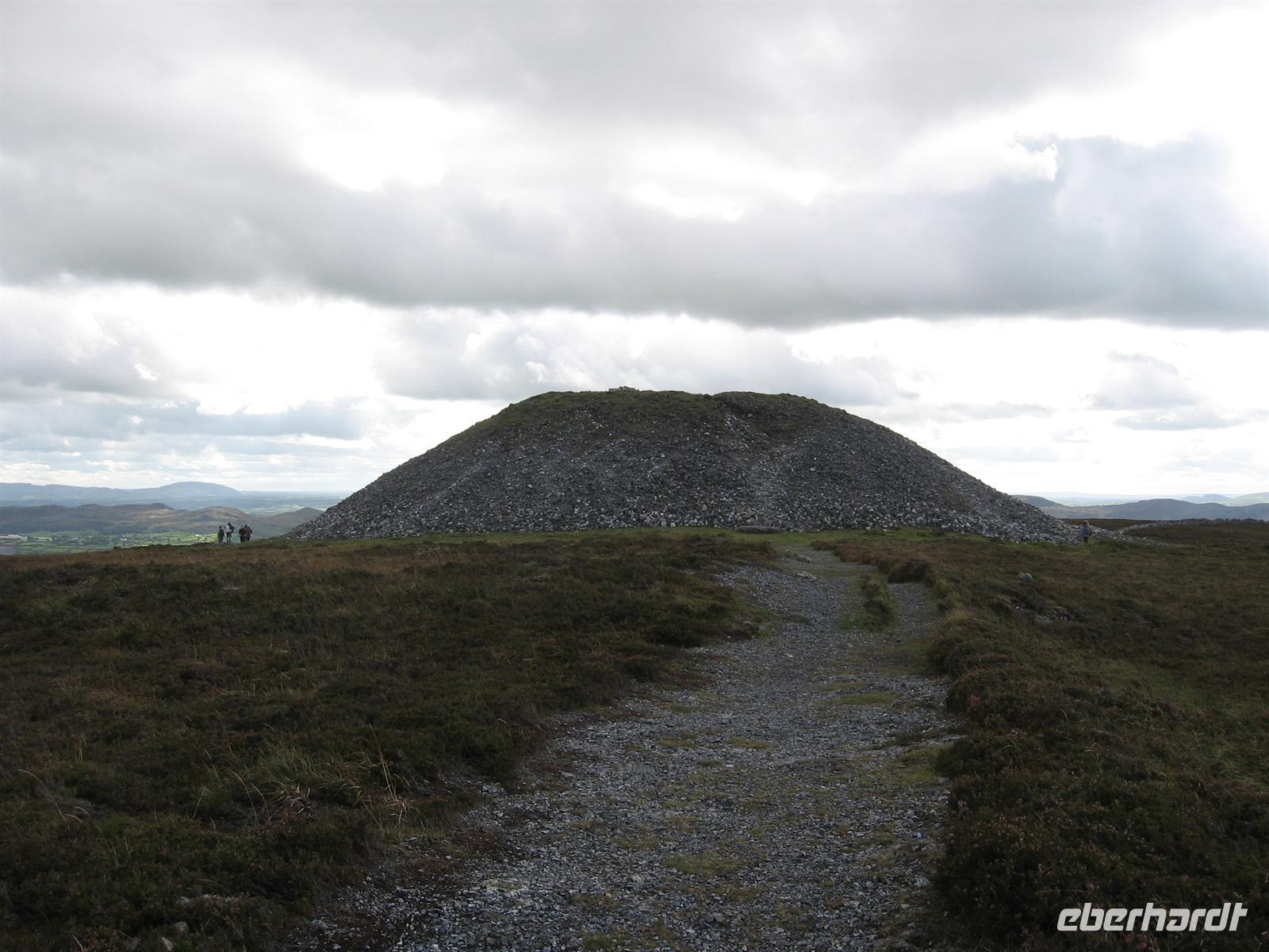 Von Lenane brechen wir auf nach Norden, unser Ziel heute heute Letterkenny. Unser erster Halt wird in Westport sein. Auf dem Weg dahin haben wir einen schönen Blick auf den heiligen Berg Irlands, den Croagh Patrick. Der Legende nach soll Irlands Nationalheiliger auf dem Berg 40 Tage und Nächte verbracht haben auf der Findung mit sich selbst. Nachdem ihm klar war, das er dem irischen Volk das Christentum bringen muss hat er mit einer Glocke geläutet und dabei ist die Schlange, sie galt als die Hüterin der Weisheit, erschrocken und von der Insel geflohen. Und so gibt es bis heute keine Schlangen in Irland. In Westport nutzen wir die Zeit etwas zum bummeln und der eine oder andere von uns hat findet ein Souvenir oder sogar neue Wanderschuhe. Unser nächstes Ziel ist der Berg Knocknarea bei Sligo.