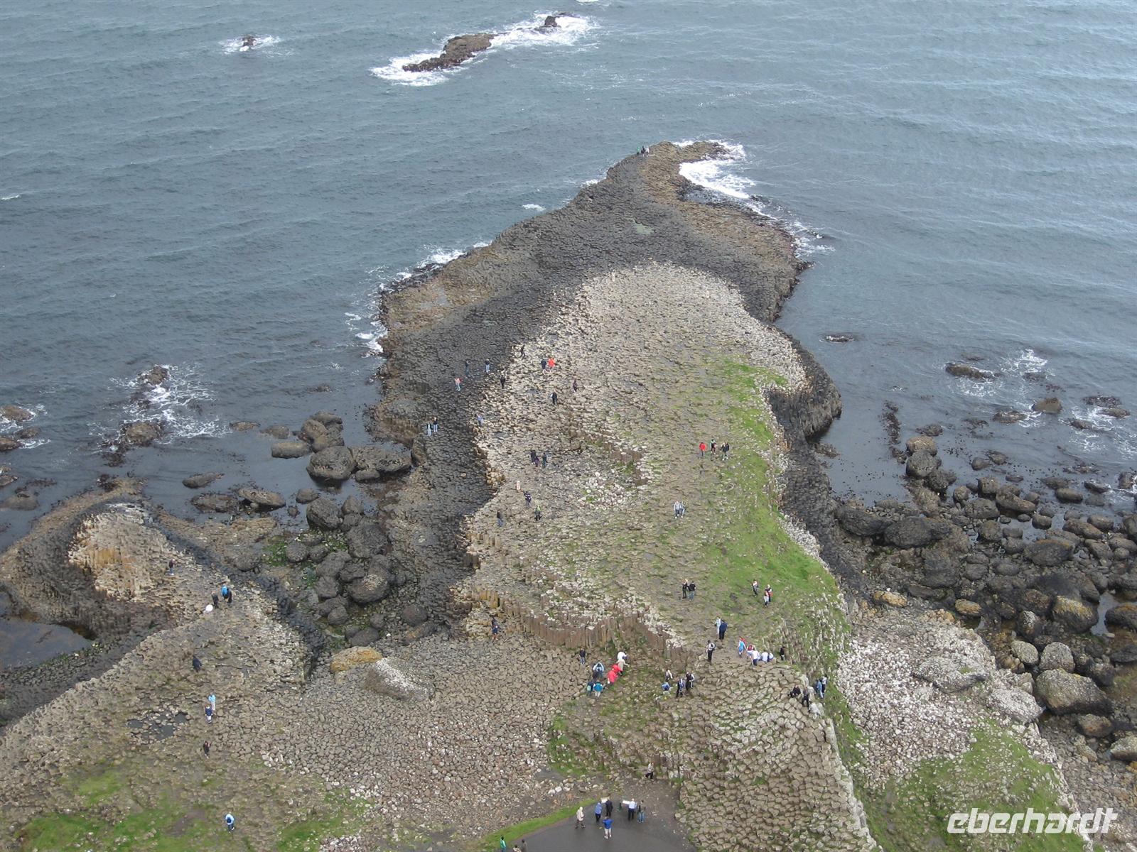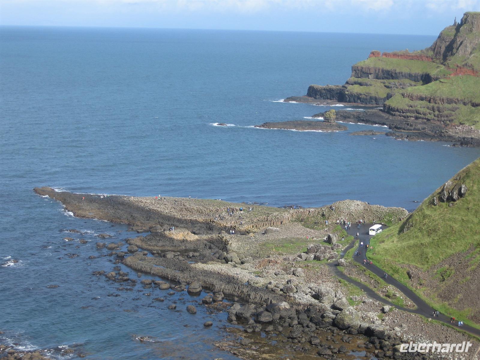 Unser Tag beginnt mit Sonne. Wir fahren heute in den zu Großbritannien gehörenden Teil Irlands. Das sind 6 Grafschaften in der Provinz Ulster, welche 1921 bei Entstehung des Freistaates Irland bei Großbritannien verblieben sind. Hintergrund dazu war, das in diesem Teil der Insel mehrheitlich Protestanten lebten. Wir fahren Richtung Derry, an der Stadt aber erstmal vorbei und weiter nach Downhill zum Musenden Tempel. Dieser kleine Ringbau steht dramatisch am Rand der Klippen. Er wurde vom Bischof Hervey im Andenken an seine Cousine Frideswide Musenden errichtet. Mit dieser unterhielt der protestantische Bischof, welcher der holden Weiblichkeit immer zugetan war, eine unbotmäßige Beziehung. Gleich nebenan hatte er sich einen Palast bauen lassen, er strebte immer nach dem höheren und wollte auch Beziehungen zu Königshäusern aufbauen. Vollständig ist ihm das allerdings nicht gelungen. Nicht weit von hier entfernt liegt der kleine Ort Bushmills. Hier befindet sich die älteste lizenzierte Whiskey Destilliere der Welt, Old Bushmills Distillery. Die Lizenz soll von königlicher Hand bereits im Jahre 1608 erteilt worden sein. Wir lernen hier wie Whiskey, das Wasser des Lebens, hergestellt wird. Zum Abschluss unserer Tour mit einer Deutsch sprechenden Führerin dürfen wir auch das edle Getränk verkosten. Einen Katzensprung von hier entfernt liegt der Giants Causeway, der Damm des Riesen. Verschiedene Legenden ranken sich um die Basaltsäulen. Nüchtern betrachtet handelt es sich um Magma, welche bei vulkanischen Aktivitäten vor einigen Millionen Jahren durch Erdspalten nach oben gedrückt wurde und dabei nicht an die Erdoberfläche kam. Durch ein langsames erkalten haben sich dann diese polygonalen Säulen gebildet, welche wir heute bestaunen. Leider erwischt und hier eine Regenschauer, dem wir aber stoisch trotzen. Jetzt geht es noch nach Derry oder Londonderry, beide Namen werden für diese Stadt verwendet. Die Stadt wurde Mitte des 17. Jh. den Mitgliedern von zwölf Londoner Zünften übergeben. Diese bauten um die Stadt eine Stadtmauer und nannten die Stadt aus Dank gegenüber dem König dann Londonderry nannten. Die angestammte irisch-katholische Bevölkerung wurde außerhalb der Stadt in einem Sumpfgebiet angesiedelt, den Bog sides. Schlagzeilen hat die Stadt vor allem 1972 gemacht. Das war Jahr der Troubles, die ihren Höhepunkt gleich zu Beginn des Jahres hatten.