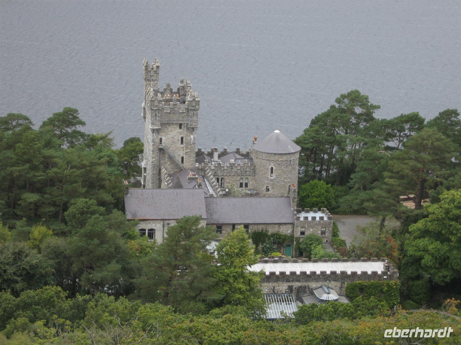 Beate, mit dem Fernglas bewaffnet, entdeckt dann tatsächlich auch Hirsche und wir allen freuen diese zu sehen. Der Weg führt entlang des Sees, unterwegs sind viele eigenartig geformte Bäume zu sehen, immer mal wieder hat man den Eindruck das wir beim wandern Schlafplätze von Feen oder die Eingänge zu den Leprachaun Behausungen passieren. Diese kleinen Gnome sollen in den Wurzeln der Bäume wohnen. Nach zwei Stunden erreichen wir das Glenveagh Castle. Nach unserer Mittagspause besichtigen wir , das in der Mitte des 18. Jh. gebaute, kleine Schlösschen. Der letzte Besitzer, ein Amerikaner mit irischen Wurzeln, hat es bereits in den 1970iger Jahren dem irischen Staat übergeben, welcher es bis heute pflegt. Er hatte übrigens immer interessanten Besuch, so weilte einmal Greta Garbohier und auch der berühmte Geiger Yehudi Menuin war zu Gast. Nach der Besichtigung laufen wir auf einen Aussichtspunkt, von welchem ein schöner Blick über das gesamte Tal möglich ist. Die Gartenanlage ist ebenfalls sehr sehenswert und auch das Café lädt zu einem Besuch ein. Der hier angebotene Kuchen ist übrigens überaus köstlich. Bis zum Busparkplatz verläuft unser Weg noch einmal entlang des See. Zum Abschluss des Tages fahren wir noch einmal an die Küste und lassen uns den Wind am Meer um die Nase wehen. Ganz in Nähe des Strandes schwimmt im Wasser eine Robbe, allerdings so richtig zeigt sie sich uns nicht. Mit vielen Glücksgefühlen fahren wir wieder zurück zum Hotel und freuen uns auf unser gutes Abendessen.
