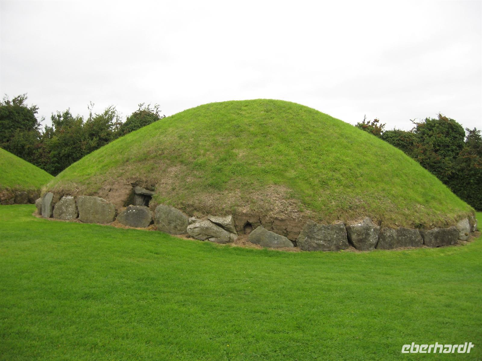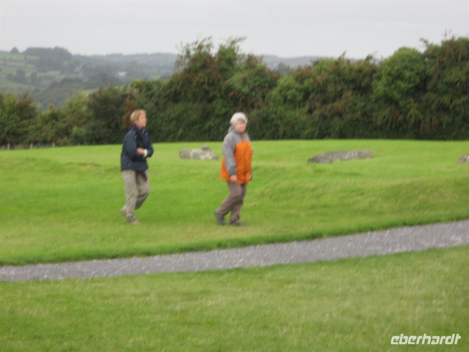 Wir nehmen Abschied vom Norden Irlands. Es wird uns heute auch leicht gemacht, denn es regnet. Unsere Fahrt geht direkt ins Boyne Tal, welches sich nördlich von Dublin befindet. Dabei fahren wir noch einmal ein Stück durch Nordirland, machen in einem Grenzstädtchen halt und freuen uns, dass wir dort mit Euro bezahlen können. Das erste kleine Ziel welches wir ansteuern heißt Hill of Slane. Auf diesem Hügel hat der heilige Patrick im Jahre 433 das Osterfeuer, als Zeichen der Erleuchtung und des Christentums entzündet. Der Hochkönig Irlands, welcher das Feuer bis nach Tara sehen konnte verstand dies als Bedrohung und es bedurfte einiger Überredungskünste ihm zu erklären, dass dies nicht so ist. Der Hochkönig hat ihn dann auch verstanden, hat sich allerdings nicht mehr taufen lassen, seine Töchter jedoch habe diese empfangen. Durch das nördliche Boyne Tal fahren wir dann nach Monsaterboice. Unterwegs erinnern wir uns an die Schlacht vom River Boyne, welche im Juli 1690 stattfand. Dabei standen sich die Truppen des abgesetzten Königs Charles II und Wilhelm III von Oranien gegenüber. Die katholischen Kämpfer unterlagen den protestantischen und eine Folge davon war die Gründung der Orange-Men. Damals als Selbstverteidigungsbündnisse gegründet existieren sie heute immer noch und zum Jahrestag der Schlacht marschieren Sie dann auf um daran zu erinnern. Früher sind sie dann in Belfast oder Derry durch katholische Wohngebiete marschiert, was entsprechende Gegenreaktionen hervorrief. Heute erfolgt der Marsch nach Vorgaben der Stadtverwaltungen und die Provokationen bleiben aus.