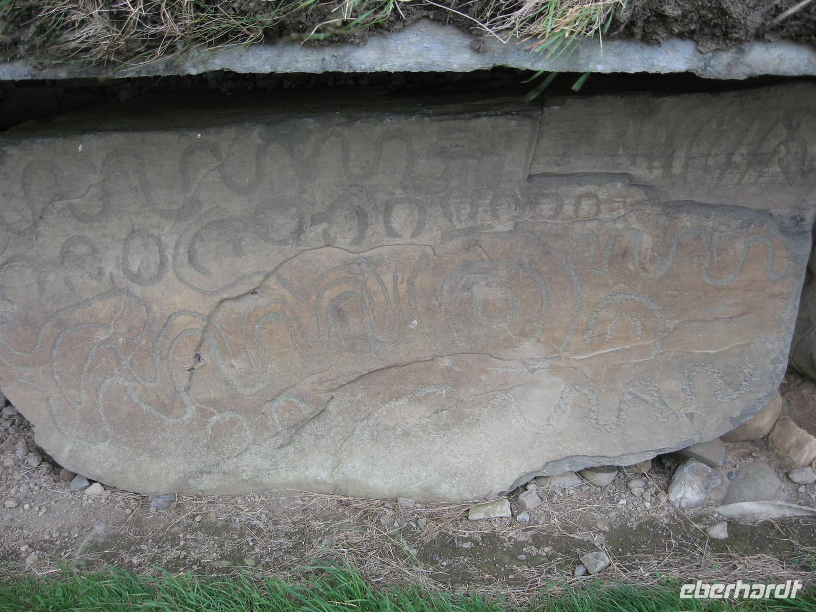 das Westkreuz mit 6,50 m ist dabei das höchste in Irland. Das Hochkreuz oder auch Keltisches Kreuz vereint das Christentum mit dem keltischen Glauben, das Rad symbolisiert dabei die Sonne. Zwei der Hochkreuze sind wunderbar mit bildlichen Darstellungen verziert. Diese dienten früher den Mönchen zur Erklärung der biblischen Geschichten, die meisten Menschen konnten zur Zeit der Entstehung der Kreuze im 10. Jh. nicht lesen und schreiben. Über Drogheda, wo wir einen Mittagsstopp einlegen, fahren wir zum Bru na Boine Visitor Center. Von hier aus ist es Möglich die großen Ganggräber Newgrange und Knowth zu besichtigen. Wir werden Knowth besuchen können, doch bis es soweit ist sehen wir noch einen Film und bekommen erklärt wie zur Wintersonnenwende die Grabkammer von Newgrange ganze 17 Minuten durch die Sonne erhellt wird. Ein Shuttle bringt uns dann nach Knowth und auf uns wartet schon Mandy, die uns einiges erklären wird. So ist es sehr interessant, das der Hügel bis in 14. Jh. auch als Wohnort diente und die Menschen keine Ahnung hatten, das sie auf einem Grab wohnten, welches von heute aus gesehen ca. 5000 Jahre alt ist. Da der Gang in das innere des Grabes sehr eng ist können wir nur ein Stückchen hinein gehen. Abschließend können wir noch um den Dolmen herum gehen und sehen die zahlreichen verzierten Randsteine mit vor allem spiralförmigen Mustern. Was diese bedeuten hat die Wissenschaft bis heute nicht erklären können, jeder darf in dieser 5000 Jahre alten Kunst sehen was er möchte. Vom Boyne Tal ist es nicht mehr weit bis nach Dublin. Unser Hotel, das Jurys Inn Custom's House befindet sich direkt im Zentrum der Stadt und vor dem Hotel fließt der Liffey.
