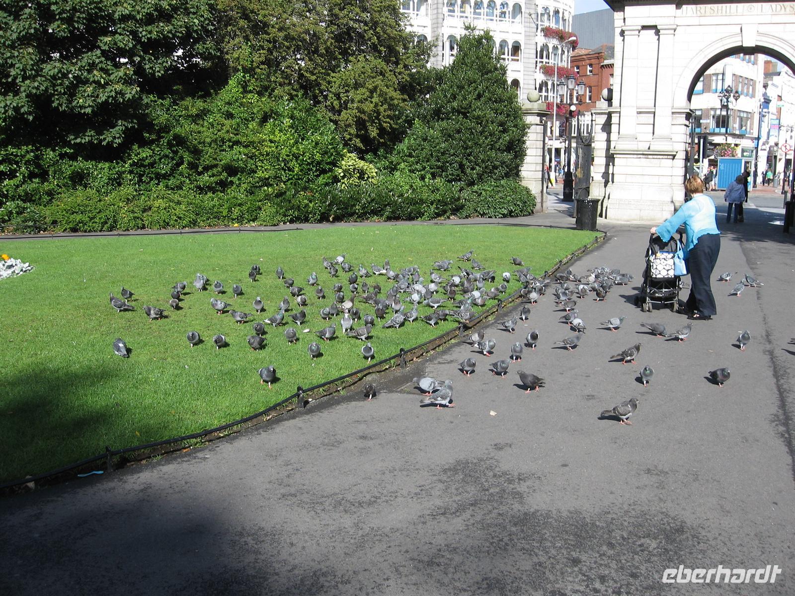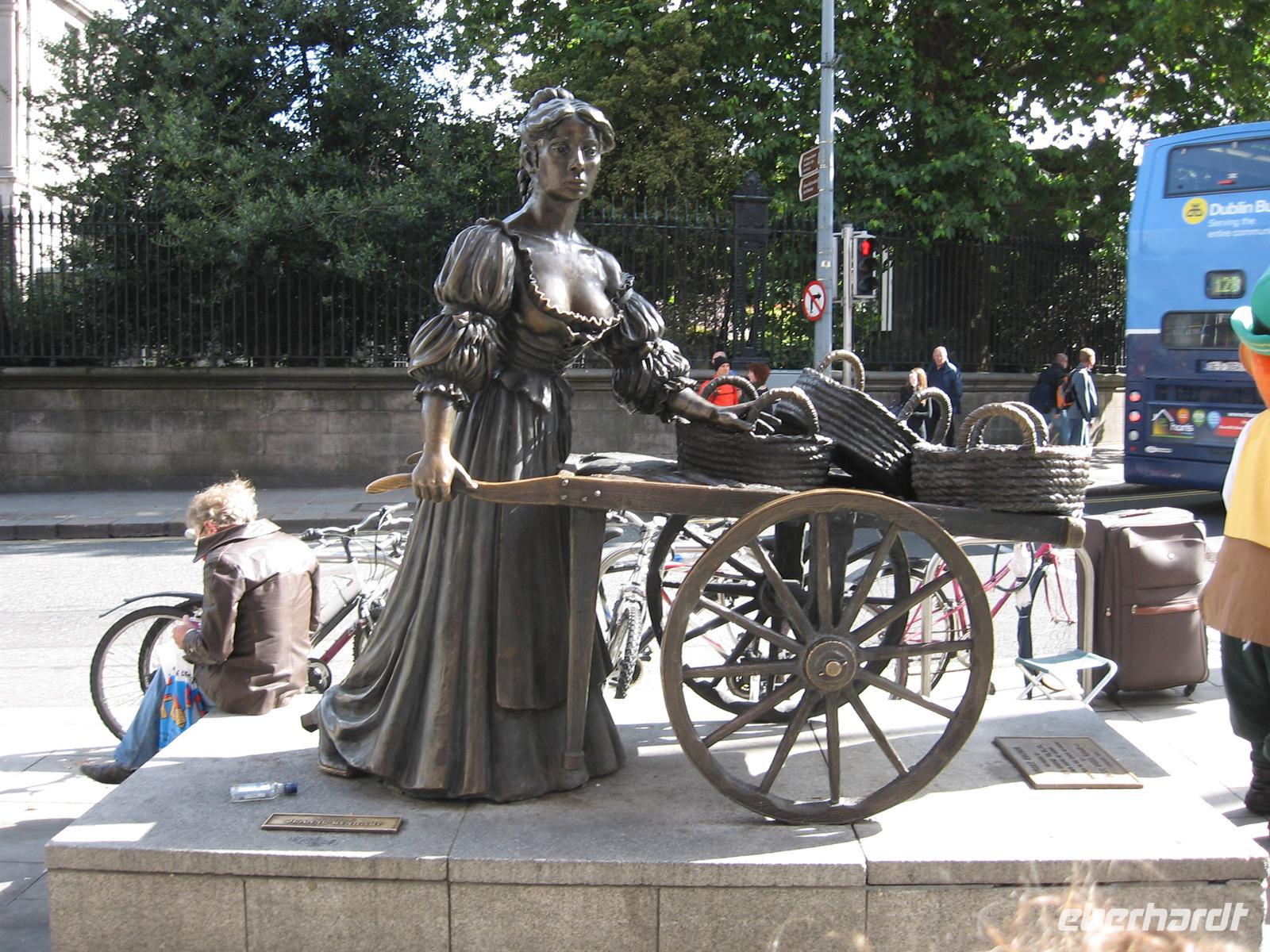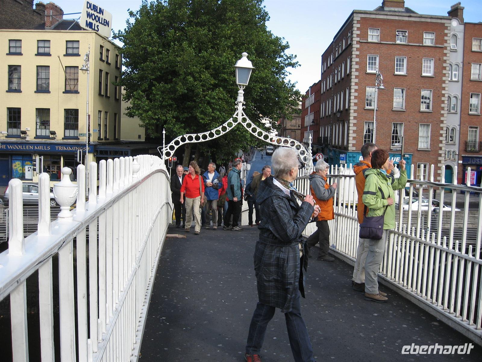 Die irische Hauptstadt wollen wir heute erkunden. Zuerst mit einer Stadtführung, danach kann auch noch jeder Gast seinen Interessen nachgehen. Unser Stadtführer heißt Shaun und spricht sehr gut deutsch. Er ist ein ganz spezieller Typ, im englischen nennt man es „Charakter“. Unweit des Hotels befindet sich ein Denkmal zu Erinnerung an die Hungersnot 1845-1850, als eine Million Menschen starben und eine weitere Million auswanderte. Vorbei am ehemaligen Zollamt gehen wir zu O’Connell Street, hier befindet sich das Postamt, wo 1916 der Osteraufstand blutig niedergeschlagen wurde. Gleichzeitig ist diese Stelle auch die Geburtsstunde des heutigen Irlands. Auf der Halfpenny Bridge überqueren wir den Liffey.
