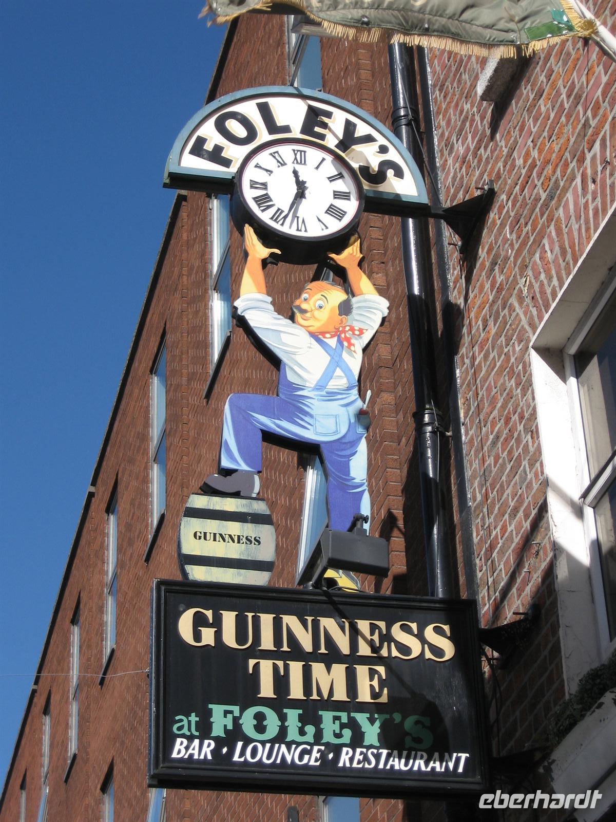 Dieser Fluss entspringt in den Bergen von Wicklow und sieht immer so dunkel aus wie Guinness. Das Bier wird damit allerdings nicht gebraut, wie wir später noch erfahren werden. Wir durchstreifen das Viertel von Tempelbar und machen an der irischen Fotothek einen Stopp. Hier gibt es tolles schwarz-weißes Foto aus vergangen Zeiten zu sehen. Durch Dublins Markthalle hindurch gelangen wir zu St. Stephens Green, einem der Stadtparks in Dublin. Diese Parks sind für alle Menschen zugänglich, angelegt wurde er einmal durch Gelder der Guinness Familie. Wir laufen vorbei am Sitz des Premier Ministers und des Parlaments und kommen zum Merrion Square, einem weiteren Park. Hier befinden sich auch die schönen „Doors of Dublin“ die bunten Türen in den Häusern welche im georgianischen Baustiel errichtet wurden. An einem der Eingänge findet sich auch eine Statue von Oscar Wilde, welcher hier geboren wurde. Durch das Trinity College, eine von vier Universitäten Dublins, erreichen wir schließlich das Denkmal für Molly Melone, welche im 19. Jh. ein Stadtoriginal war. Shaun und ich singen noch die erste Strophe des Molly Melone Liedes zum Abschluss der Stadtführung. Wir haben eine Menge gesehen und auch einiges erfahren, auch wissen wir jetzt über die verschieden Frauentypen, welchen in Irland leben Bescheid. Der Nachmittag steht allen Gästen zur freien Verfügung. Wir nutzen das zum Shopping oder auch um eines der Museen mit freiem Eintritt zu besuchen. 16 Uhr treffen wir uns wieder bei Molly Melone, für Nachmittag steht noch der Besuch des Guinness Storehouse auf dem Plan. Zu Fuß sind wir in einer halben Stunde da. Empfangen werden wir von Angelika welche uns durch die Ausstellung führt. Wir erfahren welche Zutaten benutzt werden, das dass Wasser aus einer eigenen Quelle kommt und ganz klar ist und natürlich wissenswertes über den Gründer Arthur Guinness und seine Familie. Höhepunkt ist dann der Genuss eines Pint Guinness in der Gravity Bar. Diese Bar ermöglicht einen 360 Grad Rundblick über die Dächer von Dublin. Zurück zum Hotel geht es wieder zu Fuß.