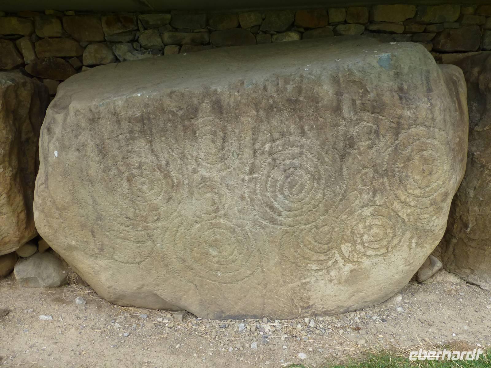Nach dem Frühstück erwartet uns unser Buschauffeur Roy mit seinem Bus. Gemeinsam werden wir die nächsten Tage unterwegs sein. Unsere Fahrt geht zuerst ins Boyne Tal, welches sich nördlich von Dublin befindet. Unterwegs erinnern wir uns an die Schlacht vom River Boyne, welche im Juli 1690 stattfand. Dabei standen sich die Truppen des abgesetzten Königs Charles II und Wilhelm III von Oranien gegenüber. Die katholischen Kämpfer unterlagen den protestantischen und ein Folge davon war die Gründung der Orangeman. Damals als Selbstverteidigungsbündnisse gegründet existieren sie heute immer noch und zum Jahrestag der Schlacht marschieren Sie dann auf um daran zu erinnern. Früher sind sie dann in Belfast oder Derry durch katholische Wohngebiete marschiert, was entsprechende Gegenreaktionen hervorrief. Heute erfolgt der Marsch nach Vorgaben der Stadtverwaltungen und die Provokationen bleiben weitgehend aus.