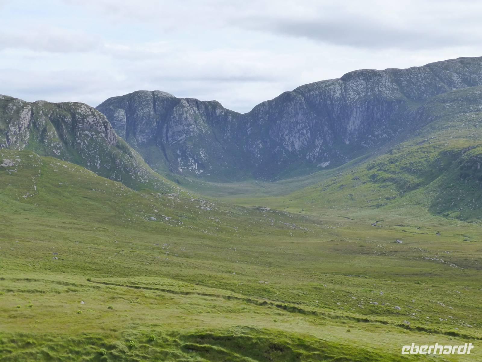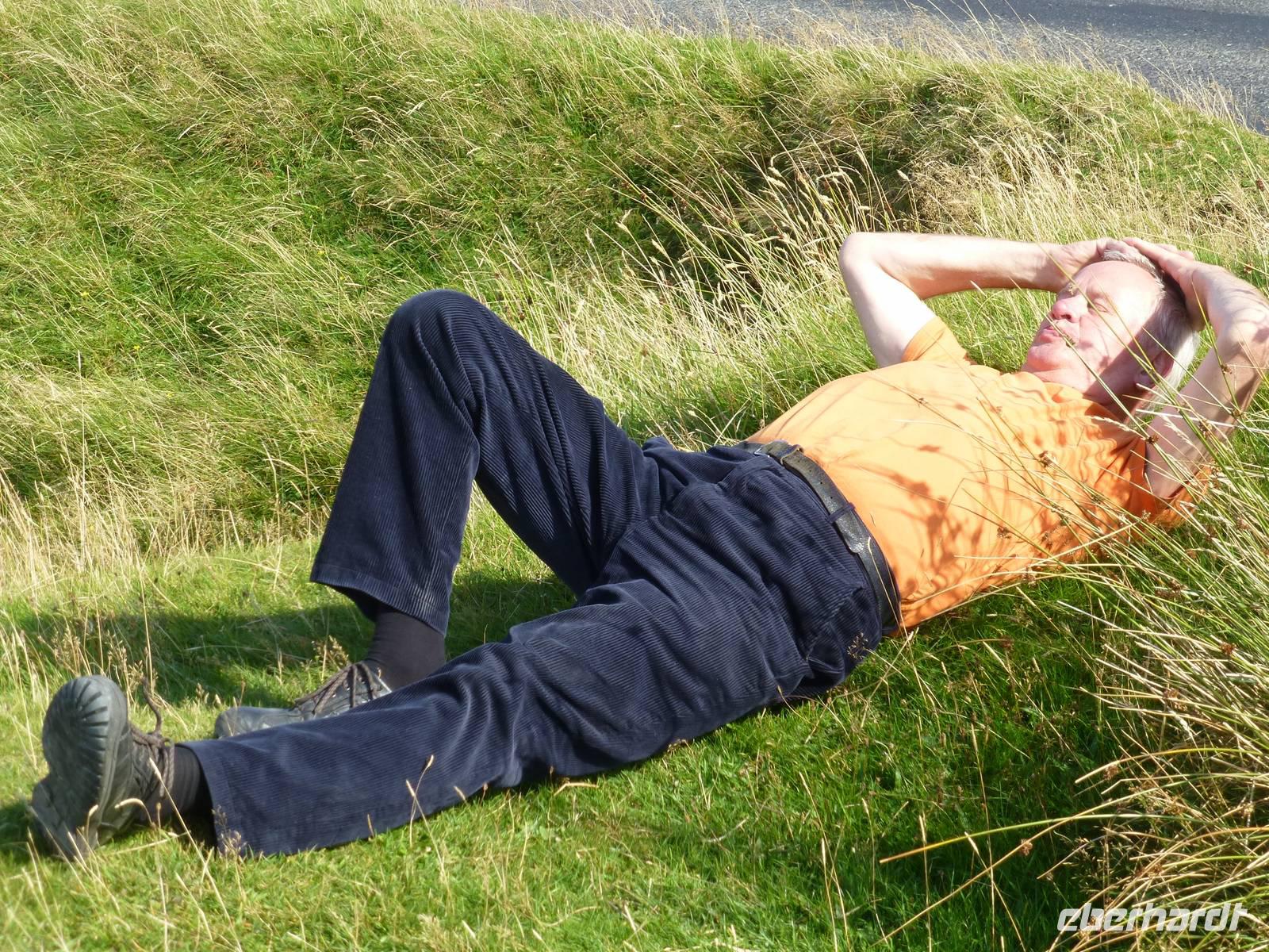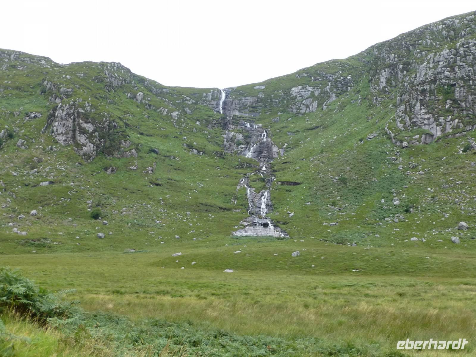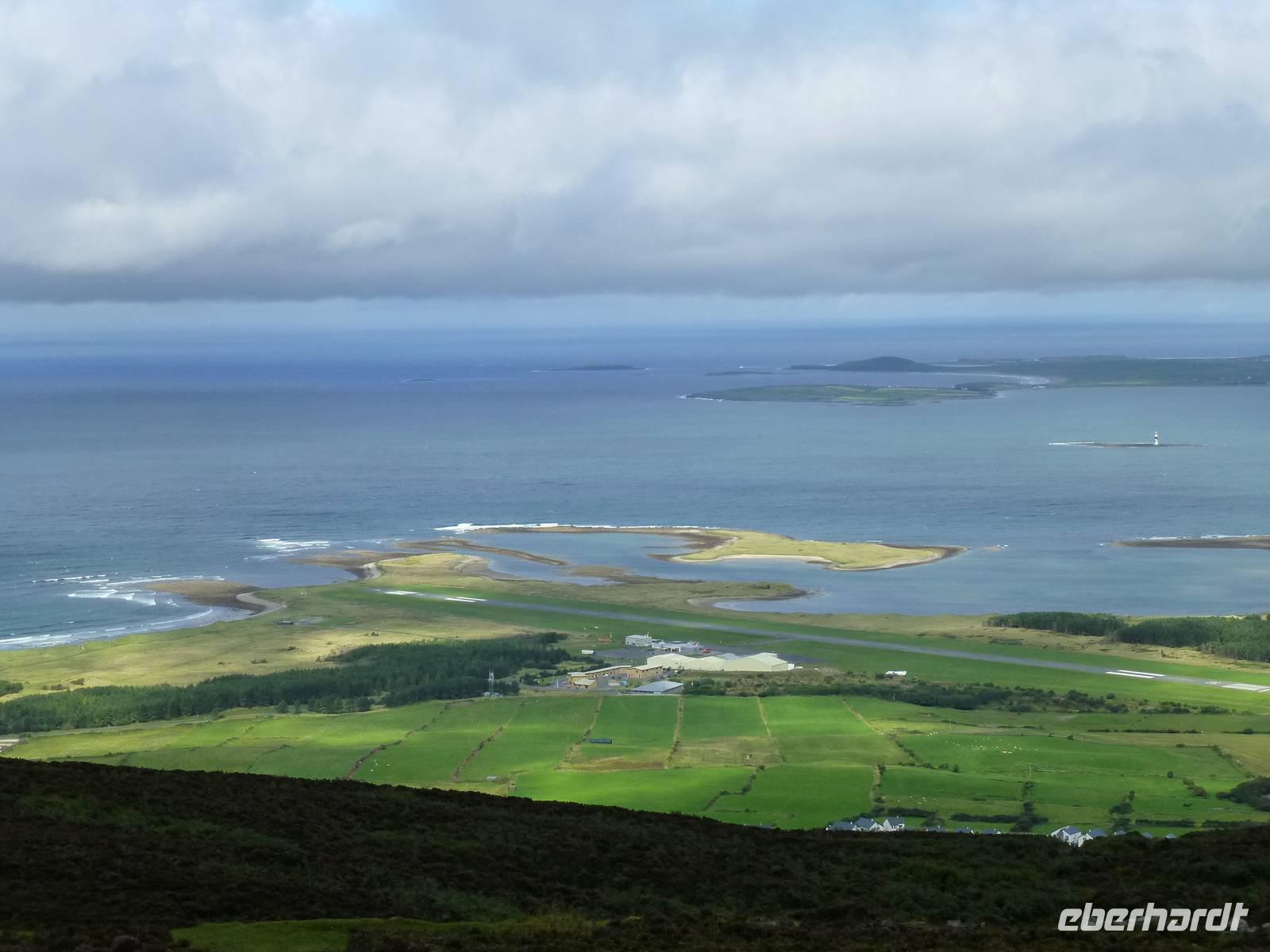 Von Letterkenny brechen wir auf nach Süden, unser Ziel heute heute Leenaun. Unser erster Halt wird in Drumcliff sein. Das Wetter zeigt sich am Morgen mit feinstem Sprühregen. Dieser setzt sich auch an den Bergen fest, so das man den markanten Ben Bulben nur erahnen kann. Unterhalb des Tafelberges Ben Bulben befindet sich im Ort Drumcliff ein kleiner Friedhof mit dem bescheidenen Grab des irischen Schriftstellers William Butler Yeats. Es war sein Wunsch an dieser Stelle begraben zu sein. Auf seinem Grabstein befindet sich eine der berühmtesten selbst verfassten Grabinschriften der Welt: „Wirf einen kalten Blick, auf Leben, auf Tot, Reiter und dann ziehe weiter". Unser nächstes Ziel ist der Berg Knocknarea bei Sligo. Er ist ein markanter Punkt und schon von weiten sieht man ihn. Der Aufstieg auf den Knocknarea ist unkompliziert, in etwas über 30 Minuten sind wir schon oben. Auf dem Gipfel findet sich ein von Menschenhand aufgetürmter Steinhaufen, ein Cairn. Es soll das Grab der einst mächtigen Königin Maeve sein. Wir genießen die Aussicht auf die Sligo Bay und den im Sonnenschein liegenden kleinen Ort Strandhill, wo wir wenig später unsere Mittagspause machen werden. In Westport nutzen wir die Zeit etwas zum bummeln und der eine oder andere von uns hat findet ein Souvenir für zu Hause. Auf dem Weg von Westport zu unserem Übernachtungsort Leenaun haben wir einen schönen Blick auf den heiligen Berg Irlands, den Croagh Patrick. Der Legende nach soll Irlands Nationalheiliger auf dem Berg 40 Tage und Nächte verbracht haben auf der Findung mit sich selbst. Nachdem ihm klar war, das er dem irischen Volk das Christentum bringen muss hat er mit einer Glocke geläutet und dabei ist die Schlange, sie galt als die Hüterin der Weisheit, erschrocken und von der Insel geflohen. Und so gibt es bis heute keine Schlangen in Irland.