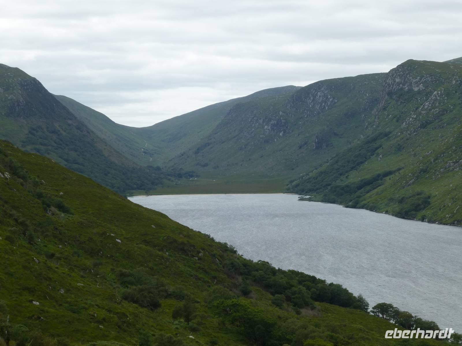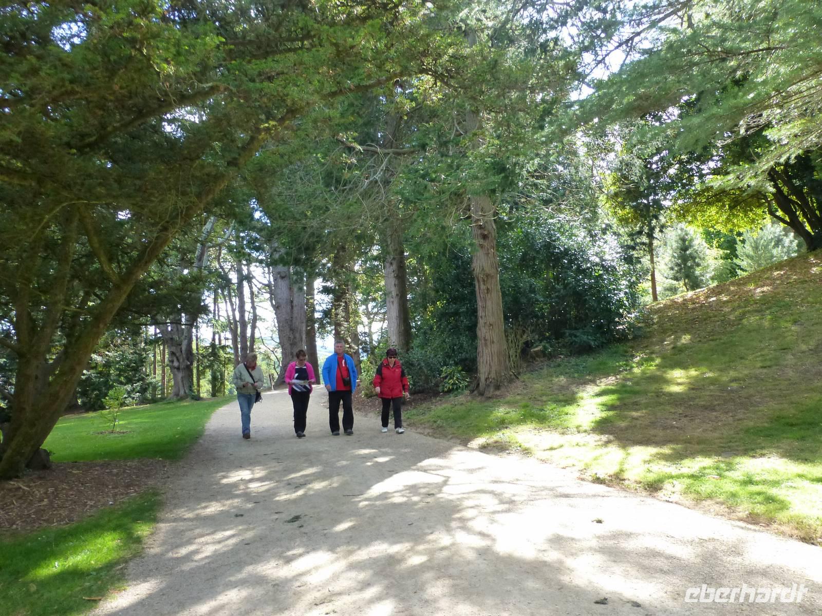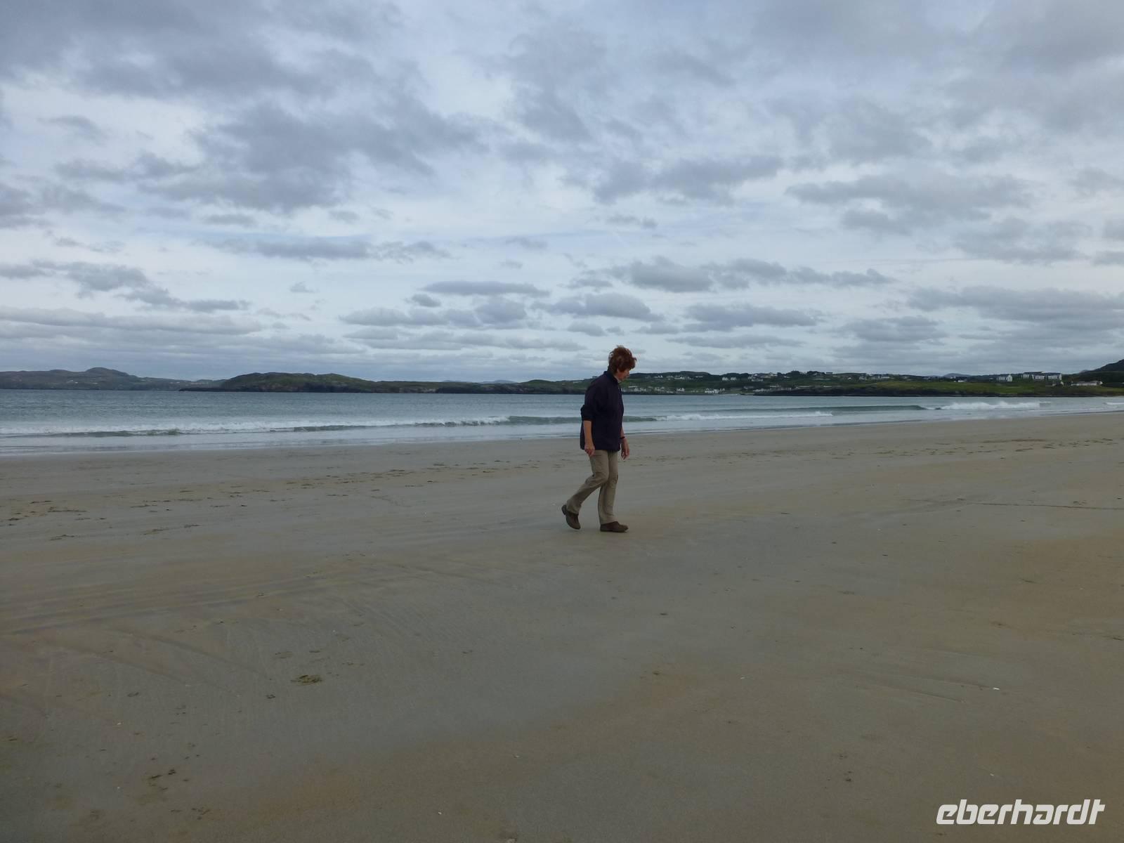 Der heutige Tag führt uns in den Glenveagh NP, welcher nur etwa eine halbe Stunde von Letterkenny entfernt liegt. Im Visitorcenter sehen wir zuerst einen kurzen Film, welcher uns mit der Geschichte der Entstehung des Glenveagh Castle und dem Weg zum Nationalpark bekannt macht. Mit Shuttlebussen fahren wir dann zum Glenveagh Castle und besichtigen nun das in der Mitte des 18. Jh. gebaute kleine Schlösschen. Der letzte Besitzer, ein Amerikaner mit irischen Wurzeln, hat es bereits in den 1970iger Jahren dem irischen Staat übergeben, welcher es bis heute pflegt. Er hatte übrigens immer interessanten Besuch, so weilte mehrmals Greta Garbo hier und auch der berühmte Geiger Yehudi Menuin war zu Gast. Nach der Besichtigung laufen wir entlang des Sees, unterwegs sind viele eigenartig geformte Bäume zu sehen, immer mal wieder hat man den Eindruck das wir beim wandern Schlafplätze von Feen oder die Eingänge zu den Leprachaun Behausungen passieren.Nach einer Pause laufen wir den selben weg zurück und kurz vor dem Castle steigen wir auf einen Aussichtspunkt, von welchem ein schöner Blick über das gesamte Tal möglich ist. Die Gartenanlage ist ebenfalls sehr sehenswert und auch das Café lädt zu einem Besuch ein. Bis zum Busparkplatz verläuft unser Weg noch einmal entlang des See. Zum Abschluss des Tages fahren wir noch einmal nach Dunfanaghy an die Küste und lassen uns den Wind am Meer um die Nase wehen. Mit vielen Glücksgefühlen fahren wir wieder zurück zum Hotel und freuen uns auf unser gutes Abendessen.