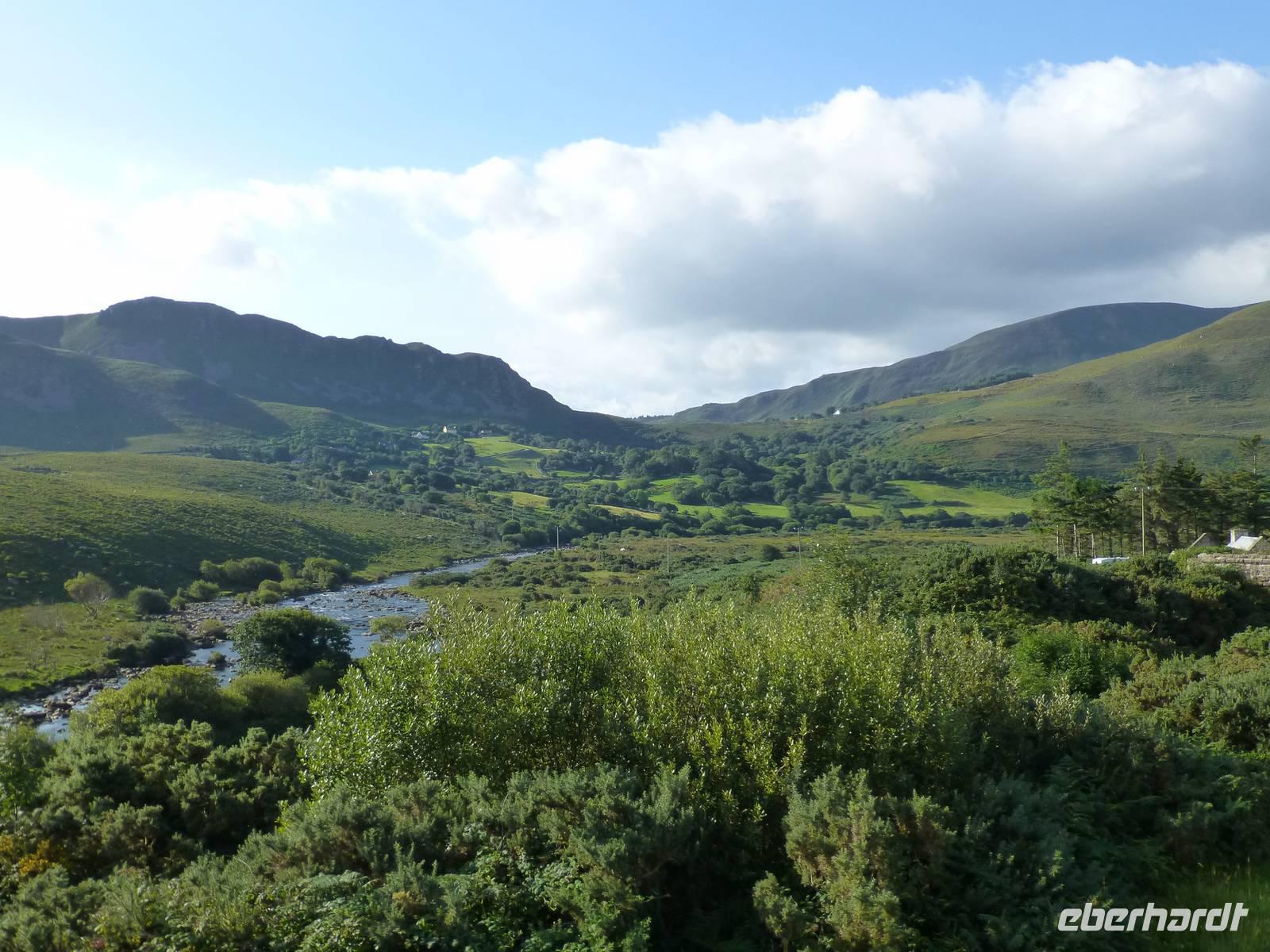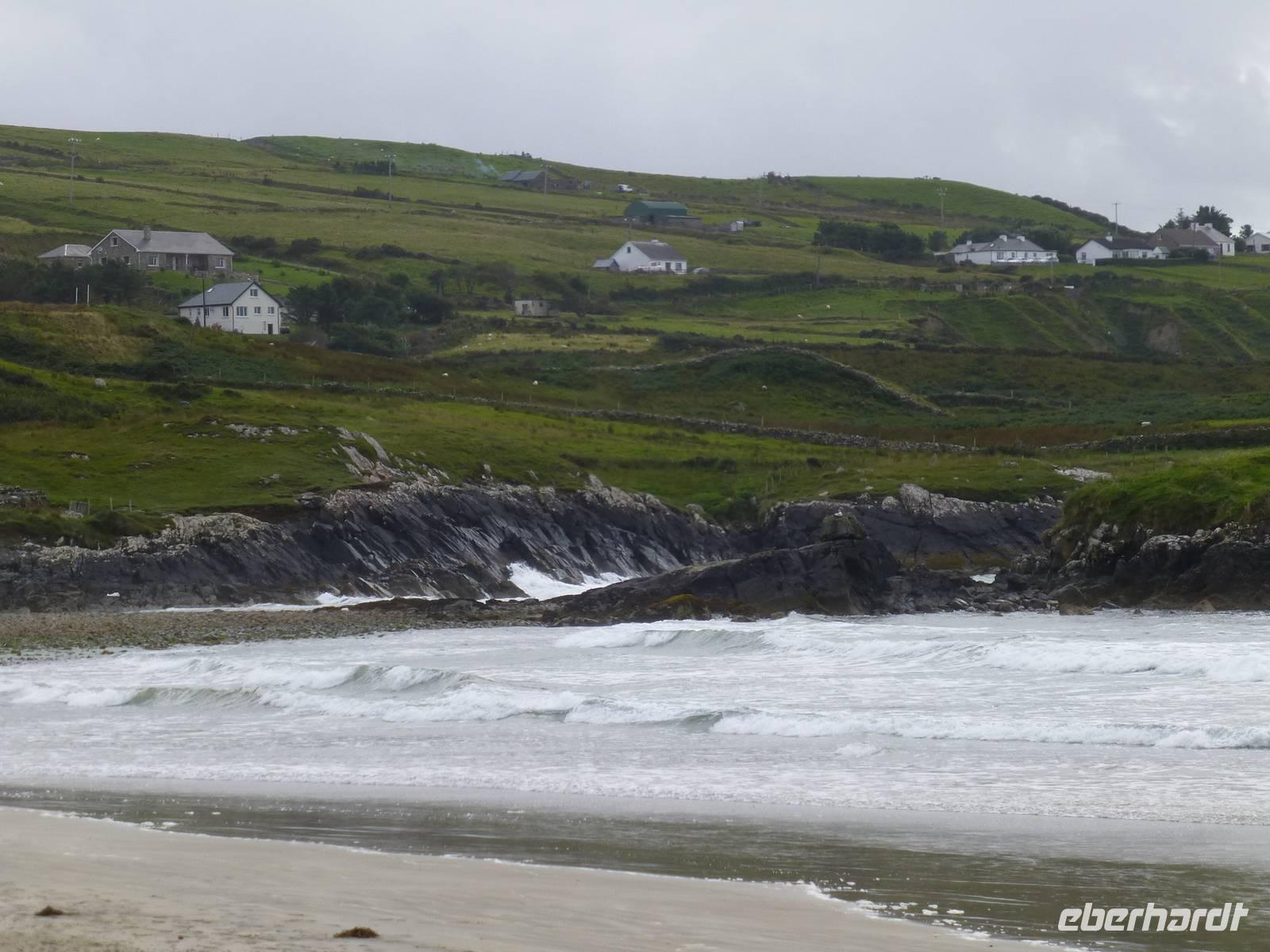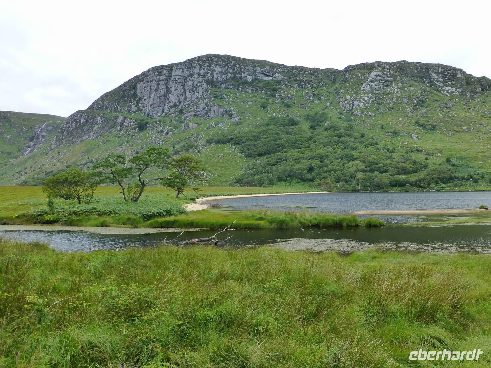 Der heutige Tag führt uns in den Glenveagh NP, welcher nur etwa eine halbe Stunde von Letterkenny entfernt liegt. Im Visitorcenter sehen wir zuerst einen kurzen Film, welcher uns mit der Geschichte der Entstehung des Glenveagh Castle und dem Weg zum Nationalpark bekannt macht. Mit Shuttlebussen fahren wir dann zum Glenveagh Castle und besichtigen nun das in der Mitte des 18. Jh. gebaute kleine Schlösschen. Der letzte Besitzer, ein Amerikaner mit irischen Wurzeln, hat es bereits in den 1970iger Jahren dem irischen Staat übergeben, welcher es bis heute pflegt. Er hatte übrigens immer interessanten Besuch, so weilte mehrmals Greta Garbo hier und auch der berühmte Geiger Yehudi Menuin war zu Gast. Nach der Besichtigung laufen wir entlang des Sees, unterwegs sind viele eigenartig geformte Bäume zu sehen, immer mal wieder hat man den Eindruck das wir beim wandern Schlafplätze von Feen oder die Eingänge zu den Leprachaun Behausungen passieren.Nach einer Pause laufen wir den selben weg zurück und kurz vor dem Castle steigen wir auf einen Aussichtspunkt, von welchem ein schöner Blick über das gesamte Tal möglich ist. Die Gartenanlage ist ebenfalls sehr sehenswert und auch das Café lädt zu einem Besuch ein. Bis zum Busparkplatz verläuft unser Weg noch einmal entlang des See. Zum Abschluss des Tages fahren wir noch einmal nach Dunfanaghy an die Küste und lassen uns den Wind am Meer um die Nase wehen. Mit vielen Glücksgefühlen fahren wir wieder zurück zum Hotel und freuen uns auf unser gutes Abendessen.