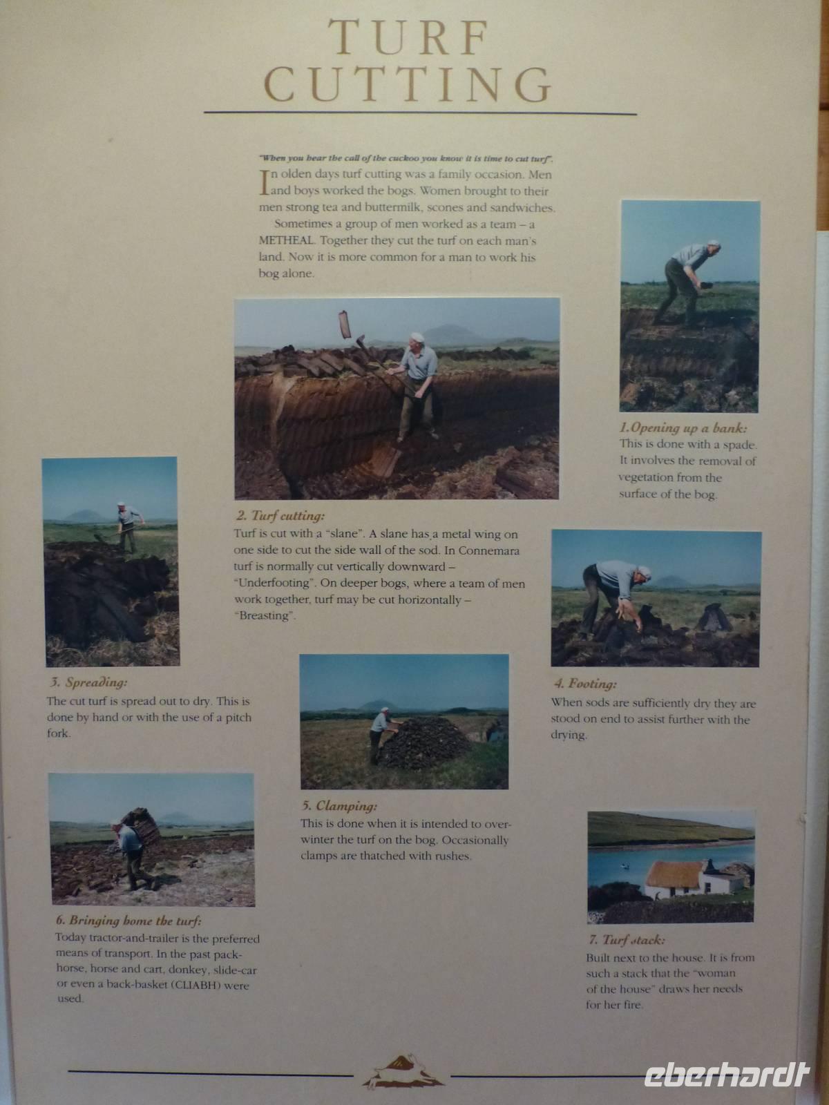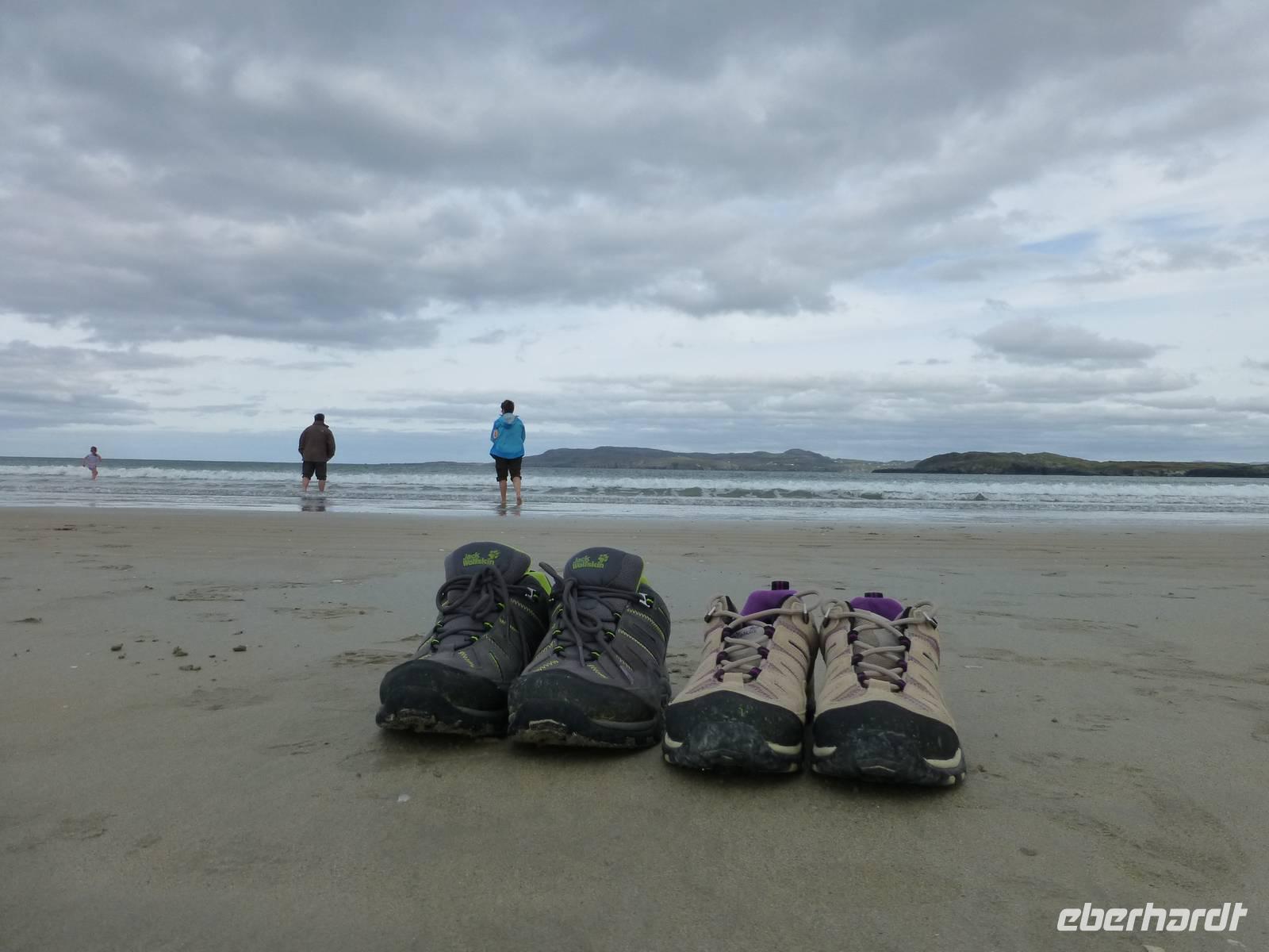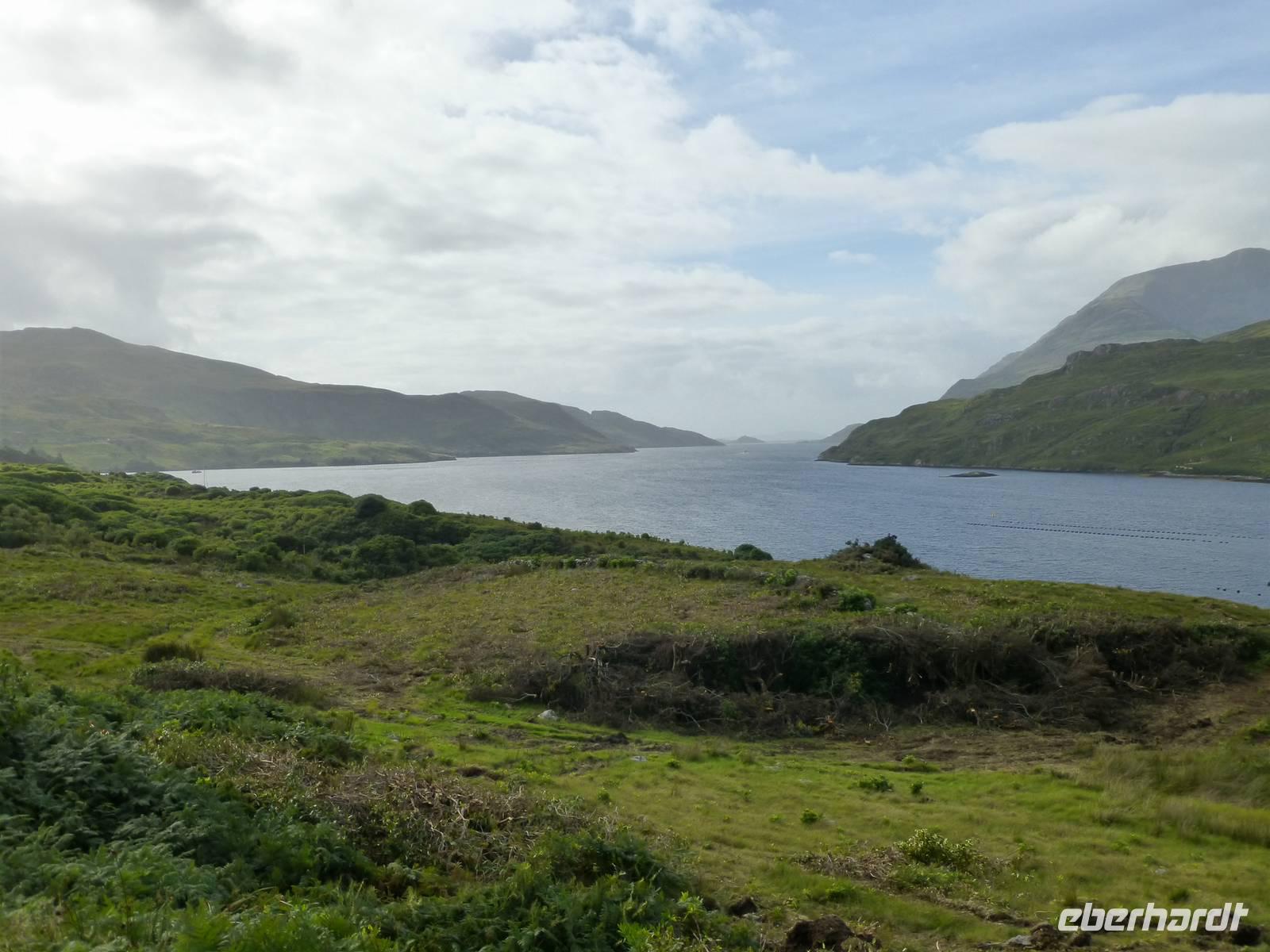 Wir werden heute ein Stück der Conemara Region für uns entdecken. Nach einem guten Frühstück kann es losgehen. Unser Buschauffeur Roy fährt uns erstmal zur Kylemore Abbey. Dabei handelt es sich nicht um eine Abtei im eigentlichen Sinne, sondern um ein von Benediktinern bis 2010 betriebenes internationale Mädchenpensionat. Die Lage des von Henry Mitchel erbauten Gebäudes ist einfach toll. Bei einer Besichtigung können wir das Abteigebäude, die neugotische Kirche und auch den Viktorianischen Garten sehen. Anschließend fahren ein paar Kilometer weiter zum Conemara Nationalpark. Im Nationalparkzentrum erhalten wir Informationen zu den Bogs, den Torffeldern. Unterwegs sind diese uns immer wieder begegnet. Jetzt können wir lernen, wie der Torf entstanden ist, wie er abgebaut wird und welches Leben im Torf herrscht. Das alles kostest übrigens keinen Eintritt, es wird vom irischen Staat finanziert. Wir nutzen gleich noch die Möglichkeit hier unsere Mittagspause zu machen, da wir alle Annehmlichkeiten auf einem Fleck haben. Jetzt heißt es endlich wandern. Entlang des Kilarry Harbour, dem einzigen Fjord Irlands wandern wir gut 9 Kilometer bis nach Rosroe. Faszinierende Blicke auf die Umgebung bieten sich auf Schritt und Tritt. Unterwegs sehen wir einen Muschelzuchtbetrieb. Unterwegs stößt Roy zu uns, unser Busfahrer ist uns entgegen gelaufen. Wie schön, alle freuen sich darüber, auch wenn auf Grund der Sprachbarriere die Kommunikation gering ist. Allen Gästen ist nach der Wanderung eigentlich nach einem Kaffee, aber leider bietet das dünn besiedelte Gebiet kein Kaffee wie wir es uns vorstellen. Da der Nachmittag noch früh ist fahren wir noch zu einem Sandstrand ganz in der Nähe. Wir genießen es alle und, natürlich findet jeder ein paar Muscheln. Zum Abendessen lassen wir uns wieder durch die hervorragende Küche des Leenaun Hotels verwöhnen.