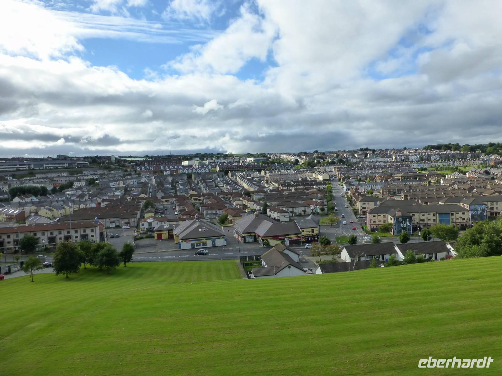 Wir fahren heute in den zu Großbritannien gehörenden Teil Irlands. Das sind 6 Grafschaften in der Provinz Ulster, welche 1921 bei Entstehung des Freistaates Irland bei Großbritannien verblieben sind. Hintergrund dazu war, das in diesem Teil der Insel mehrheitlich Protestanten lebten. Wir fahren Richtung Derry, an der Stadt aber erstmal vorbei und weiter nach Downhill zum Mussenden Tempel. Dieser kleine Ringbau steht dramatisch am Rand der Klippen. Er wurde vom Bischof Hervey im Andenken an seine Cousine Frideswide Mussenden errichtet. Mit dieser unterhielt der protestantische Bischof, welcher der holden Weiblichkeit immer zugetan war, eine unbotmäßige Beziehung. Gleich nebenan hatte er sich einen Palast bauen lassen, er strebte immer nach dem höheren und wollte auch Beziehungen zu Königshäusern aufbauen. Vollständig ist ihm das allerdings nicht gelungen. Nicht weit von hier entfernt liegt der kleine Ort Bushmills. Hier befindet sich die älteste lizenzierte Whiskey Destilliere der Welt, Old Bushmills Distillery. Die Lizenz soll von königlicher Hand bereits im Jahre 1608 erteilt worden sein. Wir lernen hier wie Whiskey, das Wasser des Lebens, hergestellt wird. Zum Abschluss unserer Tour dürfen wir auch das edle Getränk verkosten. Einen Katzensprung von hier entfernt liegt der Giants Causeway, der Damm des Riesen. Verschiedene Legenden ranken sich um die Basaltsäulen. Nüchtern betrachtet handelt es sich um Magma, welche bei vulkanischen Aktivitäten vor ca. 60 Millionen Jahren durch Erdspalten nach oben gedrückt wurde und dabei nicht an die Erdoberfläche kam. Durch ein langsames erkalten haben sich dann diese polygonalen Säulen gebildet, welche wir heute bestaunen. Jetzt geht es noch nach Derry oder Londonderry, beide Namen werden für diese Stadt verwendet. Die Stadt wurde Mitte des 17. Jh. den Mitgliedern von zwölf Londoner Zünften übergeben. Diese bauten um die Stadt eine Stadtmauer und nannten die Stadt aus Dank gegenüber dem König dann Londonderry. Die angestammte irisch-katholische Bevölkerung wurde außerhalb der Stadt in einem Sumpfgebiet angesiedelt, den Bog sides. Schlagzeilen hat die Stadt vor allem 1972 gemacht. Das war Jahr der Troubles, die ihren Höhepunkt gleich zu Beginn des Jahres hatten. Bei einer Demonstration am 30. Januar 1972 schossen britische Fallschirmjäger auf die unbewaffneten Demonstranten. 14 Menschen wurden dabei getötet. Das Ereignis ging als Bloody Sunday - Blutiger Sonntag in die Geschichte ein. Wir laufen über die Stadtmauer und bestaunen deren Mächtigkeit, sehen von der Mauer aus die St. Columbans Cathedral, und die Bogside mit den Wohngebieten der irisch-katholischen Bevölkerung. Von Derry sind es nur gut 40 Minuten zurück nach Letterkenny. Übrigens merkt man heute auch nicht mehr das eine Grenze überschritten wird. Die Angaben auf den Verkehrszeichen ändern sich etwas und im Laden kann man nicht mit Euro bezahlen, das ist der einzige sichtbare Unterschied.