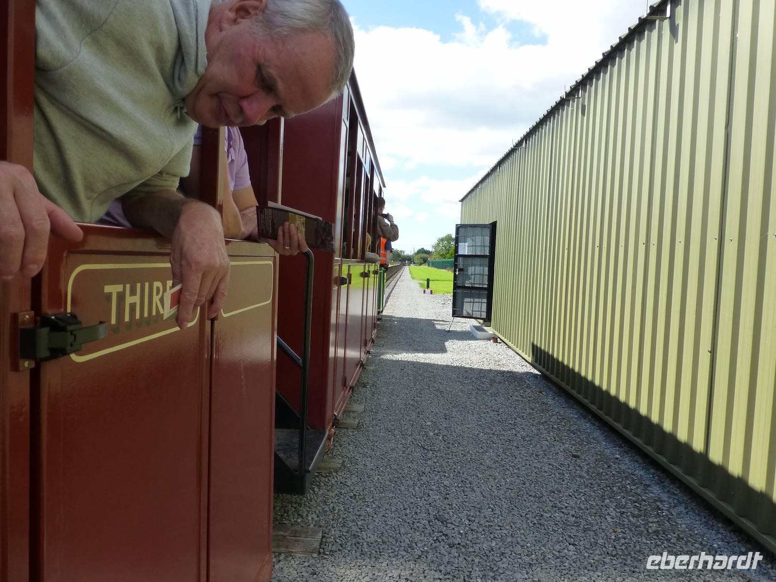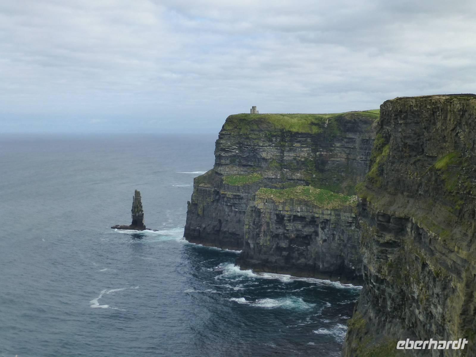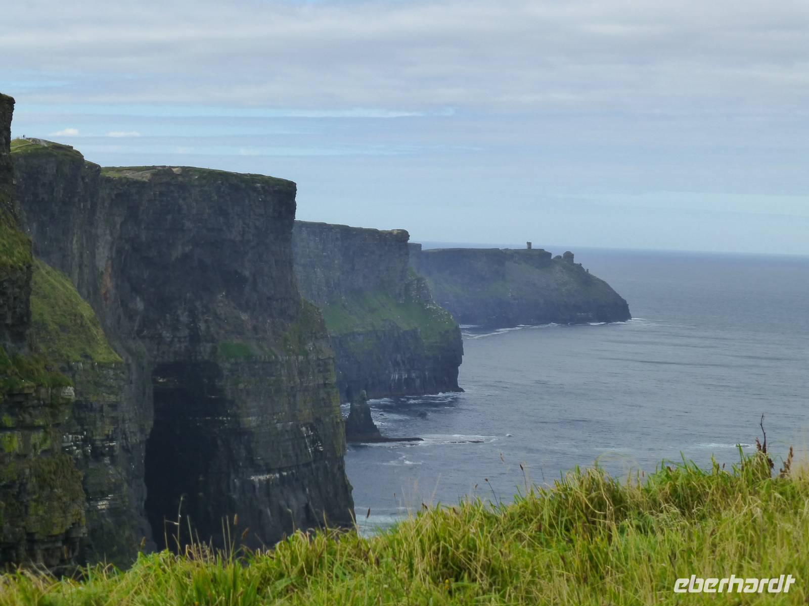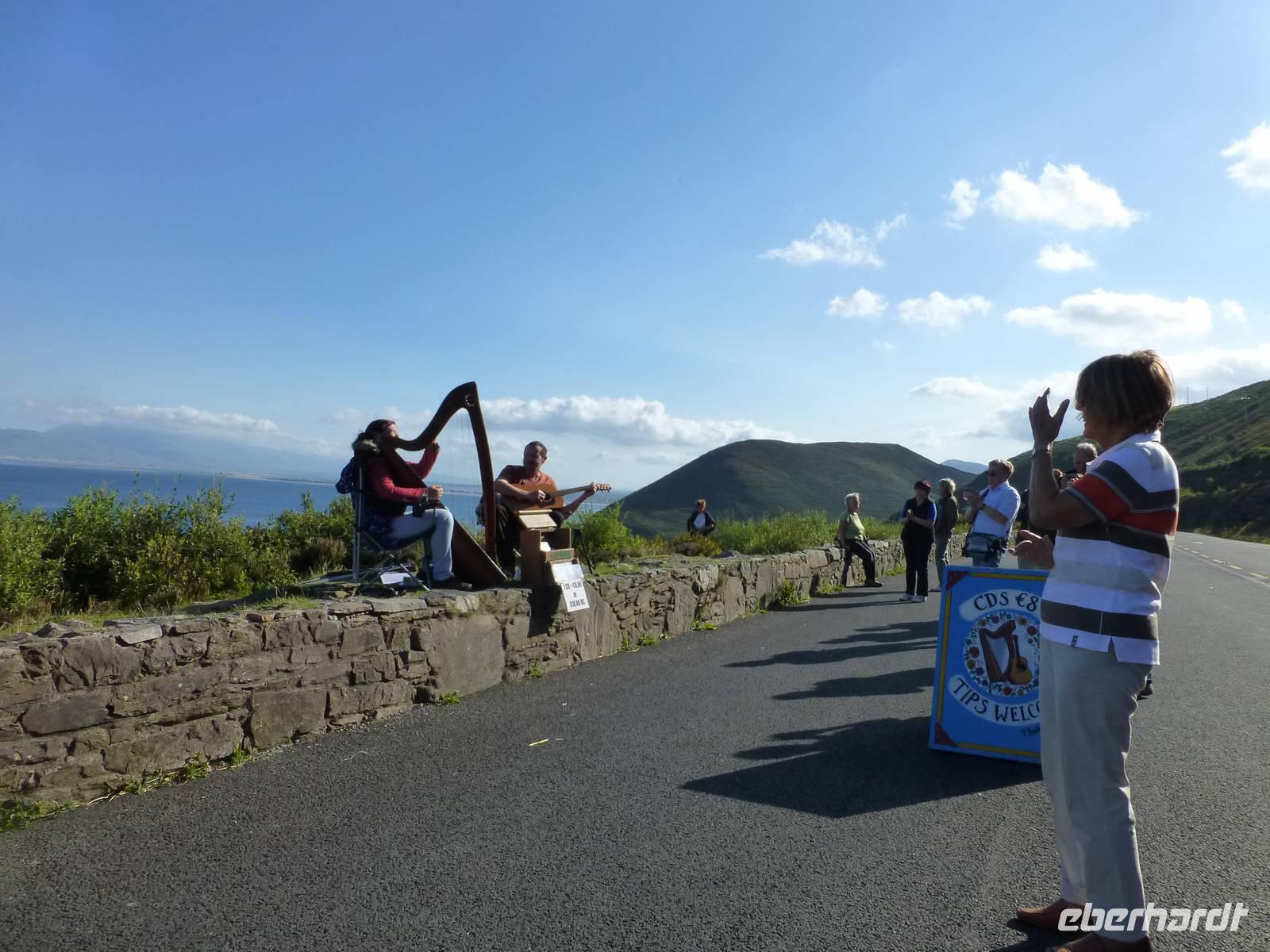Heute strahlt schon am Morgen die Sonne. Wir fahren nach dem Frühstück zu den Cliffs of Moher. Die bis zu 200 Meter hohen Klippen können wir im Sonnenschein genießen, dazu haben wir sie fast allein, denn wir sind recht zeitig da. Entlang der Küste fahren wir über Spanish Point nach Kilimer zur Shannon Ferry um den mit den mit 370 km längsten Fluss Irlands zu überqueren. Nur wenige Minuten haben wir anschließend bis nach Listowel zu fahren. In Listowel gibt es ein technisches Kleinod zu besichtigen, die Lartigue Mono Railway. Es handelt sich dabei um eine kleine Museumseisenbahn, eine Einschienenbahn. Diese ist einmalig in Europa. Gebaut wurde Sie 1888 und war bis 1924 in Betrieb, die Strecke war 10 Meilen lang und führte nach Ballybunion. Wir bekommen eine Führung, sehen einen Film über die Originalstrecke und fahren natürlich auf der nach gebauten Bahnstrecke. Die Dampflok fährt heute zwar mit einem Dieselmotor, das ist aber nicht minder interessant. Mit viel Freude sind die Mitarbeiter dabei uns alles zu zeigen, wir können Fotos machen und werden fotografiert.In Listowel gibt es ein technisches Kleinod zu besichtigen, die Lartigue Mono Railway. Es handelt sich dabei um eine kleine Museumseisenbahn, eine Einschienenbahn. Diese ist einmalig in Europa. Gebaut wurde Sie 1888 und war bis 1924 in Betrieb, die Strecke war 10 Meilen lang und führte nach Ballybunion. Wir bekommen eine Führung, sehen einen Film über die Originalstrecke und fahren natürlich auf der nach gebauten Bahnstrecke. Die Dampflok fährt heute zwar mit einem Dieselmotor, das ist aber nicht minder interessant. Mit viel Freude sind die Mitarbeiter dabei uns alles zu zeigen, wir können Fotos machen und werden fotografiert.Wenig später erreichen wir Tralee und der restliche Nachmittag steht zur freien Verfügung. Nach dem Abendessen im Brandon Hotel gehen wir noch in O'Sheas Pub. Bei traditioneller irischer Musik und einem Guinness genießen wir die Atmosphäre im verlängerten Wohnzimmer der Iren.
