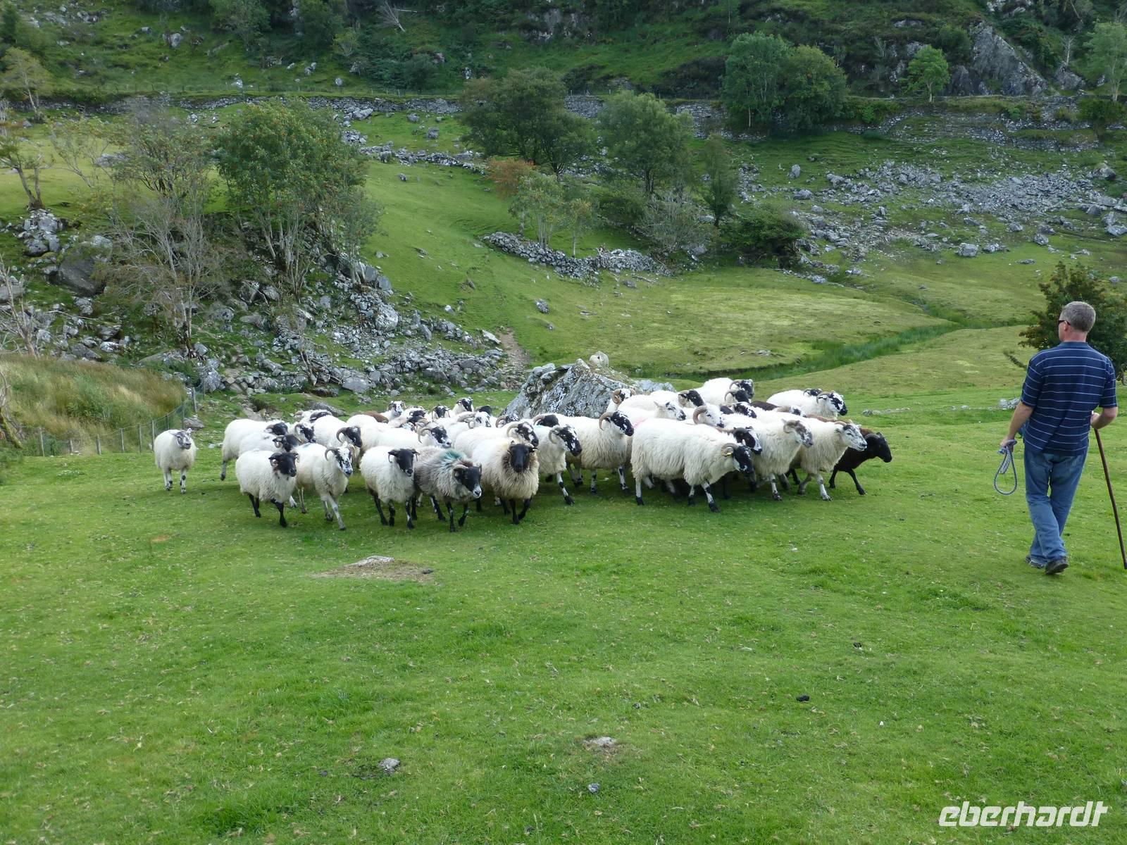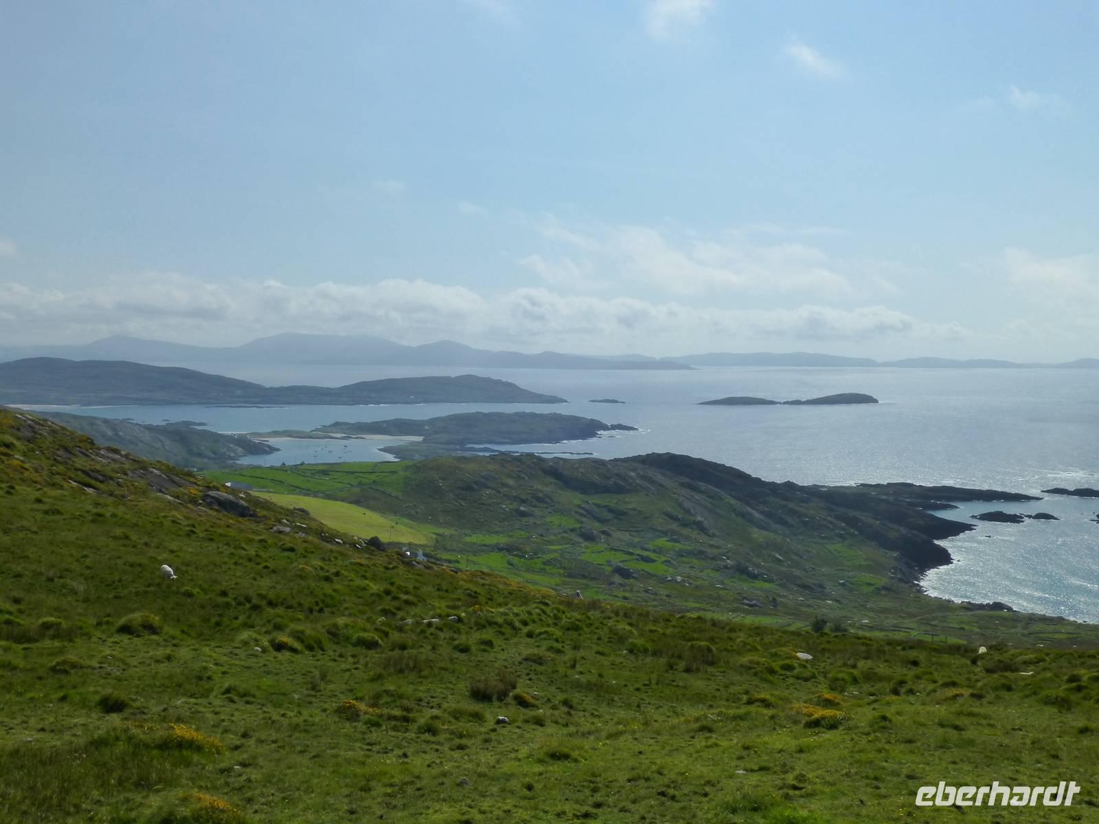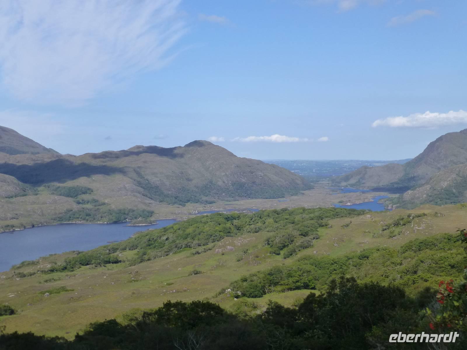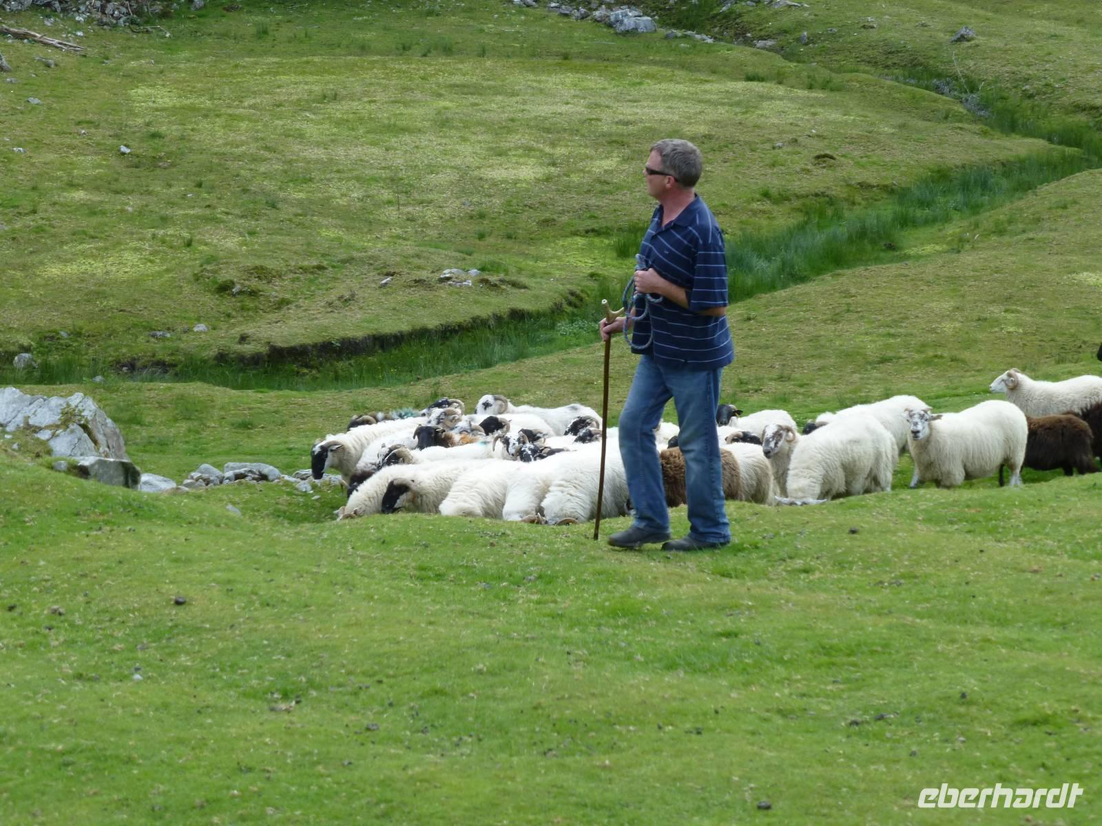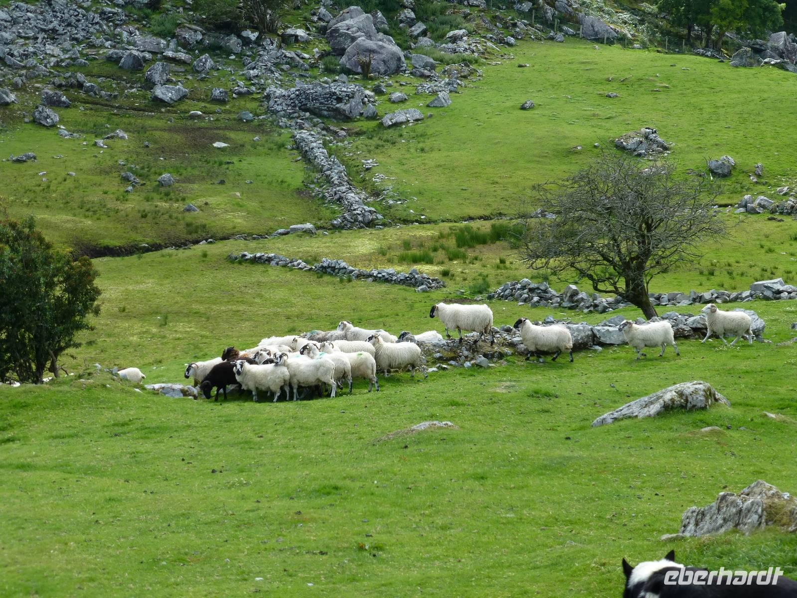 Nach dem Frühstück geht es auf zur Traumstraße Nr. 1 in Irland, dem Ring of Kerry. Die Route führt immer gegen den Uhrzeigersinn einmal auf 180 km um die Iveragh Halbinsel herum Einen ersten Stopp machen wir in Killorglin. Hier findet immer im August das „King Puck Fair" statt. Es ist ein Volksfest, bei welchen ein wild lebender Ziegenbock zum König Puck erhoben wird. Zuerst wird er eingefangen, dann inthronisiert, steht den nächsten Tag als König des Volksfestes im Mittelpunkt und wird dann am letzten Tag, wahrscheinlich stark verstört, wieder in die Freiheit entlassen. Unterwegs machen wir noch einige Fotostopps u.a. mit Blick auf die gegenüberliegende Halbinsel Dingle. Dann besuchen wir bei Cahersiveen das Cahergall Ringfort. Wir können so sehen wie in früheren Zeiten, dieses hier stammt aus dem 10. Jh., die Menschen gelebt haben. Auf den hohen Mauern kann man gut herumlaufen und hat wie die Menschen damals einen Blick über das weite Land. Unsere Mittagspause verbringen wir in Waterville, einem Ort an der Ballinskelligbay, wo auch schon Charlie Chaplin gern Urlaub machte. Nicht weit vom Ort entfernt befindet sich der 210 Meter hohe Coomakista Pass und in Sneem halten wir nochmals für eine kurze Pause. Bei Molls Gap könne wir auf der Kissane Sheep Farm die Arbeit des Schäfers mit seinen Hunden beobachten und zusehen wie ein Schaf geschoren wird. Danach weiter zum Muckross House, mit einem Rundgang um das das alte Herrenhaus und durch einen Teil des Parks. Nach Nach einem Tag voller Sonnenschein erreichen wir am Abend wieder Tralee.