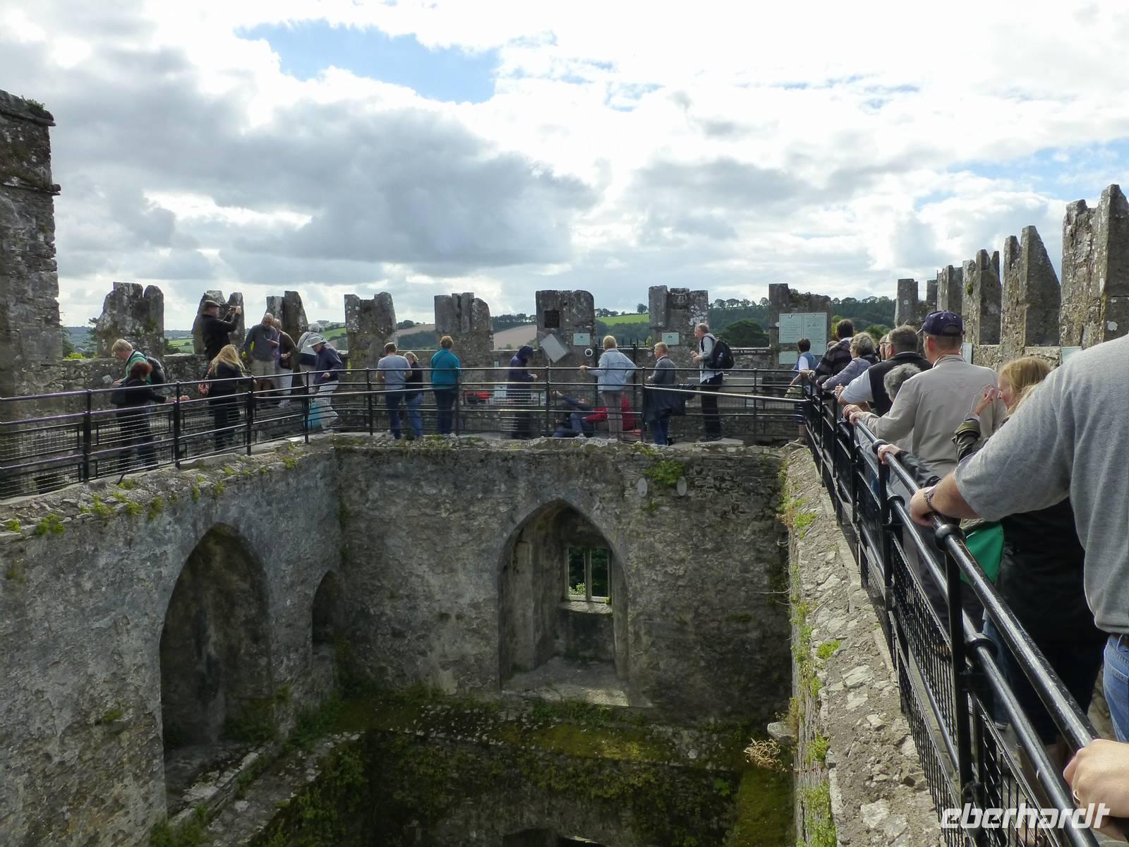 Wieder wird es ein sonniger Tag sein. Unsere Reise geht zuerst nach Blarney. Dort befindet sich im Blarney Castle der berühmte Stein der Sprachgewandtheit. Um diese zu erlangen muss der Stein geküsst werden. Dazu liegt man auf dem Rücken und streckt dann den Kopf nach hinten unten. Dabei gibt es einen Helfer, welcher immer dabei ist. Wir müssen eine ganze Zeit anstehen, da vor uns noch ein Bus angekommen ist. Einige Gäste probieren das Ritual aus, andere schauen es sich nur an. Zum Castle gehört auch eine umfangreiche Parkanlage, welche zum bummeln einlädt. Vorbei an Cork reisen wir weiter nach Kilkenny. Diese Stadt ist vor allem bekannt durch die Smithwick Brauerei, welche ein Red Ale gleichen Namens herstellt und durch das Kilkenny Castle. Das von der Familie Butler in seinen Grundzügen ab dem 14. Jh. bewohnte Schloss gehört seit 1967 dem irischen Staat. Dieser hat es aufwendig saniert und wieder mit alter Pracht eingerichtet. So kann man sehen wie die Herrschaften der Grafen von Ormond, so nannten sich die Butlers als sie in den Grafenstand erhoben wurden, einst lebten. Ein individueller Bummel durch den Ort beschließt diesen Nachmittag. Über die Autobahn erreichen wir am Abend das Tinakilly Country House Hotel in Rathnew. Dabei handelt es sich das ehemalige Landhaus des britischen Captain Robert Halpin, welcher für die Verlegung des ersten transatlantischen Seekabels im Jahre 1866 verantwortlich war. Das Abendessen ist ausgezeichnet und so lassen wir es uns in angenehmer Atmosphäre gut gehen.