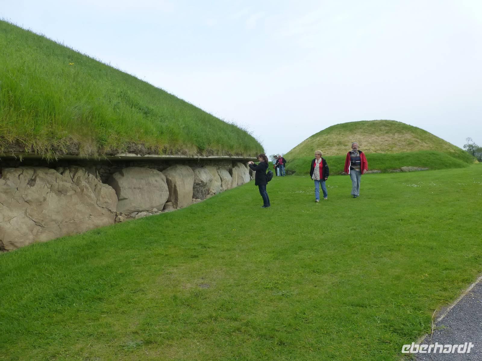 Mit einigen Gästen der Gruppe treffe ich mich am frühen Morgen auf dem Flughafen in Dresden. Gemeinsam fliegen wir mit dem ersten Flugzeug nach Frankfurt/Main und dort treffen wir dann auch die weiteren Gäste die mit uns nach Dublin fliegen. Kurz vor Mittag landen wir dann in Dublin und werden dort von Buschauffeur Patrick erwartet. Das Wetter zeigt sich recht trüb, aber wir kommen ohne Regen aus, später am Nachmittag kommt sogar die Sonne zum Vorschein. Unsere Fahrt geht zuerst ins Boyne Tal, welches sich nördlich von Dublin befindet. Unterwegs erinnern wir uns an die Schlacht vom River Boyne, welche im Juli 1690 stattfand. Dabei standen sich die Truppen des abgesetzten Königs Charles II und Wilhelm III von Oranien gegenüber. Die katholischen Kämpfer unterlagen den protestantischen und eine Folge davon war die Gründung der Orangeman. Damals als Selbstverteidigungsbündnisse gegründet existieren sie heute immer noch und zum Jahrestag der Schlacht marschieren Sie dann auf um daran zu erinnern. Früher sind sie dann in Belfast oder Derry durch katholische Wohngebiete marschiert, was entsprechende Gegenreaktionen hervorrief. Heute erfolgt der Marsch nach Vorgaben der Stadtverwaltungen und die Provokationen bleiben weitgehend aus.
