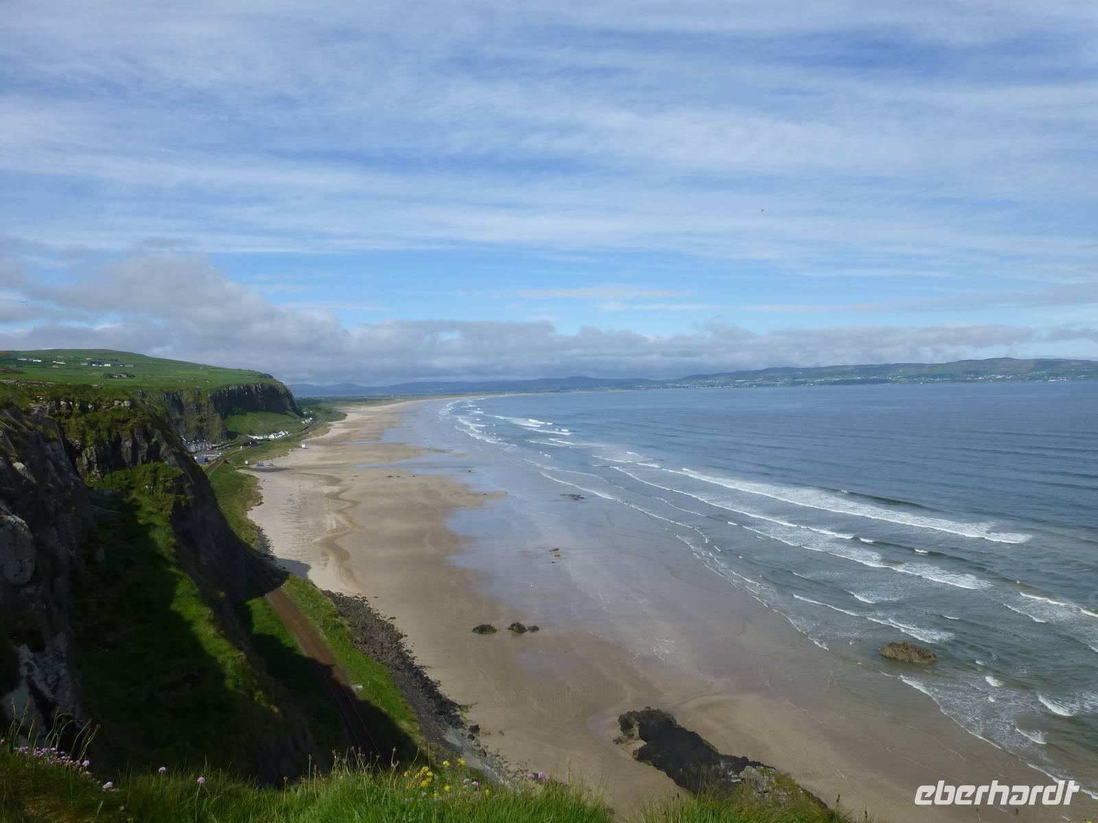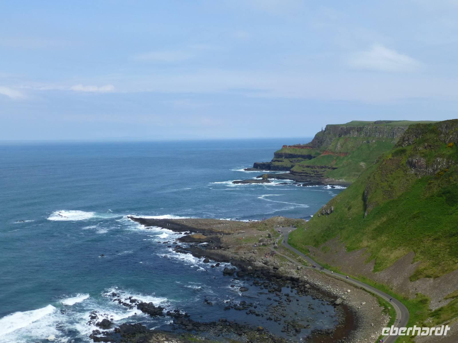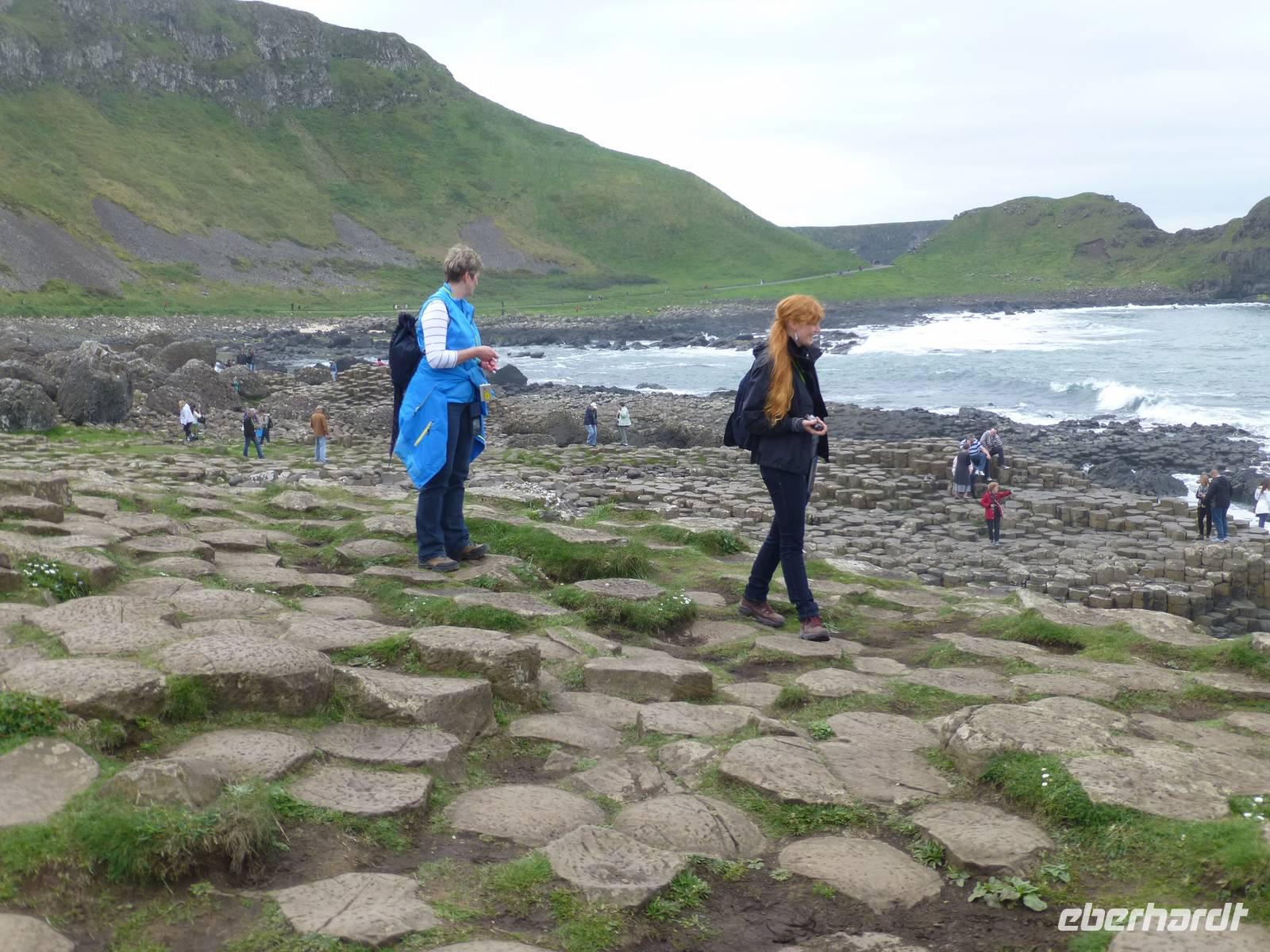 Wir fahren heute in den zu Großbritannien gehörenden Teil Irlands. Das sind 6 Grafschaften in der Provinz Ulster, welche 1921 bei Entstehung des Freistaates Irland bei Großbritannien verblieben sind. Hintergrund dazu war, das in diesem Teil der Insel mehrheitlich Protestanten lebten. Wir fahren Richtung Derry, an der Stadt aber erstmal vorbei und weiter nach Downhill zum Mussenden Tempel. Dieser kleine Ringbau steht dramatisch am Rand der Klippen. Er wurde vom Bischof Hervey im Andenken an seine Cousine Frideswide Mussenden errichtet. Mit dieser unterhielt der protestantische Bischof, welcher der holden Weiblichkeit immer zugetan war, eine unbotmäßige Beziehung. Gleich nebenan hatte er sich einen Palast bauen lassen, er strebte immer nach dem höheren und wollte auch Beziehungen zu Königshäusern aufbauen. Vollständig ist ihm das allerdings nicht gelungen. Nicht weit von hier entfernt liegt der kleine Ort Bushmills. Hier befindet sich die älteste lizenzierte Whiskey Destilliere der Welt, Old Bushmills Distillery. Die Lizenz soll von königlicher Hand bereits im Jahre 1608 erteilt worden sein. Wir lernen hier wie Whiskey, das Wasser des Lebens, hergestellt wird. Zum Abschluss unserer Tour dürfen wir auch das edle Getränk verkosten. Einen Katzensprung von hier entfernt liegt der Giants Causeway, der Damm des Riesen. Verschiedene Legenden ranken sich um die Basaltsäulen. Nüchtern betrachtet handelt es sich um Magma, welche bei vulkanischen Aktivitäten vor ca. 60 Millionen Jahren durch Erdspalten nach oben gedrückt wurde und dabei nicht an die Erdoberfläche kam. Durch ein langsames erkalten haben sich dann diese polygonalen Säulen gebildet, welche wir heute bestaunen. Jetzt geht es noch nach Derry oder Londonderry, beide Namen werden für diese Stadt verwendet. Die Stadt wurde Mitte des 17. Jh. den Mitgliedern von zwölf Londoner Zünften übergeben. Diese bauten um die Stadt eine Stadtmauer und nannten die Stadt aus Dank gegenüber dem König dann Londonderry. Die angestammte irisch-katholische Bevölkerung wurde außerhalb der Stadt in einem Sumpfgebiet angesiedelt, den Bog sides. Schlagzeilen hat die Stadt vor allem 1972 gemacht. Das war Jahr der Troubles, die ihren Höhepunkt gleich zu Beginn des Jahres hatten. Bei einer Demonstration am 30. Januar 1972 schossen britische Fallschirmjäger auf die unbewaffneten Demonstranten. 14 Menschen wurden dabei getötet. Das Ereignis ging als Bloody Sunday - Blutiger Sonntag in die Geschichte ein. Wir laufen über die Stadtmauer und bestaunen deren Mächtigkeit, sehen von der Mauer aus die St. Columbans Cathedral, und die Bogside mit den Wohngebieten der irisch-katholischen Bevölkerung. Von Derry sind es nur gut 45 Minuten zurück nach Letterkenny. Übrigens merkt man heute auch nicht mehr, dass eine Grenze überschritten wird. Die Angaben auf den Verkehrszeichen ändern sich etwas und im Laden kann man nicht mit Euro bezahlen, das ist der einzige sichtbare Unterschied. Das Wetter war uns heute auch wieder gewogen, einen großen Teil des Tages waren wir im Sonnenschein unterwegs.