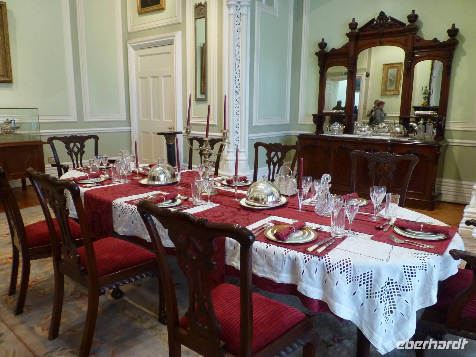 Wieder wird es ein sonniger Tag sein. Unsere reise geht zuerst nach Blarney. Dort befindet sich im Blarney Castle der berühmte Stein der Sprachgewandtheit. Um diese zu erlangen muss der Stein geküsst werden. Dazu liegt man auf dem Rücken und streckt dann den Kopf nach hinten unten. Dabei gibt es einen Helfer, welcher immer dabei ist. Wir müssen eine ganze Zeit anstehen, da vor uns noch ein Bus angekommen ist. Einige Gäste probieren das Ritual aus, andere schauen es sich nur an. Zum Castle gehört auch eine umfangreiche Parkanlage, welche zum bummeln einlädt. Vorbei an Cork reisen wir weiter nach Kilkenny. Diese Stadt ist vor allem bekannt durch die Smithwick's Brauerei, welche ein Red Ale gleichen Namens herstellt und durch das Kilkenny Castle. Das von der Familie Butler in seinen Grundzügen ab dem 14. Jh. bewohnte Schloss gehört seit 1967 dem irischen Staat. Dieser hat es aufwendig saniert und wieder mit alter Pracht eingerichtet. So kann man sehen wie die Herrschaften der Grafen von Ormond, so nannten sich die Butlers als sie in den Grafenstand erhoben wurden, einst lebten. Ein individueller Bummel durch den Ort beschließt diesen Nachmittag. Über die Autobahn erreichen wir am Abend das Park View Hotel im kleinen Ort Newtownmountkennedy. Das Abendessen ist ausgezeichnet und so lassen wir es uns in angenehmer Atmosphäre gut gehen.