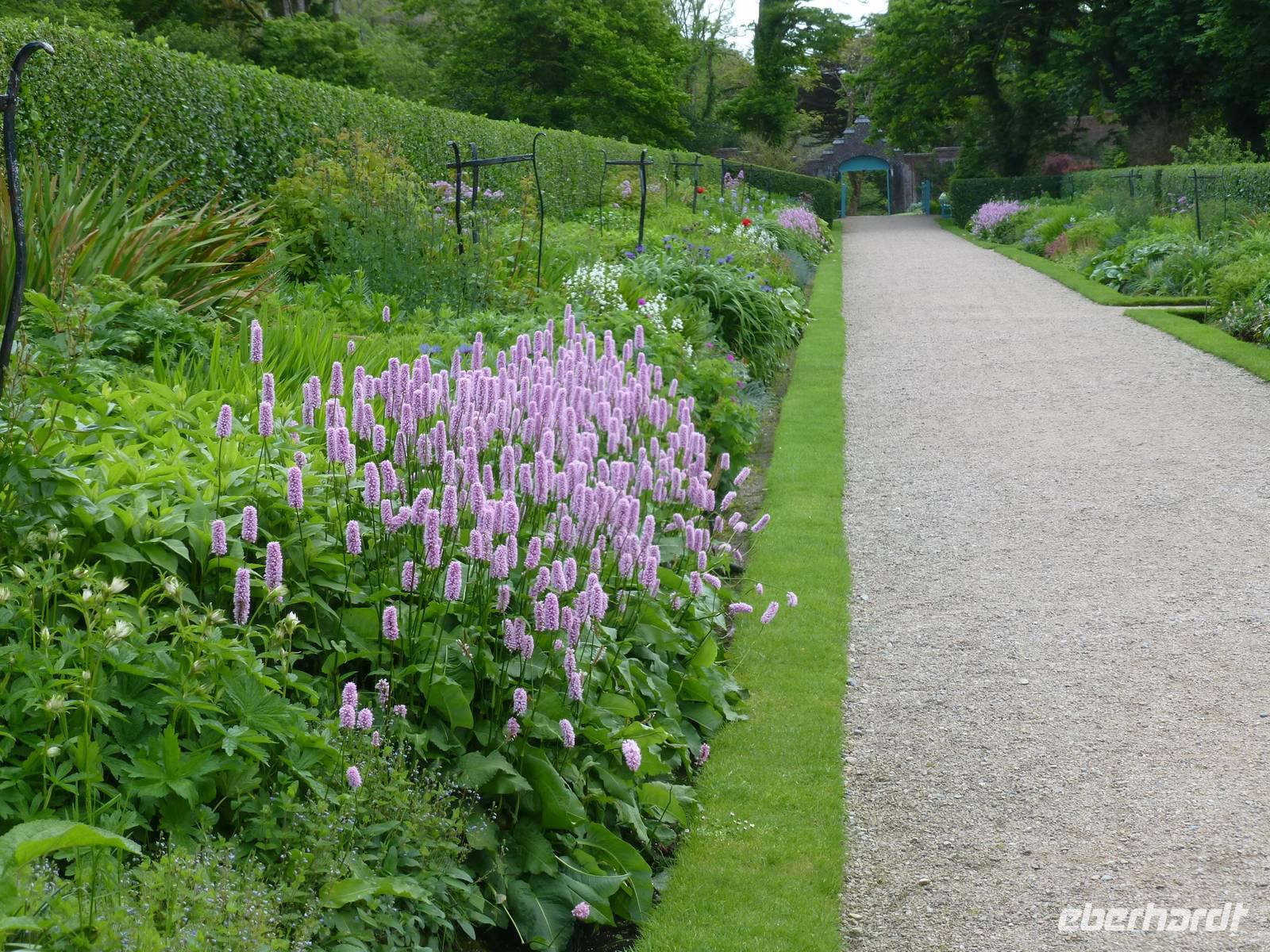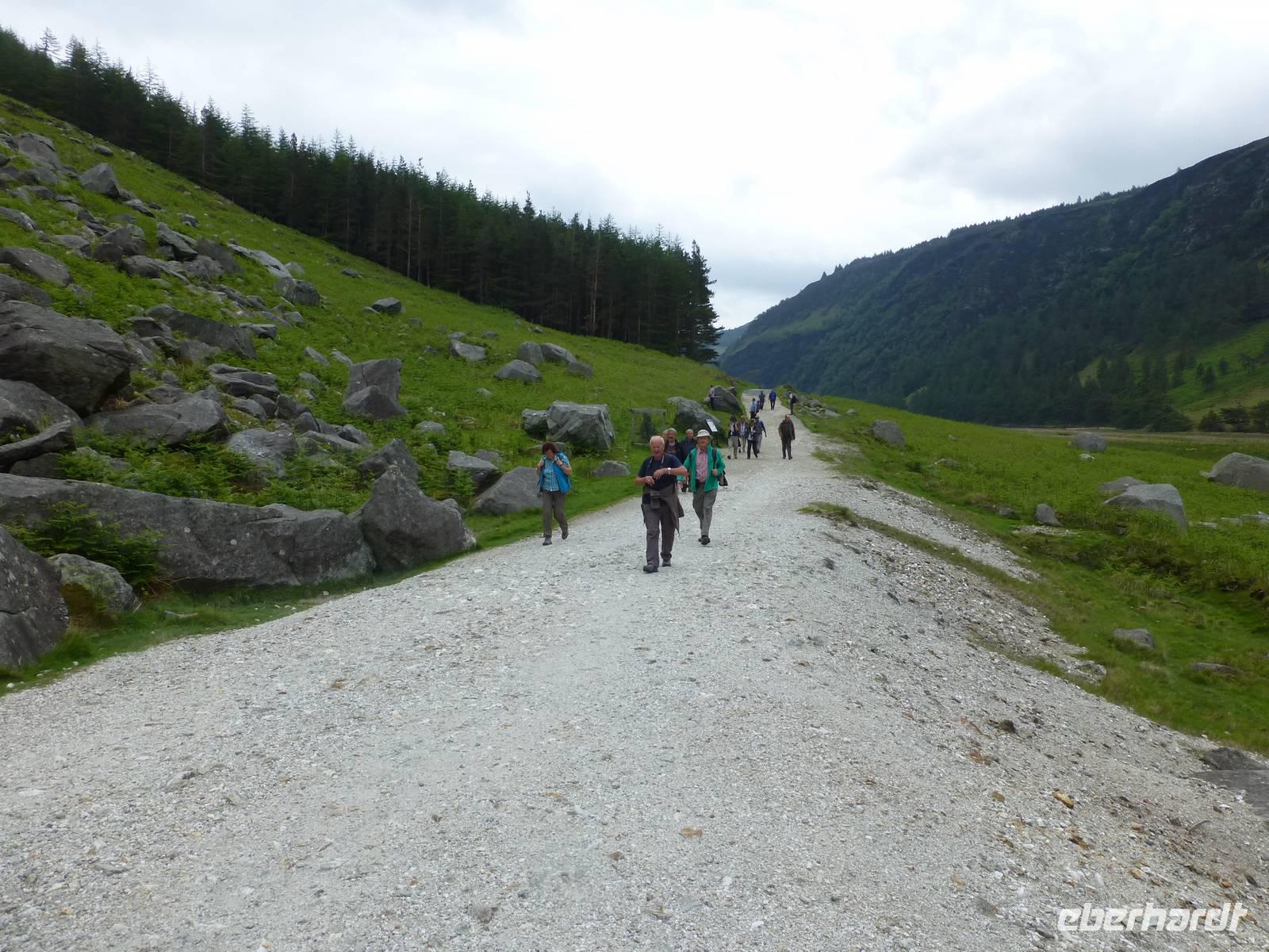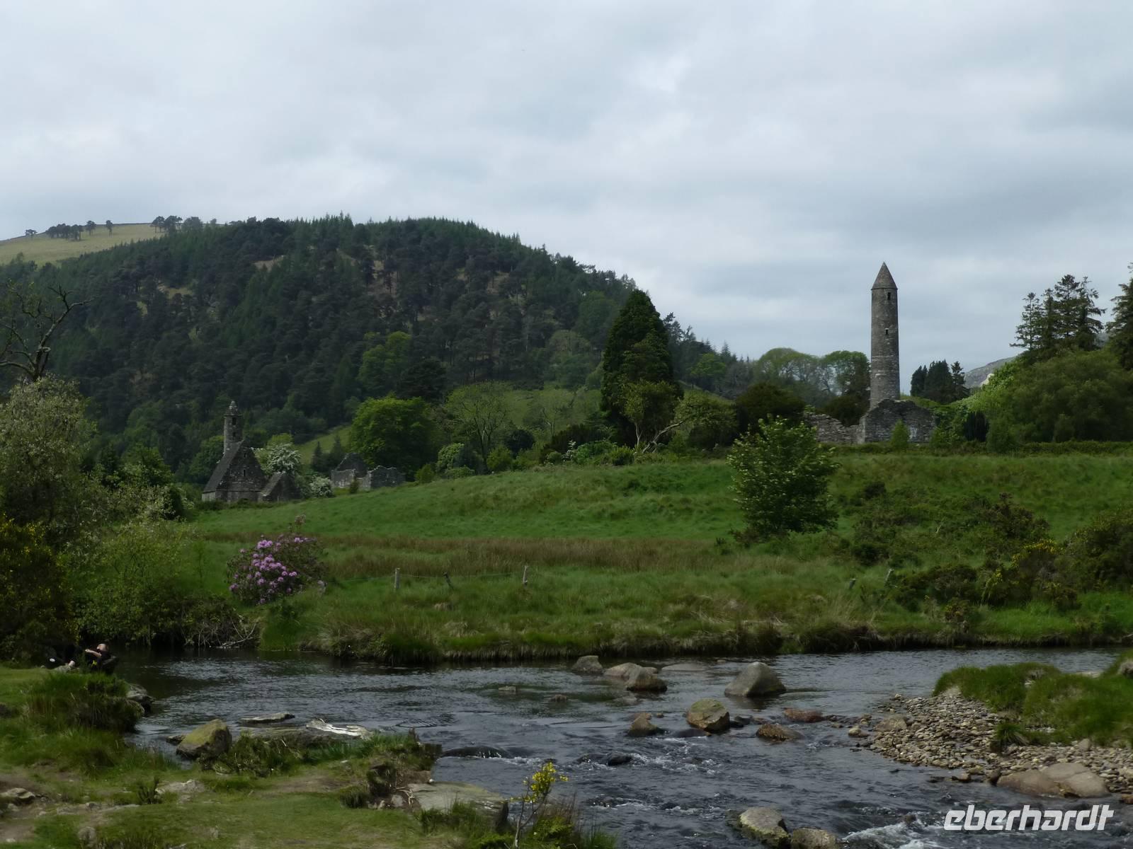 Nach einem guten Frühstück fahren wir nach Glendalough. Hier befand sich eines der wichtigsten frühchristlichen Klöster Irlands, gegründet im 6. Jh. durch St. Kevin. Der christliche Glaube kam durch Patrick vom europäischen Festland nach Irland, verbreitete sich hier und wurde dann von irischen Mönchen wieder auf das europäische Festland zurück gebracht und in den Gebieten, welche nicht unter römischer Herrschaft gestanden haben, verbreitet. Im Visitor Center sehen wir einen Film der darüber und natürlich auch über die Entstehung des Klosters hier berichtet. Anschließend gehen wir gemeinsam mit Fiona, einer deutsch sprechenden Führerin, durch das Klostergelände. Sie zeigt und erklärt uns den Eingang zum Kloster, den Rundturm, die Kathedrale und Kevin Church. Mit Charme und Witz bringt sie uns die Geschichte näher. Das Wetter übrigens meint es mit uns überaus gut und so wandern wir entlang des Lower und des Upper Lake bis zum ehemaligen Miners Village, wo sich einige verfallene Gebäude einer längst geschlossenen Bleimine. Der Wind bläst uns vom Wicklow Gap herunter kräftig ins Gesicht, wir drehen um und laufen zurück zum Café am Upper Lake. Den Nachmittag nutzen wir zur Besichtigung von Powerscourt Garden, dem vielleicht schönsten angelegten Garten in Irland. Bei Sonnenschein genießen wir die wunderschöne Anlage, wandeln durch die einzelnen Gartenteile, den italienischen und japanischen Garten, den Walled Garden mit seiner Blütenpracht. Am Abend erwartet uns dann noch einmal ein ausgezeichnetes Abendessen.