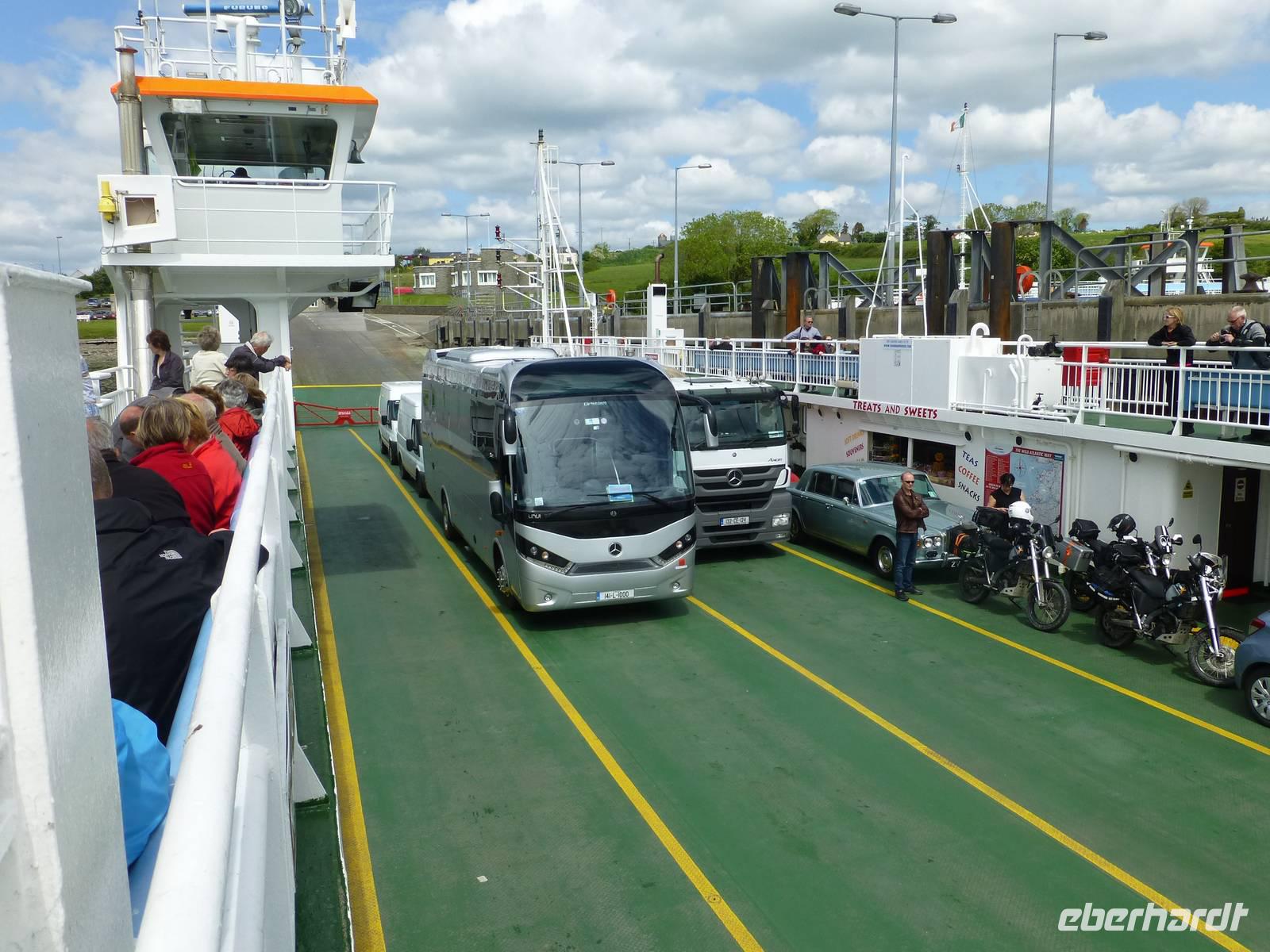 Heute strahlt schon am Morgen die Sonne. Wir fahren nach dem Frühstück zu den Cliffs of Moher. Die bis zu 200 Meter hohen Klippen können wir im Sonnenschein genießen. Entlang der Küste fahren wir über Spanish Point nach Kilimer zur Shannon Ferry um den mit den mit 370 km längsten Fluss Irlands zu überqueren. Nur wenige Minuten haben wir anschließend bis nach Listowel zu fahren. In Listowel gibt es ein technisches Kleinod zu besichtigen, die Lartigue Mono Railway. Es handelt sich dabei um eine kleine Museumseisenbahn, eine Einschienenbahn. Diese ist einmalig in Europa. Gebaut wurde Sie 1888 und war bis 1924 in Betrieb, die Strecke war 10 Meilen lang und führte nach Ballybunion. Wir bekommen eine Führung, sehen einen Film über die Originalstrecke und fahren natürlich auf der nach gebauten Bahnstrecke. Die Dampflok fährt heute zwar mit einem Dieselmotor, das ist aber nicht minder interessant. Mit viel Freude sind die Mitarbeiter dabei uns alles zu zeigen, wir können Fotos machen und werden fotografiert. In Listowel gibt es ein technisches Kleinod zu besichtigen, die Lartigue Mono Railway. Es handelt sich dabei um eine kleine Museumseisenbahn, eine Einschienenbahn. Diese ist einmalig in Europa. Gebaut wurde Sie 1888 und war bis 1924 in Betrieb, die Strecke war 10 Meilen lang und führte nach Ballybunion. Wir bekommen eine Führung, sehen einen Film über die Originalstrecke und fahren natürlich auf der nach gebauten Bahnstrecke. Die Dampflok fährt heute zwar mit einem Dieselmotor, das ist aber nicht minder interessant. Mit viel Freude sind die Mitarbeiter dabei uns alles zu zeigen, wir können Fotos machen und werden fotografiert. Wenig später erreichen wir Tralee und der restliche Nachmittag steht zur freien Verfügung. Nach dem Abendessen im Brandon Hotel gehen die meisten Gäste noch zu einer Vorstellung ins Siamsa Folk Theater.
