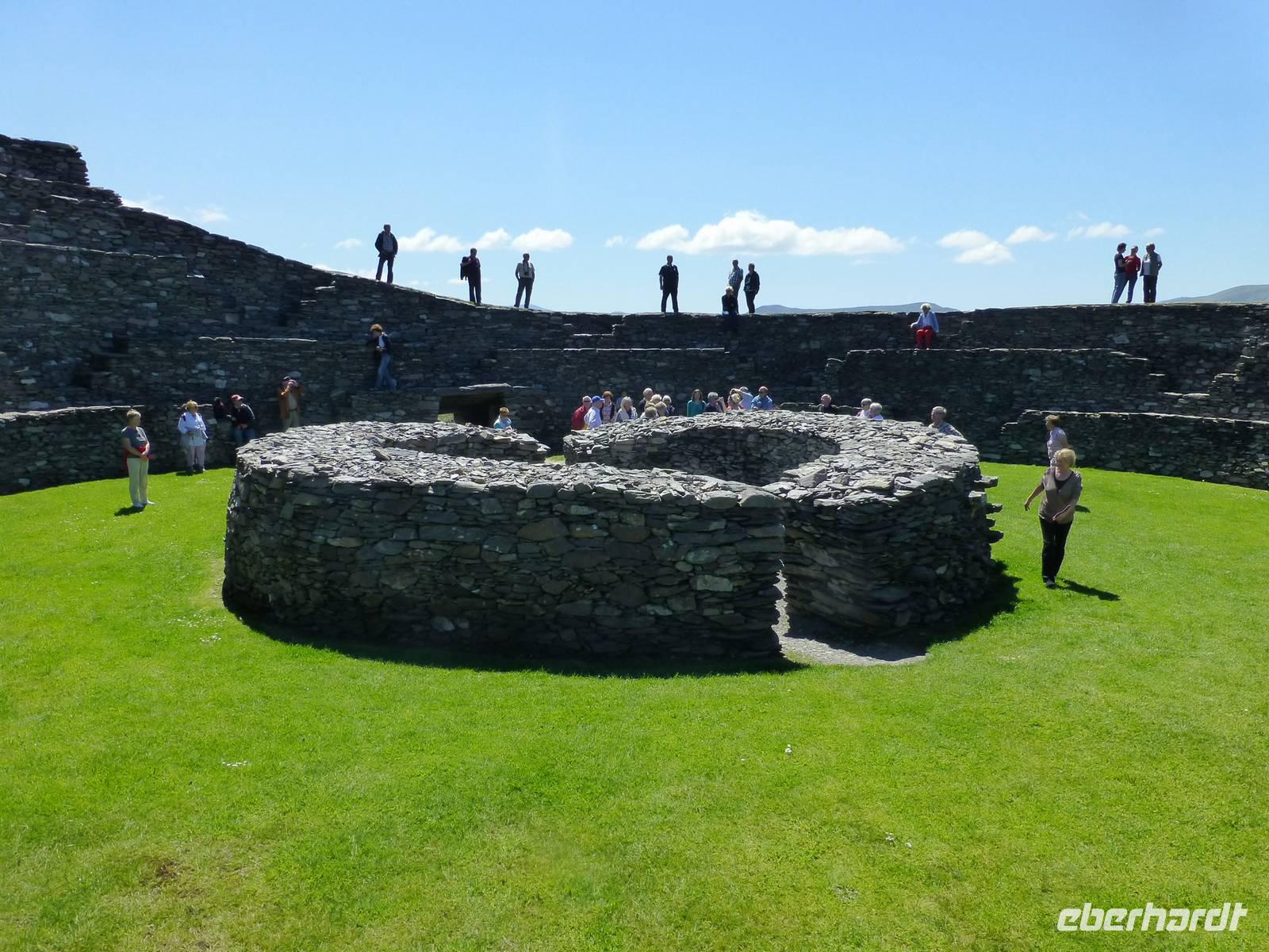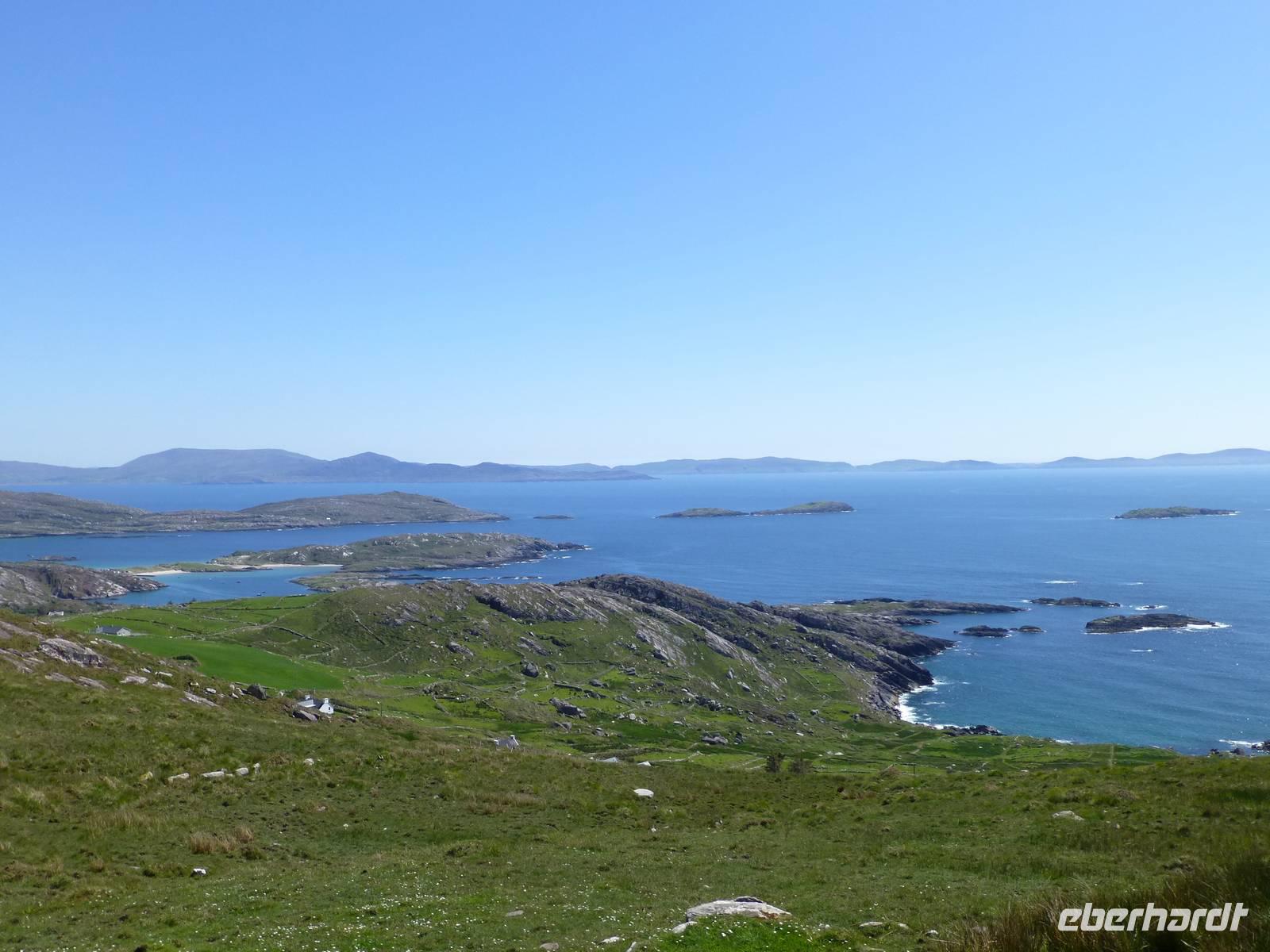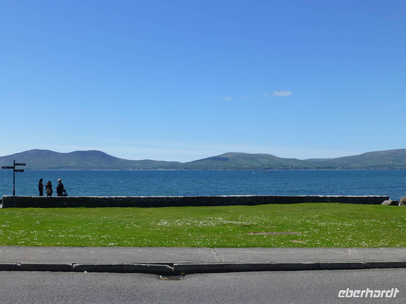Nach dem Frühstück geht es auf zur Traumstraße Nr. 1 in Irland, dem Ring of Kerry. Bereits am Morgen ist strahlend blauer Himmel, so dass es ein Tag mit vielen traumhaften Ausblicken werden wird. Die Route führt immer gegen den Uhrzeigersinn einmal auf 180 km um die Iveragh Halbinsel herum Einen ersten Stopp machen wir Muckross Park, mit einem Rundgang um das das alte Herrenhaus und durch einen Teil des Parks. In Killorglin findet immer im August das „King Puck Fair" statt. Es ist ein Volksfest, bei welchen ein wild lebender Ziegenbock zum König Puck erhoben wird. Zuerst wird er eingefangen, dann inthronisiert, steht den nächsten Tag als König des Volksfestes im Mittelpunkt und wird dann am letzten Tag, wahrscheinlich stark verstört, wieder in die Freiheit entlassen. Unterwegs machen wir noch einige Fotostopps u.a. mit Blick auf die gegenüberliegende Halbinsel Dingle. Dann besuchen wir bei Cahersiveen das Cahergall Ringfort. Wir können so sehen wie in früheren Zeiten, dieses hier stammt aus dem 10. Jh. die Menschen gelebt haben. Auf den hohen Mauern kann man gut herumlaufen und hat wie die Menschen damals einen Blick über das weite Land. Unsere Mittagspause verbringen wir in Waterville, einem Ort an der Ballinskelligbay, wo auch schon Charlie Chaplin gern Urlaub machte. Nicht weit vom Ort entfernt befindet sich der 210 Meter hohe Coomakista Pass und in Sneem halten wir nochmals für eine kurze Pause. Weiter fahren wir noch nach Kenmare, wo wir die Möglichkeit haben einen Steinkreis aus der Bronzezeit zu besichtigen. Nach einem Tag voller Sonnenschein erreichen wir am Abend wieder Tralee.