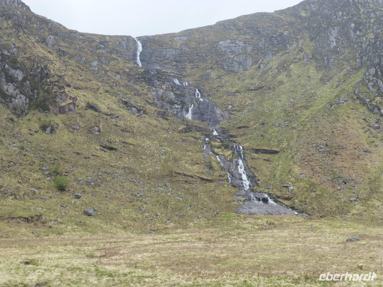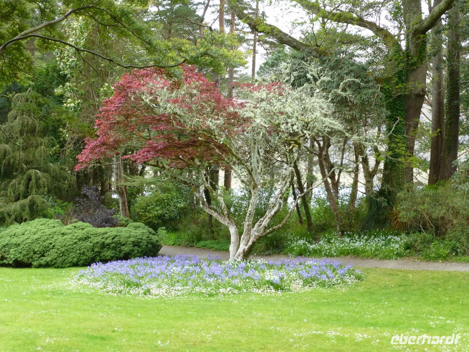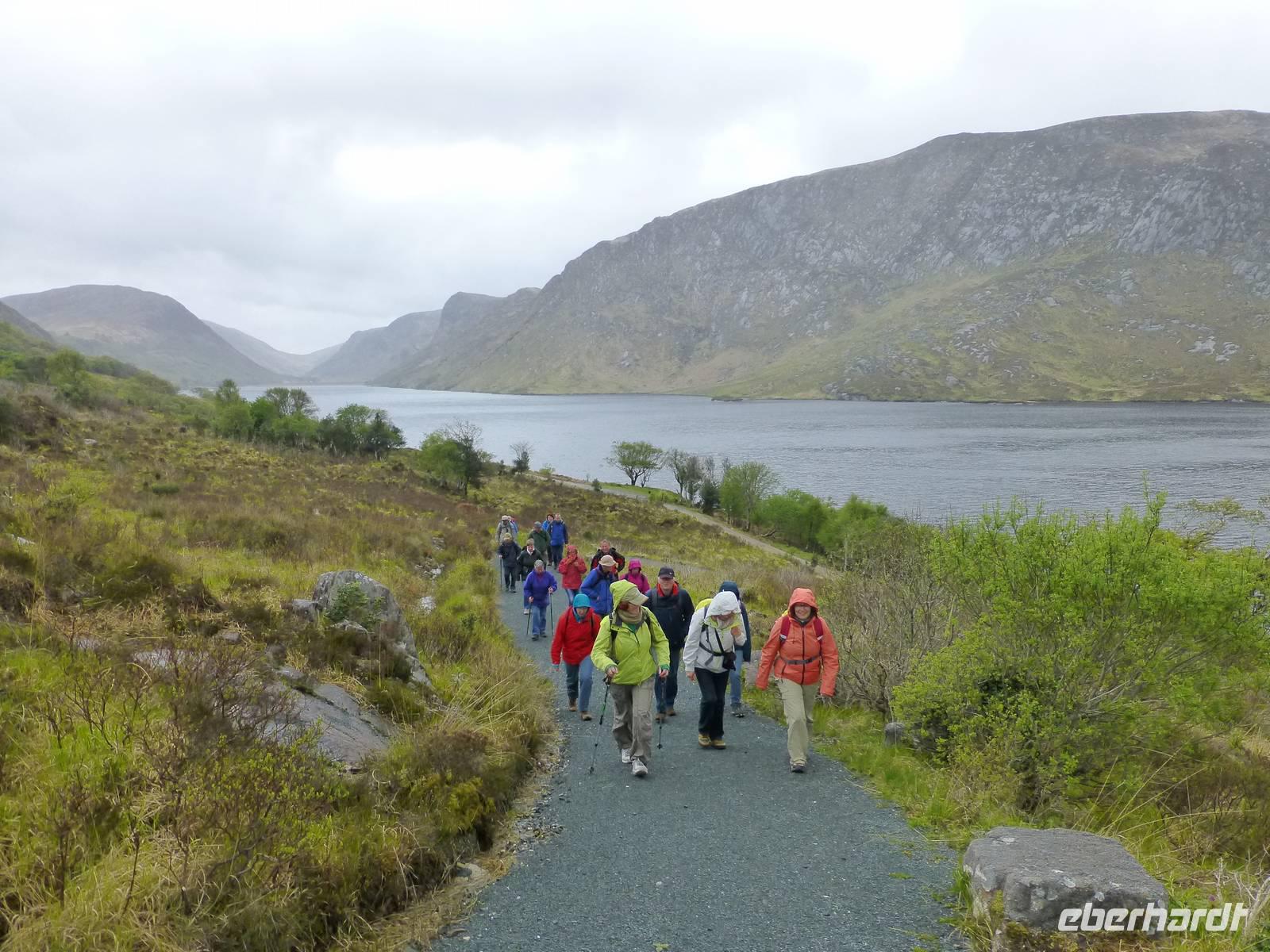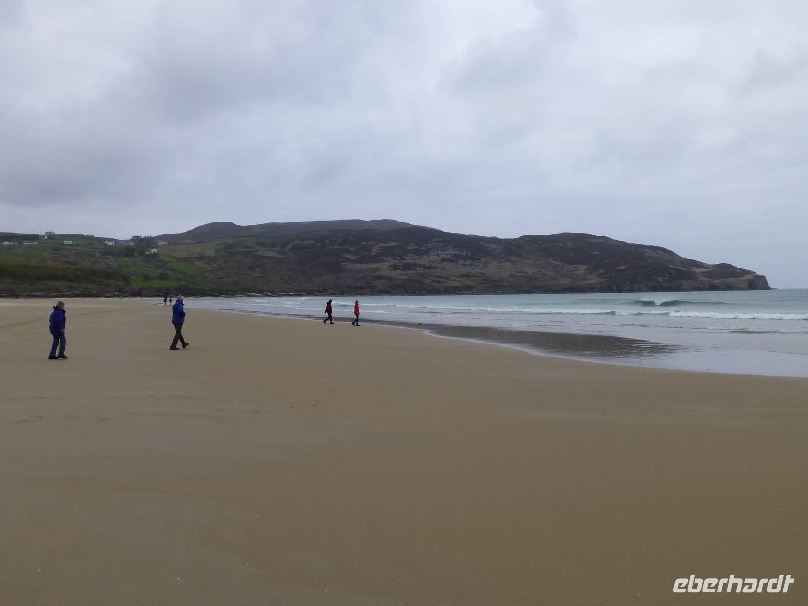Der heutige Tag führt uns in den Glenveagh NP, welcher nur etwa eine halbe Stunde von Letterkenny entfernt liegt. Im Visitorcenter sehen wir einen kurzen Film, welcher uns mit der Historie des Glenveagh Castle und dem Nationalpark bekannt macht. Mit einem Shuttlebusse fahren wir dann zum Glenveagh Castle und besichtigen nun das in der Mitte des 18. Jh. gebaute kleine Schlösschen. Der letzte Besitzer, Henry McIlhenny, ein Amerikaner mit irischen Wurzeln, hat die Ländereinen 1975 und das Castle 1983 dem irischen Staat übergeben, welcher es bis heute pflegt. Er hatte gern Besucher bei sich, so weilten Greta Garbo und auch der berühmte Geiger Yehudi Menuhin hier. Nach der Besichtigung wandern wir entlang des Sees, unterwegs sind viele eigenartig geformte Bäume zu sehen, alles sieht etwas mystisch aus. Es nieselt immer wieder mal, hier nennt man das „Drizzle". Wir laufen denselben Weg zurück und kurz vor dem Castle machen wir an einem Picnicplatz unsere Mittagspause. Anschließend laufen wir hinauf zum Aussichtspunkt, von welchem ein schöner Blick über das gesamte Tal möglich ist. Die Gartenanlage ist ebenfalls sehr sehenswert, leider blüht zurzeit noch nicht sehr viel, es war bis jetzt zu kalt und zu nass. Bis zum Busparkplatz kann man entlang des Sees laufen oder wer möchte kann auch mit dem Shuttlebus zurück fahren. Zum Abschluss des Tages fahren wir nach Dunfanaghy an die Küste und lassen uns am Atlantik für einige Minuten den Wind um die Nase wehen. Nach einem Tag mit einem Mix aus Sonnenschein, Wolken und etwas „Drizzle" fahren wir wieder zurück zum Hotel und freuen uns auf ein gutes Abendessen.
