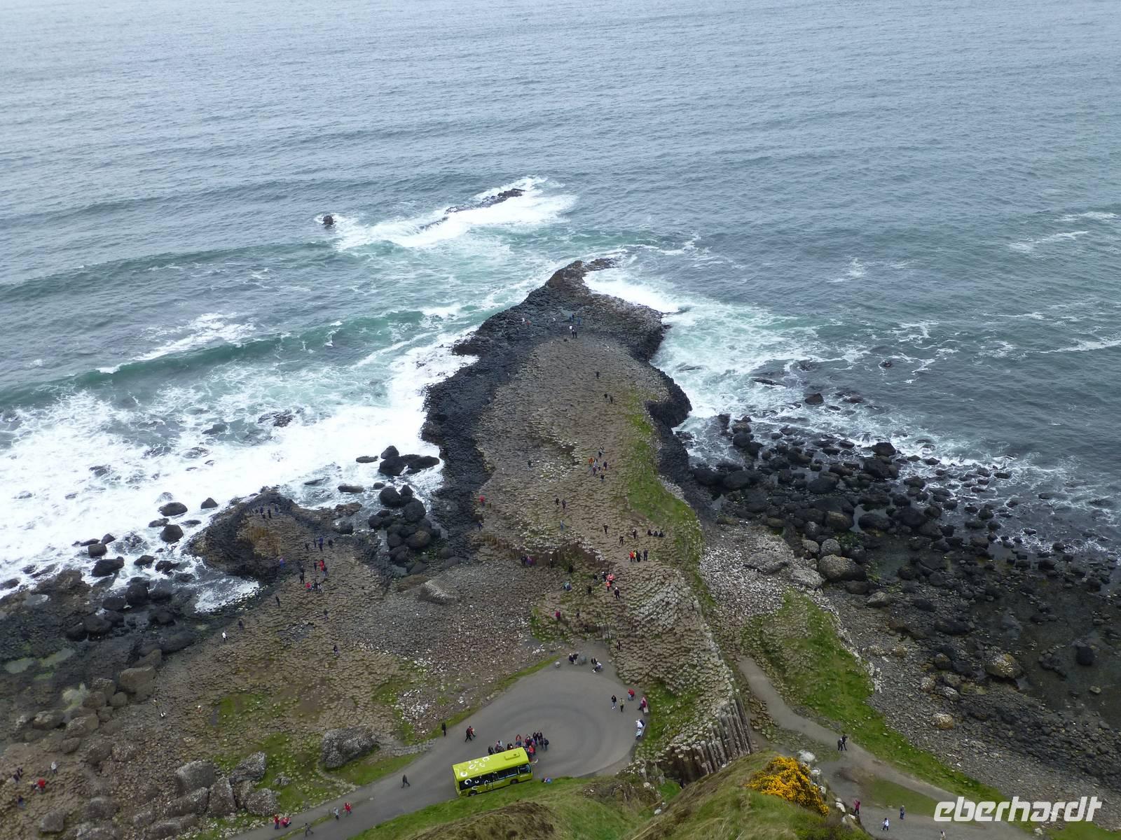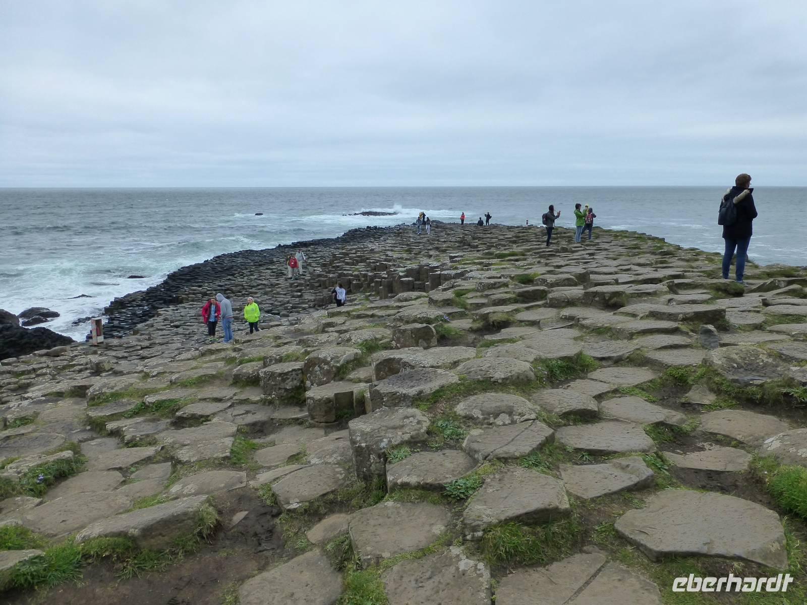Wir fahren heute in den zu Großbritannien gehörenden Teil Irlands. Das sind 6 Grafschaften in der Provinz Ulster, welche 1921 bei Entstehung des Freistaates Irland bei Großbritannien verblieben sind. Hintergrund dazu war, das in diesem Teil der Insel mehrheitlich Protestanten lebten. Wir besuchen zuerst Derry. Die Stadt wurde Mitte des 17. Jh. den Mitgliedern von zwölf Londoner Zünften übergeben. Diese bauten um die Stadt eine Stadtmauer und nannten die Stadt aus Dank gegenüber dem König dann Londonderry. Die angestammte irisch-katholische Bevölkerung wurde außerhalb der Stadt in einem Sumpfgebiet angesiedelt, den Bogsides. Schlagzeilen hat die Stadt vor allem 1972 gemacht. Das war Jahr der Troubles, die ihren Höhepunkt gleich zu Beginn des Jahres hatten. Bei einer Demonstration am 30. Januar 1972 schossen britische Fallschirmjäger auf die unbewaffneten Demonstranten. 14 Menschen wurden dabei getötet. Das Ereignis ging als Bloody Sunday - Blutiger Sonntag in die Geschichte ein. Wir laufen über die Stadtmauer, werfen einen Blick in die St. Columbans Cathedral, sehen die Bogside mit den Wohngebieten der irisch-katholischen Bevölkerung. Vorbei am 2013 renovierten Rathaus erreichen wir wieder unseren Bus. Mit diesem fahren wir weiter nach Downhill zum Mussenden Tempel. Dieser kleine Rundbau steht dramatisch am Rand der Klippen. Er wurde vom Bischof Hervey im Andenken an seine Cousine Frideswide Mussenden errichtet. Mit dieser unterhielt der protestantische Bischof, welcher der holden Weiblichkeit immer zugetan war, eine unbotmäßige Beziehung. Gleich nebenan hatte er sich einen Palast bauen lassen, er strebte immer nach dem höheren und wollte auch Beziehungen zu Königshäusern aufbauen. Vollständig ist ihm das allerdings nicht gelungen. Vom Bischofspalast sind heute nur noch die Grundmauern vorhanden und alles wird vom National Trust gepflegt. Nicht weit von hier entfernt liegt der kleine Ort Bushmills. Hier befindet sich die älteste Whiskey Destilliere Irlands und eine der ältesten der Welt, die Old Bushmills Distillery. Die Lizenz soll von königlicher Hand bereits im Jahre 1608 erteilt worden sein, gegründet wurde die Brennerei aber erst 1728. Wir lernen hier wie Whiskey, das Wasser des Lebens, hergestellt wird. Zum Abschluss unserer Tour dürfen wir auch das edle Getränk verkosten. Einen Katzensprung von hier entfernt liegt der Giants Causeway, der Damm des Riesen. Verschiedene Legenden ranken sich um die Basaltsäulen. Nüchtern betrachtet handelt es sich um Magma, welche bei vulkanischen Aktivitäten vor ca. 60 Millionen Jahren durch Erdspalten nach oben gedrückt wurde und dabei nicht an die Erdoberfläche kam. Durch ein langsames erkalten haben sich dann diese polygonalen Säulen gebildet, welche wir heute bestaunen. Das Wetter war uns heute hold, kein einziger Schauer hat unseren heutigen Tag begleitet.