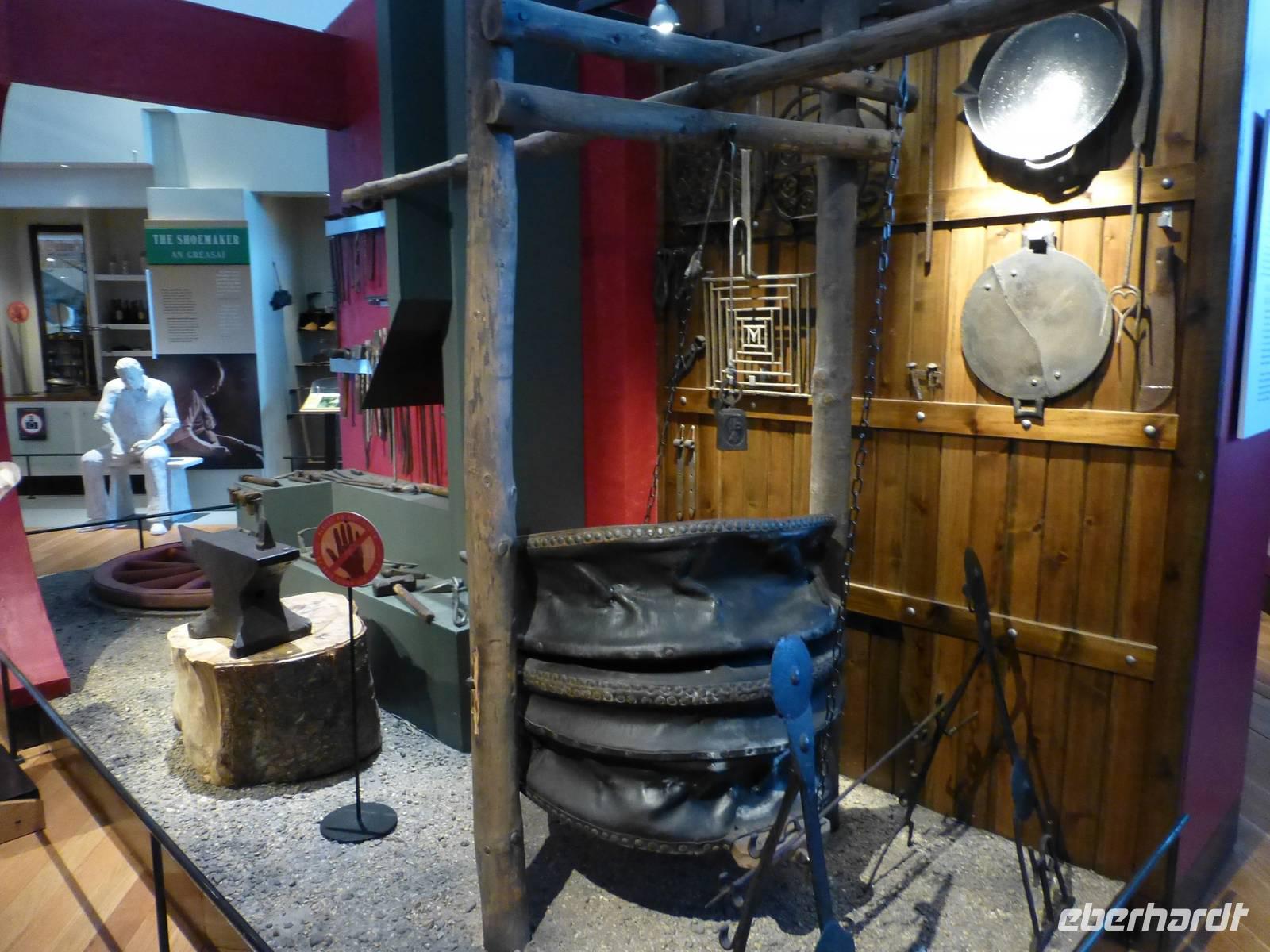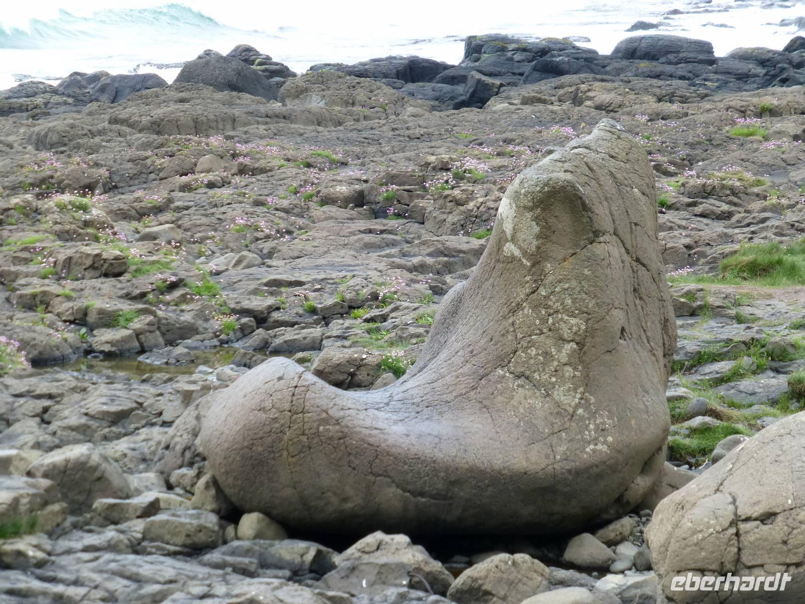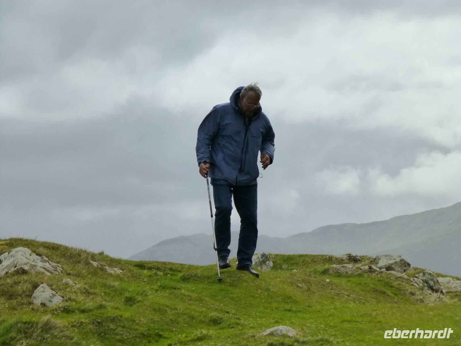 Als wir am Morgen von Letterkenny Richtung Süden aufbrechen scheint die Sonne. Doch bereits auf halben Weg nach Donagal ändert sich das Wetter, es nieselt und ist neblig. Einen ersten Halt machen wir in Drumcliff. Unterhalb des markanten Tafelberges Ben Bulben, der heute nicht zu sehen ist befindet sich der kleine Friedhof von Drumcliff. Vor zwei Tagen weilte Prinz Charles mit seiner Frau Camilla hier zu besucht um genau wie wir das Grab des irischen Schriftstellers und Literaturnobelpreisträgers von 1923, William Butler Yeats, zu besuchen. Es war sein Wunsch an dieser Stelle begraben zu sein. Auf seinem Grabstein befindet sich eine der berühmtesten selbst verfassten Grabinschriften der Welt: „Werfe einen kalten Blick, auf Leben, auf Tot, Reiter und dann ziehe weiter". Danach wollten wir eigentlich den Berg Knocknarea bei Sligo steigen. Er ist ein markanter Punkt und schon von weiten sieht man ihn, aber nicht heute. Da es leicht regnet und es am Berghang doch recht rutschig ist entscheide ich nicht aufzusteigen. Nach einer kurzen Beratung mit unserem Buschauffeur fahren wir nach Turlough in das „Museum of Country Life". Unterwegs wird das Wetter bereits besser. Im Museum bekommen wir einen Einblick über das sicher recht oft beschwerliche Landleben der irischen Bevölkerung in der Vergangenheit. Wir bekommen aber auch vermittelt, wie man mit bzw. von der Natur lebt. Später in Westport nutzen wir die Zeit etwas zum Bummeln und Wanderverpflegung für die nächsten zwei Tage zu kaufen. Das Wetter zeigt sich jetzt von seiner trockenen und teilweise sonnigen Seite und so ist doch noch eine kleine Wanderung möglich. Roy schlägt einen Weg entlang der Küste unterhalb des Croagh Patrick vor. Der Legende nach soll Irlands Nationalheiliger auf diesem Berg 40 Tage und Nächte verbracht haben auf der Findung mit sich selbst. Nachdem ihm klar war, dass er dem irischen Volk das Christentum bringen muss hat er mit einer Glocke geläutet und dabei ist die Schlange, sie galt als die Hüterin der Weisheit, erschrocken und von der Insel geflohen. Und so gibt es bis heute keine Schlangen in Irland. Die Wanderweg hat eine zwar etwas steinigen Untergrund, dafür ist der Blick über Clew Bay vom Feinsten und die eine oder andere Muschel lässt sich auch finden.