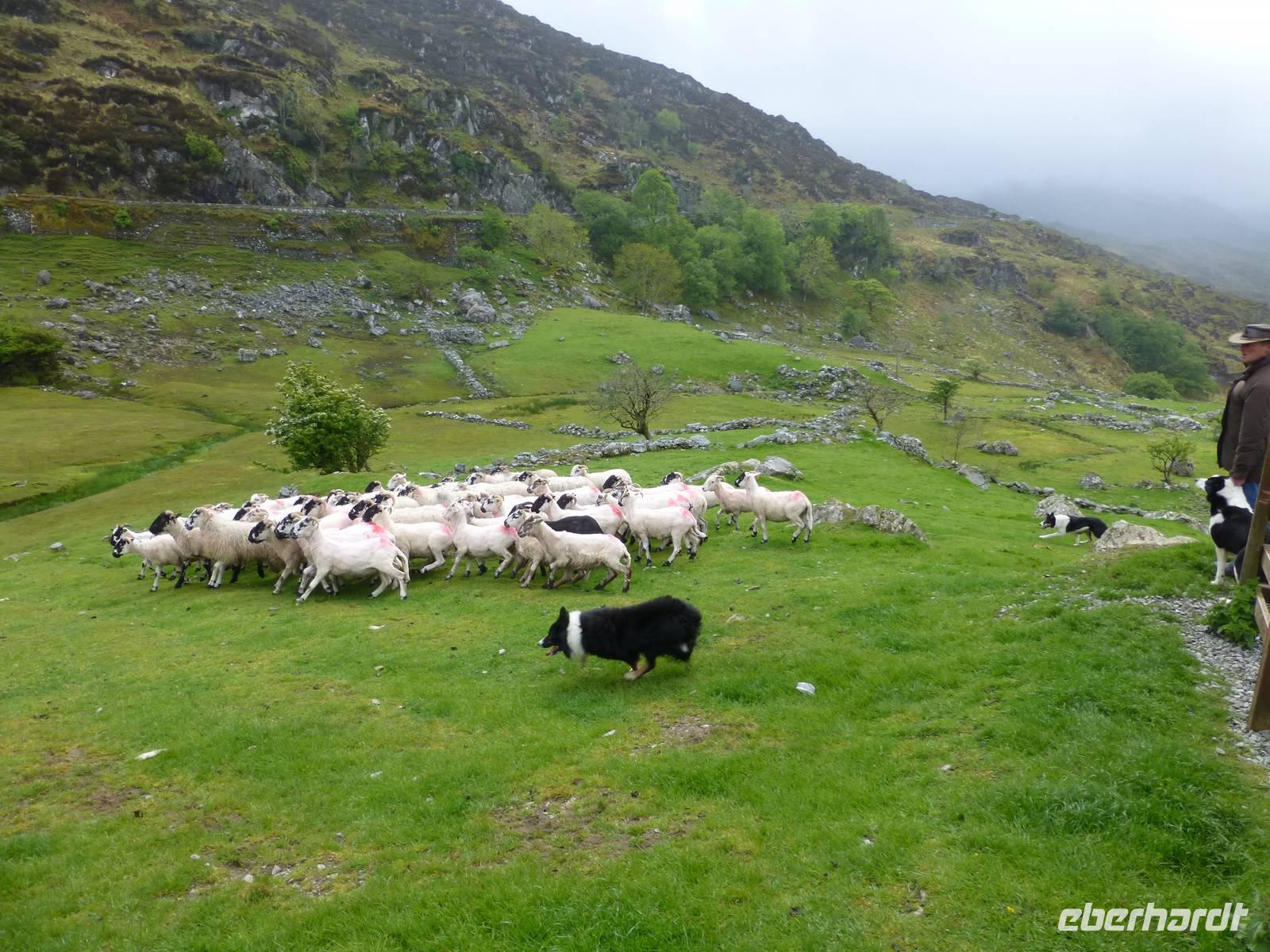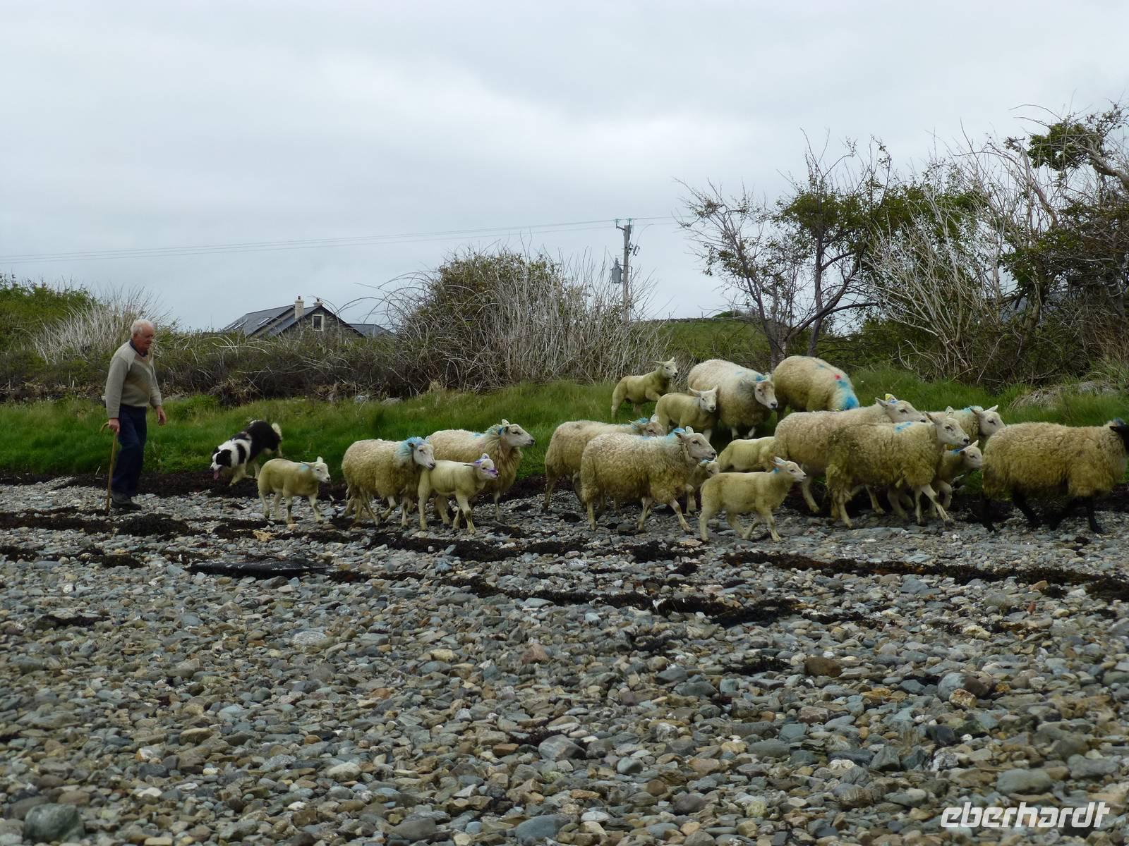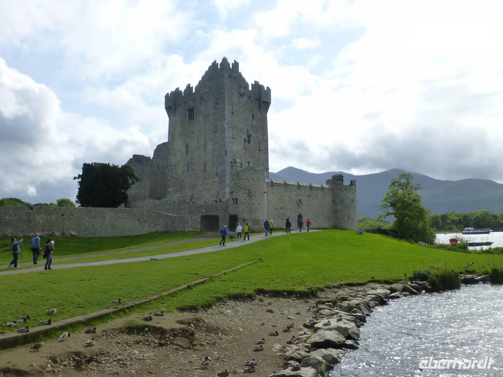 Nach dem Frühstück geht es auf zur Rundfahrt dem Ring of Kerry. Die Strecke führt gegen den Uhrzeigersinn einmal auf ca. 180 km um die Iveragh Halbinsel herum. Am Morgen haben wir eine wunderbare Sicht auf den Gebirgszug der Macgillycuddy's Reeks mit dem höchsten Berg Irlands, dem 1041 m hohen Carrantuohill. Dieser ist gleichzeitig auch der höchste Berg Irlands. Vom Aussichtspunkt Adgahoe haben auf die Berge und Seen von Killarny einen schönen Blick. Anschließend machen wir im Muckross Park einen Rundgang um das das alte Herrenhaus und durch einen Teil des Parks. Dabei bewundern wir die schönen Bäume, die Rhododendren und das riesige Mammutblatt. In Killorglin findet immer im August das „King Puck Fair" statt. Es ist ein Volksfest, bei welchem ein wild lebender Ziegenbock zum König Puck erhoben wird. Zuerst wird er eingefangen, dann inthronisiert, steht den nächsten Tag als König des Volksfestes im Mittelpunkt und wird dann am letzten Tag, wahrscheinlich stark verstört, wieder in die Freiheit entlassen. Inzwischen hat es leider zu regnen begonnen und starker Wind ist aufgekommen. Bei Cahersiveen befindet sich das Cahergall Ringfort. Wir können so sehen wie in früheren Zeiten, dieses hier stammt aus dem 10. Jh., die Menschen gelebt haben. Auf den hohen Mauern kann man gut herumlaufen und hat wie die Menschen damals einen Blick über das weite Land. Unsere Mittagspause verbringen wir in Waterville, einem Ort an der Ballinskelligbay, wo auch schon Charlie Chaplin gern Urlaub machte. Am Nachmittag besuchen wir die Kissane Sheepfarm, unweit von Moll's Gap gelegen. Hier können wir nicht nur sehen wie ein Schaf geschoren wird sondern auch lernen wie der Schäfer gemeinsam mit den Schäferhunden die Schafe auf der Weidefläche wieder zusammen treibt. Inzwischen traut sich die Sonne langsam wieder raus und so legen wir noch einen kurzen Stopp bei Ross Castle, einem mittelalterlichen Wohnturm, ein. Am Abend erreichen wir wieder Tralee.