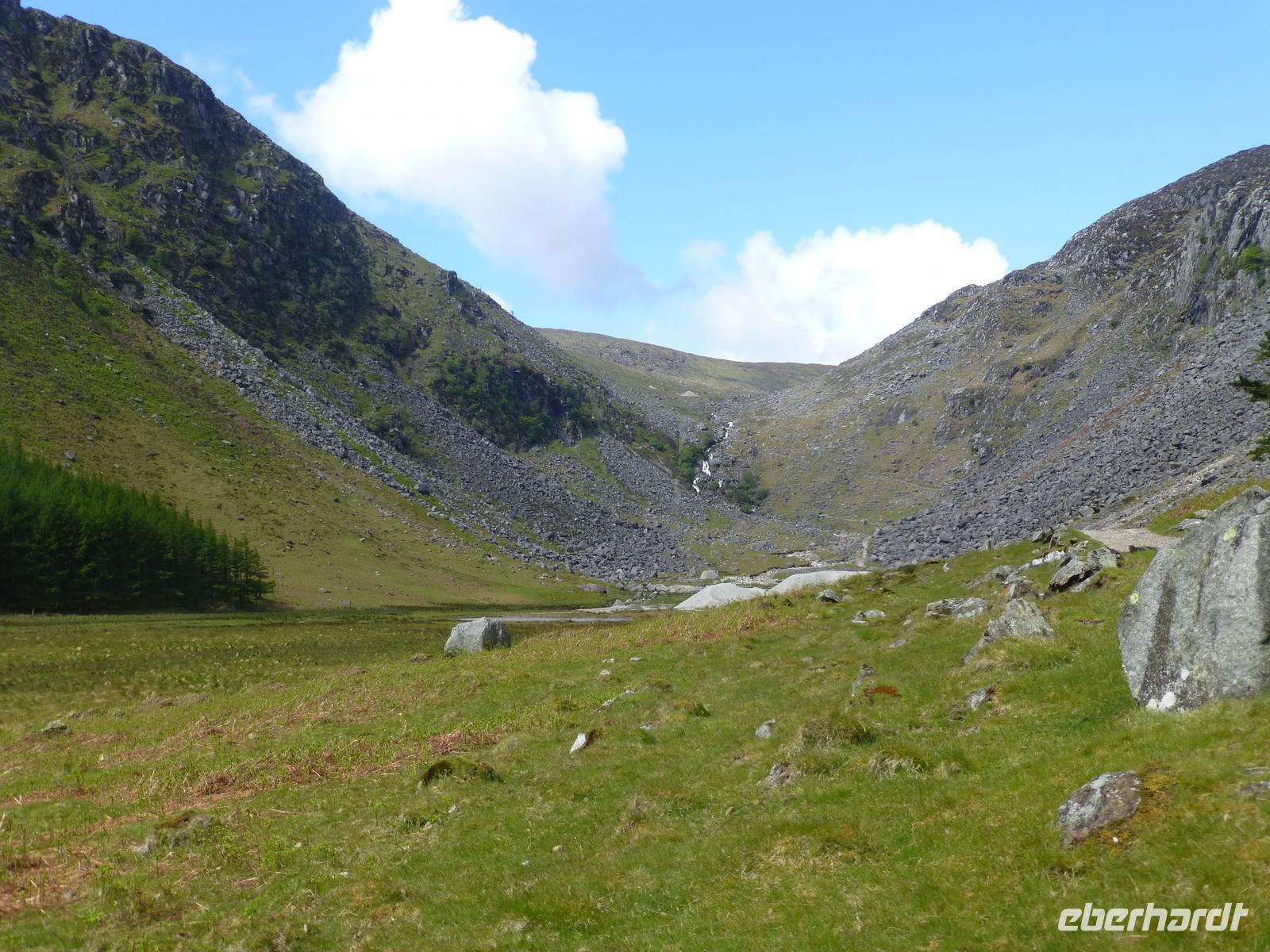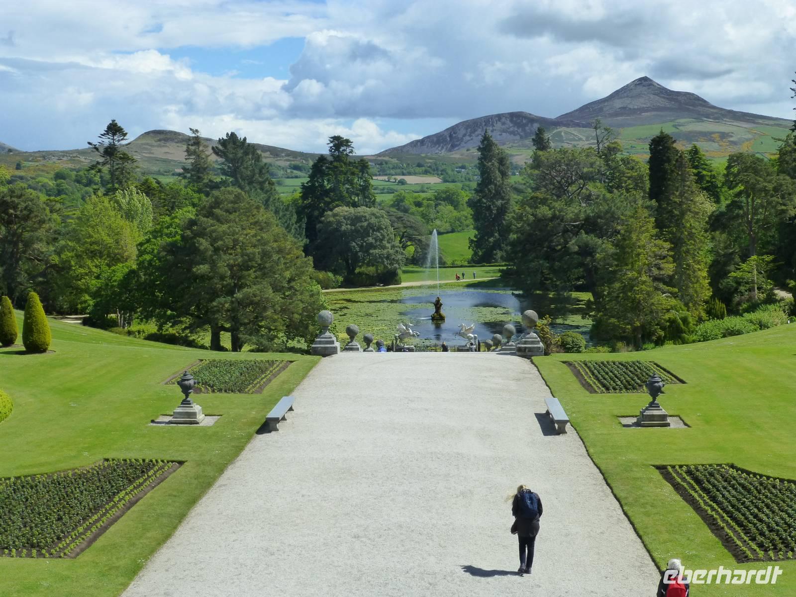 Ein Besuch der frühchristlichen Klostersiedlung Glendalough ist immer ein besonderes Erlebnis. Während des Rundgangs mit der charmanten Fiona erfahren wir etwas mehr über die Geheimnisse des im 6. Jh. durch St. Kevin gegründeten Klosters. Der christliche Glaube kam durch Patrick vom europäischen Festland nach Irland, verbreitete sich hier und wurde dann von irischen Mönchen wieder auf das europäische Festland zurück gebracht und in den Gebieten, welche nicht unter römischer Herrschaft waren, verbreitet. Sie zeigt und erklärt uns den Eingang zum Kloster, den Rundturm, die Kathedrale und Kevins Kitchen. Mit Charme und Witz bringt sie uns die Geschichte näher. Unsere Wanderung entlang des Lower und des Upper Lake führt bis zum ehemaligen Miners Village, wo sich einige verfallene Gebäude einer längst geschlossenen Bleimine befinden. Der Wind bläst uns vom Wicklow Gap herunter kräftig ins Gesicht und schlagartig werden wir von einem Regenschauer überrascht. Der geht so schnell wie er gekommen ist. Wir laufen am Ufer entlang zurück zum Upper Lake. Am Nachmittag besichtigen wir Powerscourt Garden, einen der am schönsten angelegten Gärten in Irland. Bei Sonnenschein genießen wir die Zeit hier. Am Abend lassen wir uns das hervorragende Essen im Hotel schmecken, welches von einem „Irish Coffee" gekrönt wird.