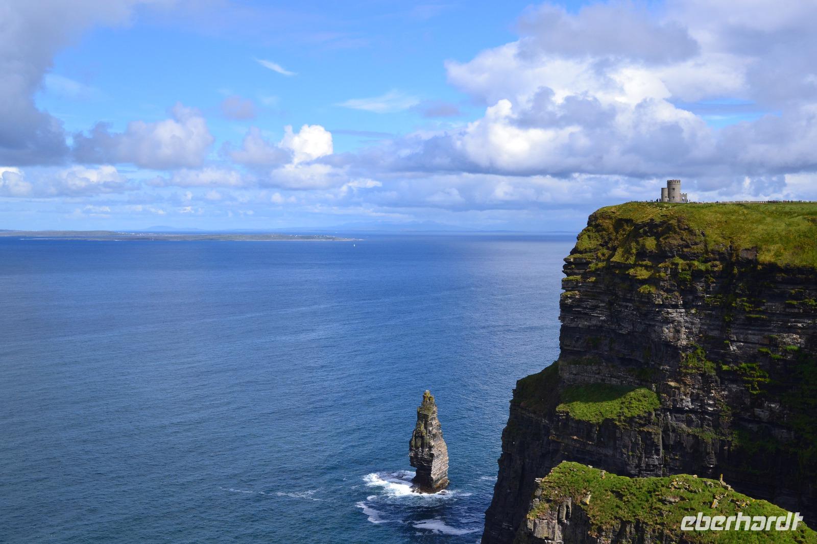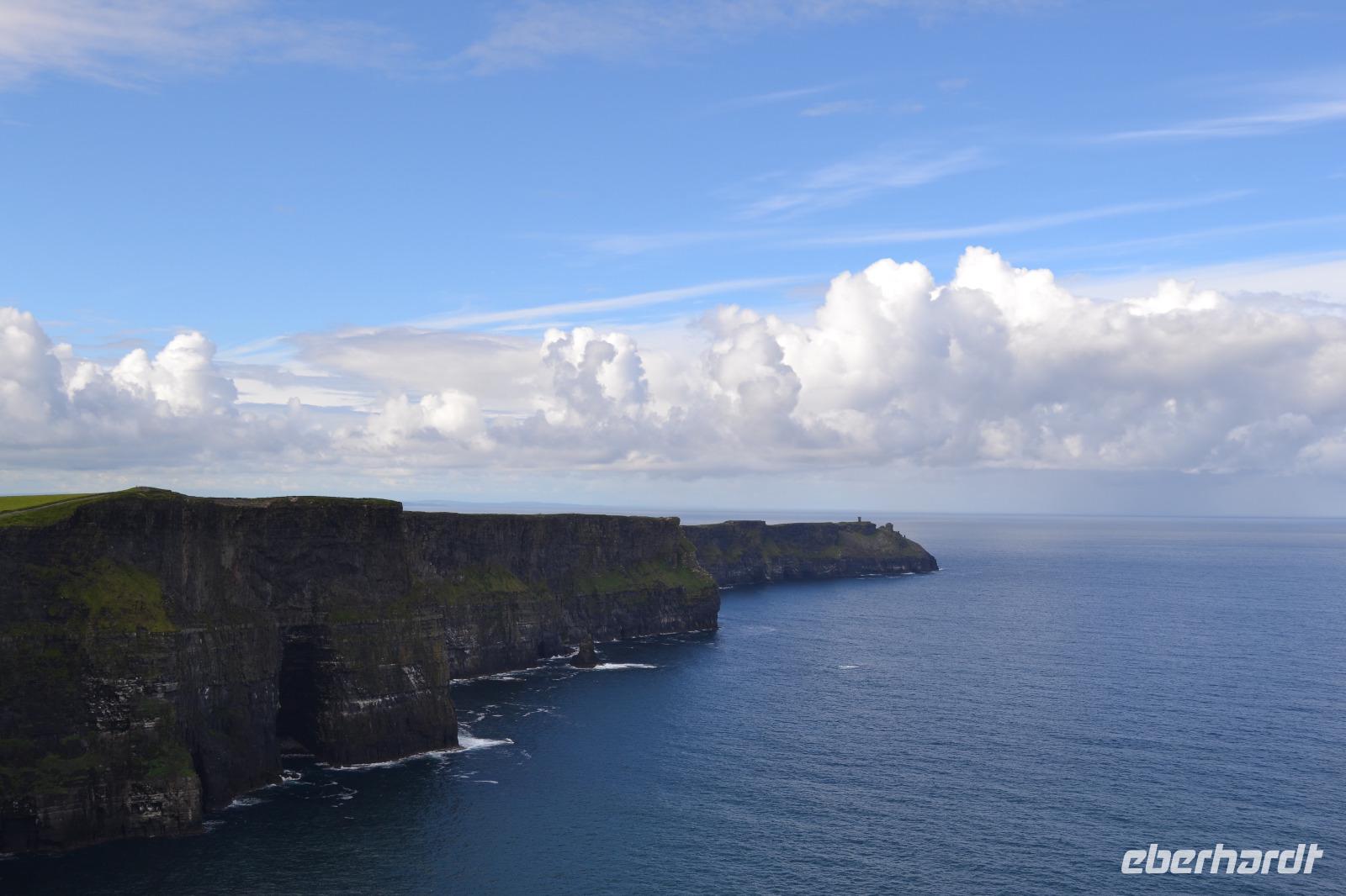 Neben dem Giant's Causeway sind die Cliffs of Moher sicher DIE Hauptattraktion in Irland. Beindruckend erheben sich die Klippen bis zu 200 m in die Höhe - bzw. in die Tiefe, denn wir schauen wieder einmal von oben hinab in das tosende Meer unter uns. Unglaublich viele Vögel nisten auf, in, über und unter den kleinen Felsvorsprüngen und „Höhlen" der Klippen. Wer ein Fernglas mithat, kann sogar Papageitaucher sehen! Und das sogar bei strahlendem Sonnenschein! Heute sehen wir auch die drei Aran Islands in der Ferne, deren Anblick uns gestern noch verwehrt wurde. Selbst die Klippen bei Dun Aenghus lassen sich mit bloßem Auge ausmachen. Nach einem Photostopp am Spanish Point überqueren wir mit der Fähre den Shannon, den mit 370 km längsten Fluss Irlands. In Listowel wartet dann eine Kuriosität auf uns: die Lartigue Monorail. Es handelt sich um eine Einschienenbahn (d. h. das Gewicht lastet nur auf einer Schiene) mit zwei Stabilisierungsschienen. So ergibt sich ein A-förmiger Querschnitt der Gleiskonstruktion. Die ursprüngliche Strecke war 10 Meilen lang und verband Listowel mit dem Strand in Ballybunion. Heute existiert auf einem Museumsgelände nur noch ein kleiner Abschnitt der ursprünglichen Strecke, die während des irischen Bürgerkriegs stark beschädigt und deshalb aufgegeben wurde. Mit viel Freude und Enthusiasmus werden wir von den Mitarbeitern durch das Gelände und das Museum geführt und dürfen zum Abschluss sogar mit der restaurierten Eisenbahn fahren. Ein sicher nicht alltägliches Erlebnis, das im Laufe des Abends noch für viele Gespräche sorgen wird. Nach einer kurzen Fahrt erreichen wir dann das „Brandon Hotel" in Tralee. Nach dem Abendessen besuchen die meisten Gäste die Vorstellung „Fadó Fadó" im Siamsa Tire Irish Folk Theater mit vielen traditionellen gälischen Volksweisen und - natürlich - auch vielen Tanzeinlagen.
