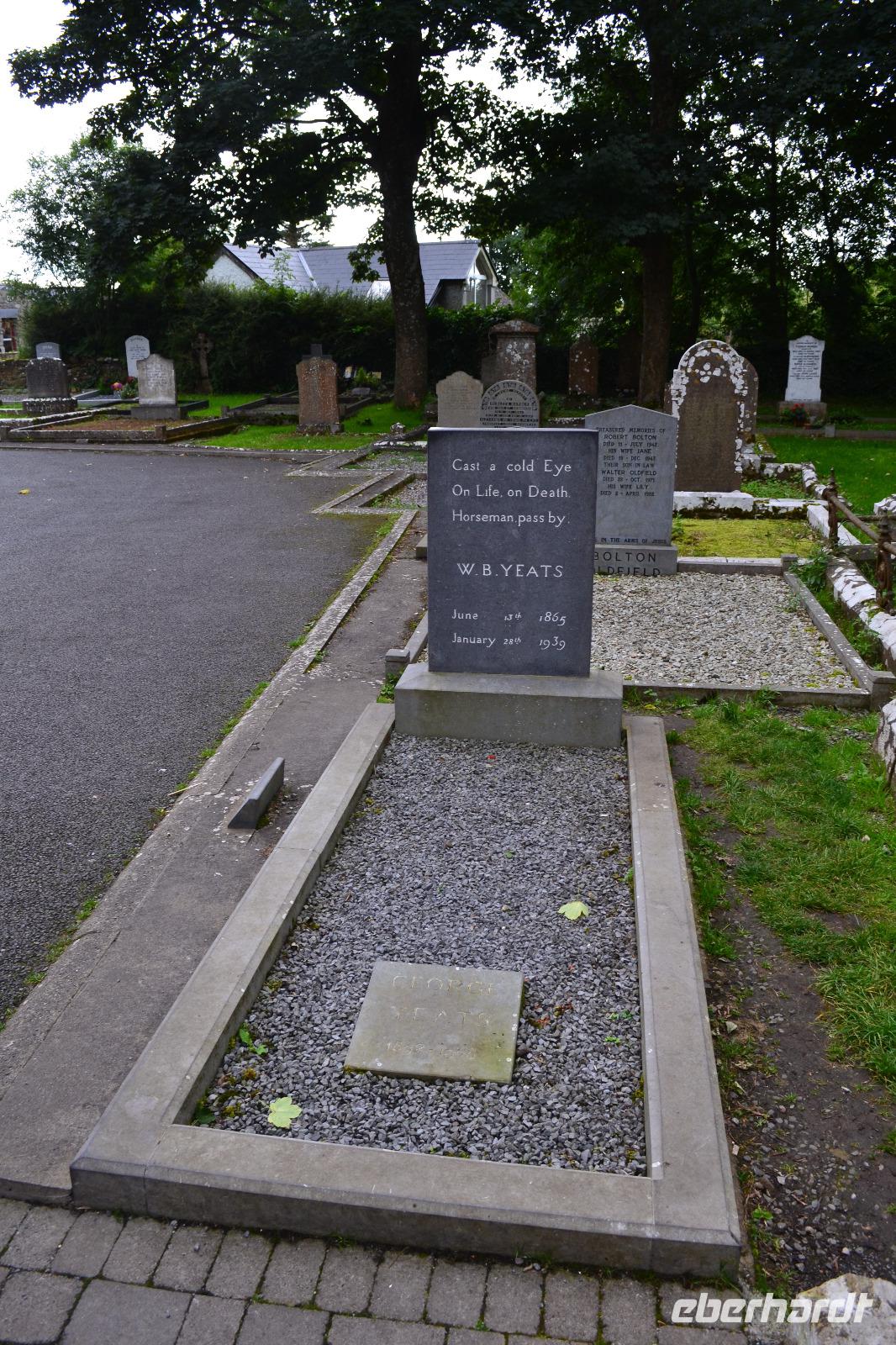 Das County Donegal gilt auch als das Alaska Irlands. Zeit also, unsere Zelte in Letterkenny abzubrechen und wieder in Richtung Süden zu ziehen! Am Friedhof von Drumcliff, unterhalb des markanten Tafelbergs Ben Bulben gelegen, machen wir unseren ersten Stopp. Hier befindet sich das Grab des irischen Nationaldichters William Butler Yeats, der im Jahr 1923 den Nobelpreis für Literatur erhielt. Der schmucklose graue Grabstein kann leicht übersehen werden und ist vor allem für seine von Yeats selbst gewählte Inschrift bekannt: „Cast a cold Eye / On Life, on Death / Horseman pass by" (Werfe einen kalten Blick / Auf Leben, auf Tod / Reiter und dann zieh weiter). Nach einem Blick in die kleine, aber sehr schöne Kirche des Friedhofs tun wir das dann auch - weiterziehen. Schließlich wollen wir an diesem Tag noch ein weiteres und wesentlich größeres Grabmahl besichtigen. Wir erklimmen also den Gipfel des Knocknarea unweit von Sligo. Hier soll die sagenumwobene Kriegerkönigin von Connacht, Maeve, begraben sein, aufrecht, in voller Rüstung, den Blick gen Ulster in Richtung ihrer Todfeinde gerichtet. Das Problem an dieser Legende: Der Cairn auf dem Gipfel des Knocknarea wurde errichtet lange bevor Maeve überhaupt gelebt haben soll (im 1. Jh. n. Chr.) - falls sie denn jemals existierte. Über Irland verstreut gibt es zudem noch viele andere Orte, an denen sie begraben sein soll. Wir genießen trotzdem den Blick auf den Ben Bulben und den Atlantik, ehe uns der raue Wind wieder hinuntertreibt. Beim Abstieg werden wir von einer Herde Schafe verfolgt und fast eingekreist, doch wir können uns alle in den Bus und in die wohlverdiente Mittagspause retten. Ein Besuch in der kleinen Hafenstadt Westport rundet unser Tagesprogramm ab. Wir haben Gelegenheit gemütlich einen Kaffee oder Tee zu trinken und Proviant für das Wochenende zu kaufen. Am Abend erreichen wir unser Hotel in Leenane, dass sich direkt am Killary Harbour befindet, dem einzigen Fjord Irlands. Alle sind sehr begeistert von ihren Zimmern mit Blick auf das Wasser. Auch das leckere, reichhaltige Abendessen lässt nichts zu wünschen übrig (vor allem die Desserts) und so fallen wir alle glücklich und zufrieden in unsere Betten, bereit für ein neues Abenteuer.