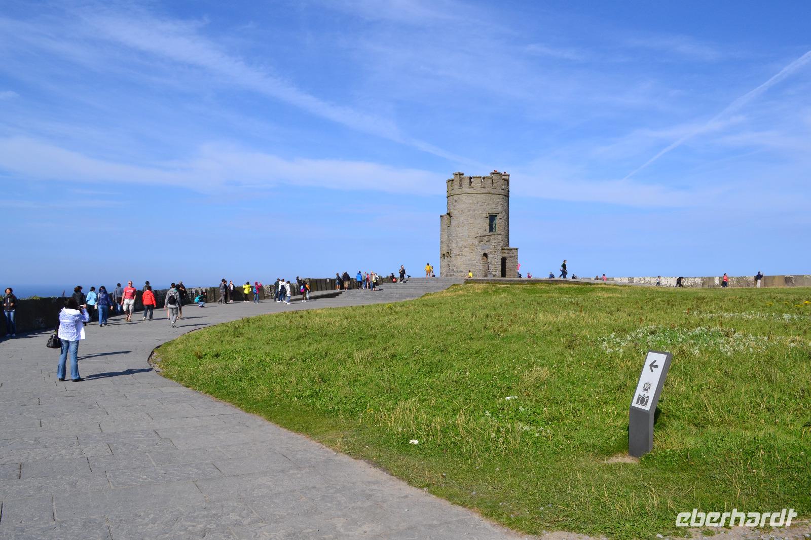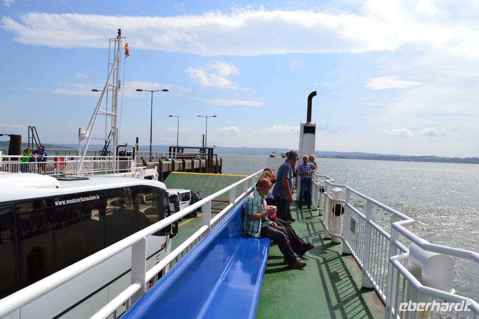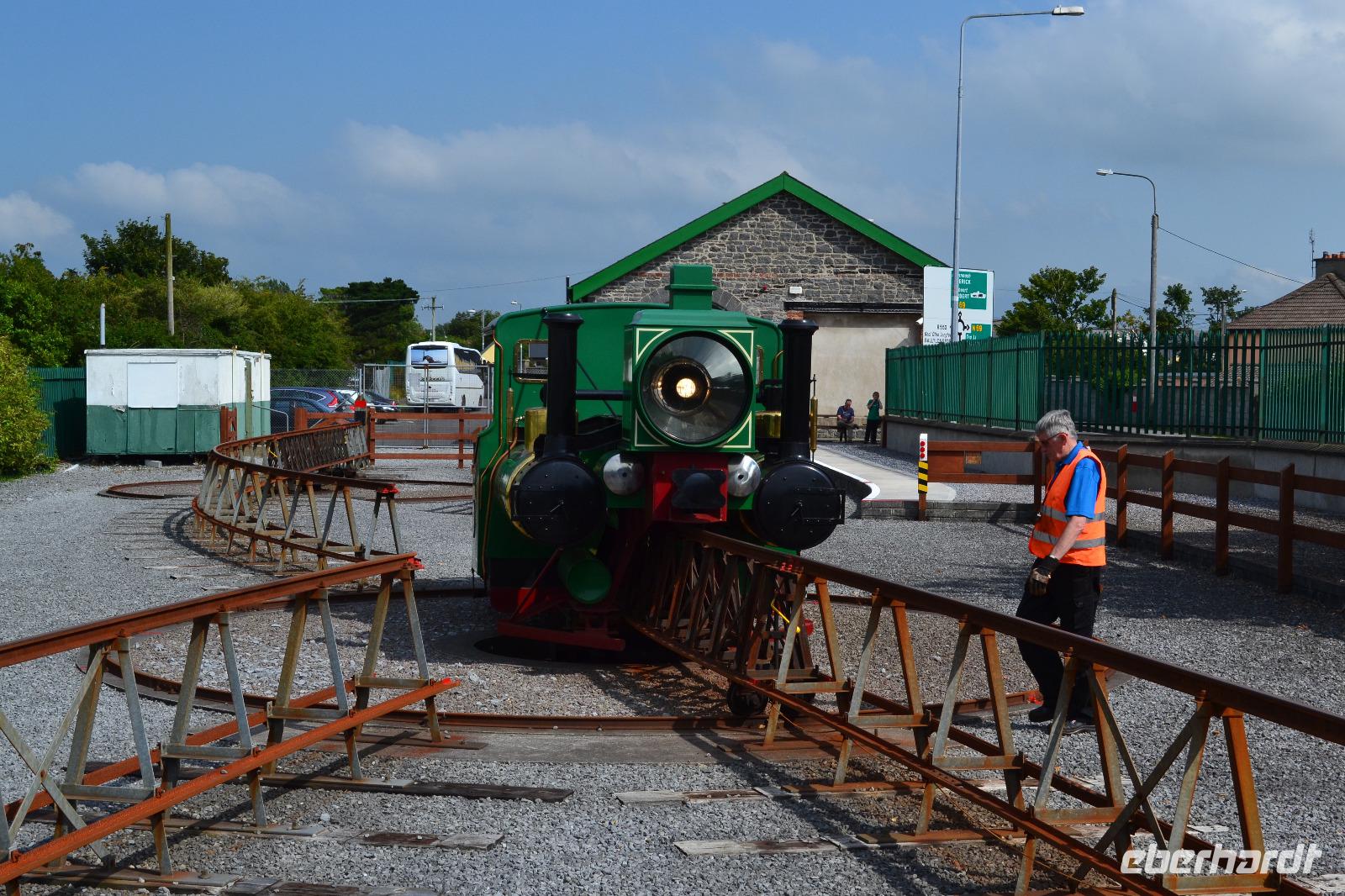 Nachdem wir die Cliffs of Moher gestern schon aus der Ferne gesehen haben, schauen wir sie uns heute aus der Nähe an. Bis zu 200 m geht es in die Tiefe. Die vielen Felsvorsprünge und kleinen höhlenartigen Öffnungen der Klippen sind Nistplatz für eine unglaubliche Anzahl von Vögeln, vor allem Möwen. Auch Papageientaucher finden sich hier, jedoch sind wir dafür im August etwas zu spät. Auch von hier aus sind noch einmal die Aran Islands zu sehen, selbst die Klippen bei Dun Aenghus lassen sich mit bloßem Auge erkennen. Am Spanish Point machen wir aus Zeitgründen nur einen kurzen Photostopp. Hier landeten die Überreste der Spanischen Armada und hofften vergeblich auf Hilfe der einheimischen katholischen Bevölkerung. Der Strand sind wirklich sehr einladend aus, doch wir müssen weiter, denn wir wollen 14 Uhr mit der Fähre den Shannon überqueren, den mit 370 km längsten Fluss Irlands. In Listowel besichtigen wir anschliessend die Lartigue Monorail. Es handelt sich um eine Einschienenbahn (d. h. das Gewicht lastet nur auf einer Schiene) mit zwei Stabilisierungsschienen. So ergibt sich ein A-förmiger Querschnitt der Gleiskonstruktion. Die ursprünglich 10 Meilen lange Stecke verband Listowel mit dem Strand in Ballybunion. Es wurden sowohl Personen als auch Lasten und sogar Kühe transportiert. Heute existiert auf einem Museumsgelände nur noch ein kleiner Abschnitt der ursprünglichen Strecke, die während des irischen Bürgerkriegs stark beschädigt und deshalb aufgegeben wurde. Mit viel Freude und Enthusiasmus werden wir von den Mitarbeitern durch das Gelände und das Museum geführt und dürfen zum Abschluss sogar mit der restaurierten Eisenbahn fahren, nachdem wir uns gleichmässig auf beide Hälften der Waggons verteilt haben. Ein sicher nicht alltägliches Erlebnis! Von Tralee aus sind es dann noch etwa 30 min zum "Brandon Hotel" in Tralee. Hier in Tralee sind die Vorbereitungen für das jährliche "Rose of Tralee" Festival in vollem Gange. Bei diesem Wettbewerb wird das schönste Mädchen gekürt, das entweder aus Irland stammt oder irische Vorfahren besitzt. Auch eine Deutsche ist in diesem Jahr dabei. Allerdings ist es kein klassischer Schönheitswettbewerb, denn die Bewerberinnen müssen vor allem auch Singen und Tanzen können. Nach dem Abendessen besuchen die meisten Gäste mit mir das Theaterstueck „Oileán" im Siamsa Tíre National Irish Folk Theatre.