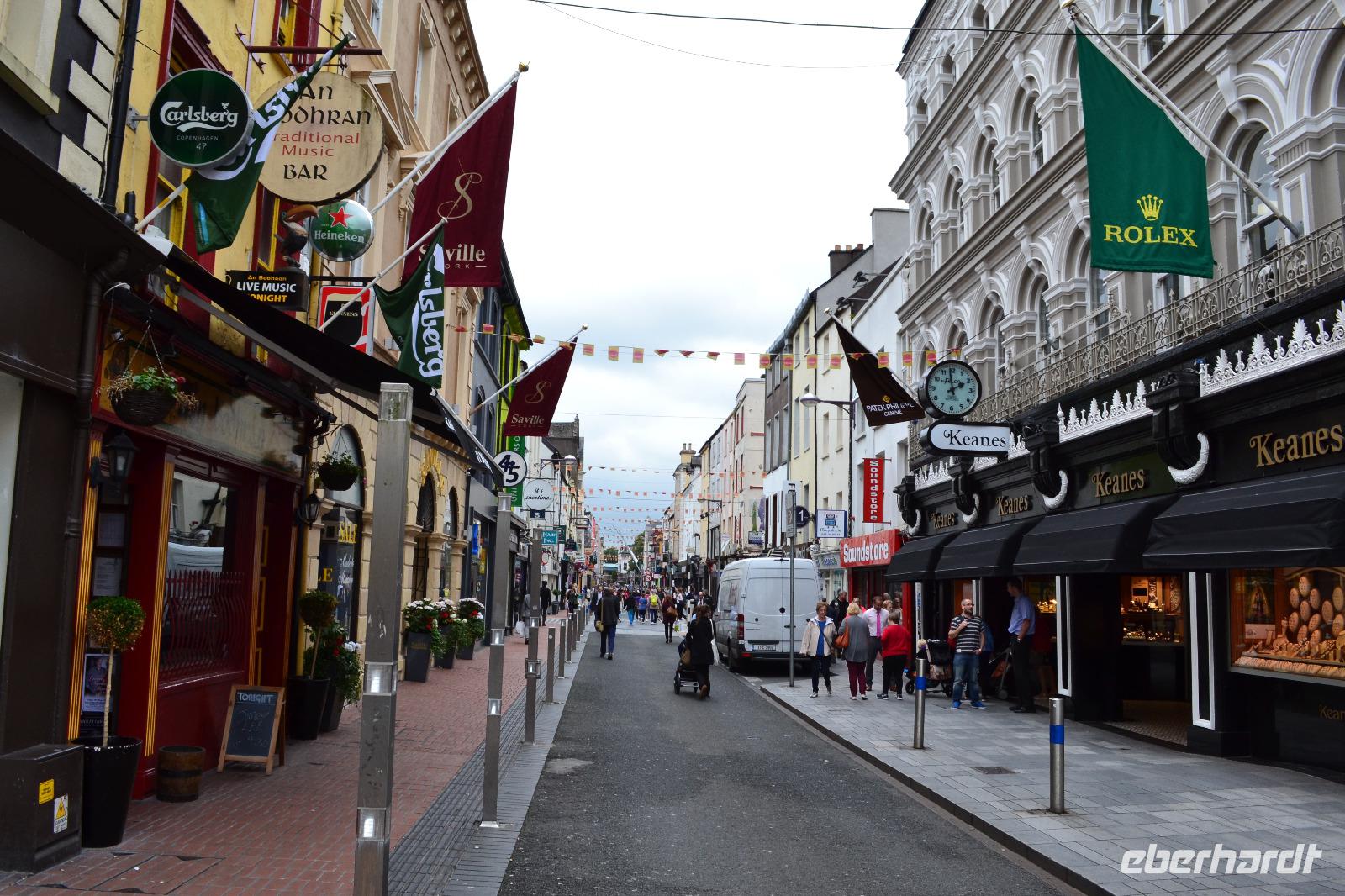 Am Ende des heutigen Tages werden wir Irland einmal von West nach Ost durchquert haben und wieder in der Nähe von Dublin angekommen sein. Zwei Programmpunkte unterteilen allerdings die lange Fahrstrecke, so dass auch die Bewegung nicht zu kurz kommt. Wir besichtigen das Blarney Castle und dessen wunderschöne Park- und Gartenanlagen. Blarney Castle ist besonders für den Stein der Beredsamkeit bekannt, den man der Legende nach auf dem Rücken liegend küssen muss, um diese Gabe zu erlangen. Man wird dabei selbstverständlich von Mitarbeitern gesichert, denn es geht vom Bergfried aus ein ganzes Stück nach unten... Wer über die Gabe der Beredsamkeit bereits verfügt, sollte die Zeit lieber nutzen um den Park zu erkunden. Vielleicht ist das auch die bessere Option, denn der Herr Blarney hat der Legende nach zwar viel geredet, aber inhaltlich wenig gesagt. In der Umgebung der Burgruine verstecken sich u. a. ein Hexenstein, ein Giftgarten und eine Wunschtreppe, die man rückwärts und mit geschlossenen Augen meistern muss. In Cork, der drittgrößten Stadt Irlands, spazieren wir gemütlich zum English Market, in dem es viele Delikatessen zu bewundern gibt, von seltenen Fischarten, über Fleisch- und Wurstwaren, Käse und Pralinen zu meinem persönlichen Favoriten: Schokoladenkuchen! In den Straßen von Cork brummt das Leben und fast an jeder Ecke gibt es Straßenmusiker. Diesmal bleibe ich bei einem gemischten Herrenquartett stehen, die auf ihren Instrumenten irische Folkmusik darbieten. Bekannt ist Cork auch für seinen Hafen Cobh (das ehemalige Queenstown), dem letzten Stopp der Titanic auf ihrer verhängnisvollen Jungfernfahrt nach Amerika. Über die Autobahn fahren wir an Cashel vorbei Richtung Dublin, wo wir dann am Autobahnring gen Süden in die Wicklow Mountains abbiegen.