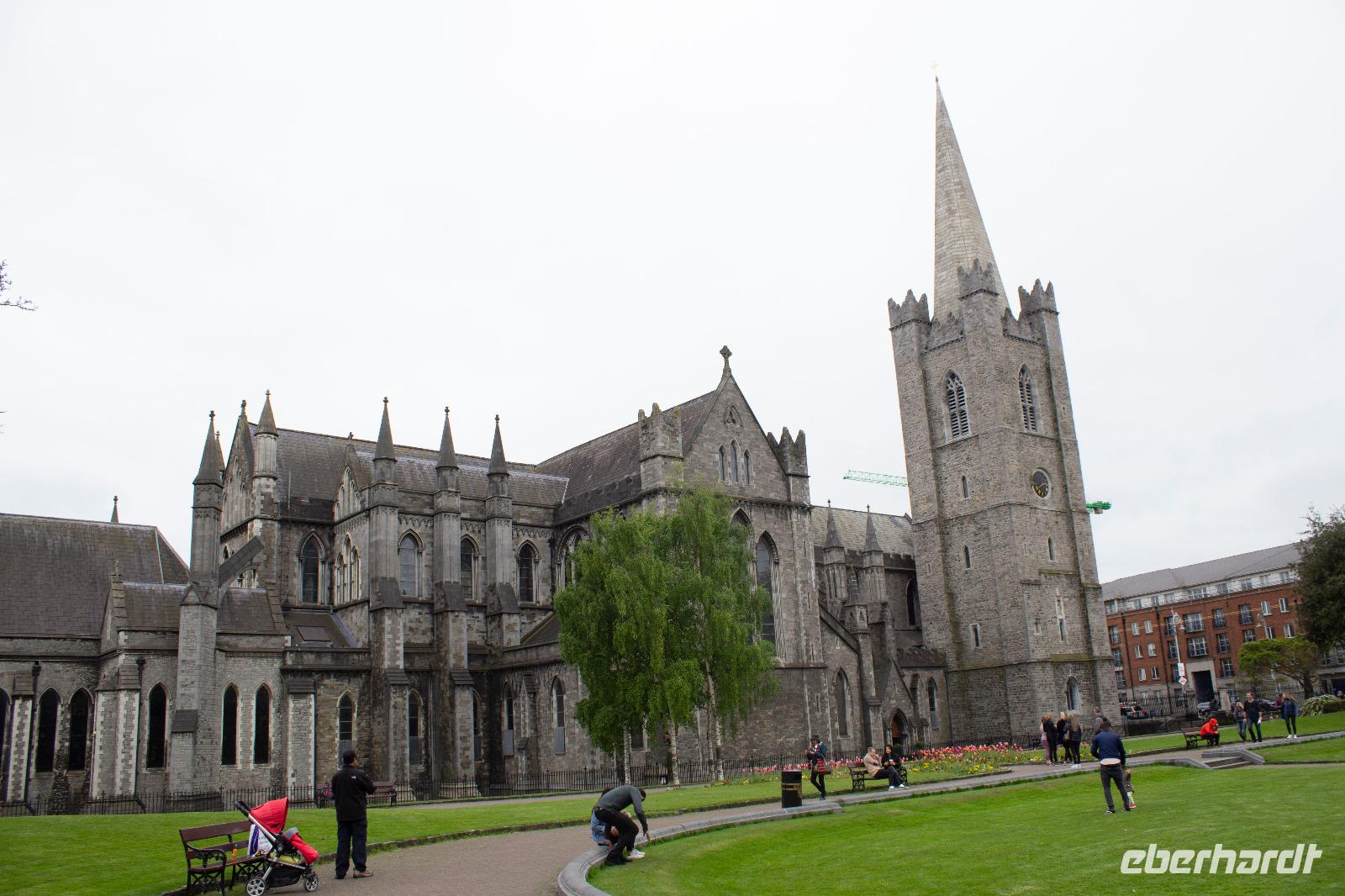 Unseren ersten Fotostopp legten wir gleich unweit unseres Hotels, an der St. Patricks Kathedrale, ein. Das Gebiet, auf dem sie steht, befand sich früher außerhalb der Stadtmauer. Seit ihrem Umbau im 19.Jh. ist sie die größte Kirche Irlands. Danach fuhren wir in den Phönix Park, einem riesigen öffentlichen Park mit Zoo, Sport- und Erholungsanlagen. Über die Daniel O'Connel Street ging es dann zum Fitz-William-Square, an dem wir ein zweites Mal anhielten, um zu fotografieren. Wir bewunderten die schönen georgianischen Haustüren und Hauseingänge. Anschließend ging es zum Merrion Square. Dort statteten wir dem Denkmal von Oscar Wilde einen Besuch ab. Am St. Stephen's Green stiegen wir schließlich ein letztes Mal aus und legten den restlichen Teil unserer Stadtbesichtigung mit Hillary zu Fuß zurück. Anschließend war bis zum Abendessen im Hotel noch etwas Freizeit und nach dem Essen ging es zum Temple Bar-Bezirk, um durch die lebhaften Gassen zu spazieren und die Pubs zu besuchen.