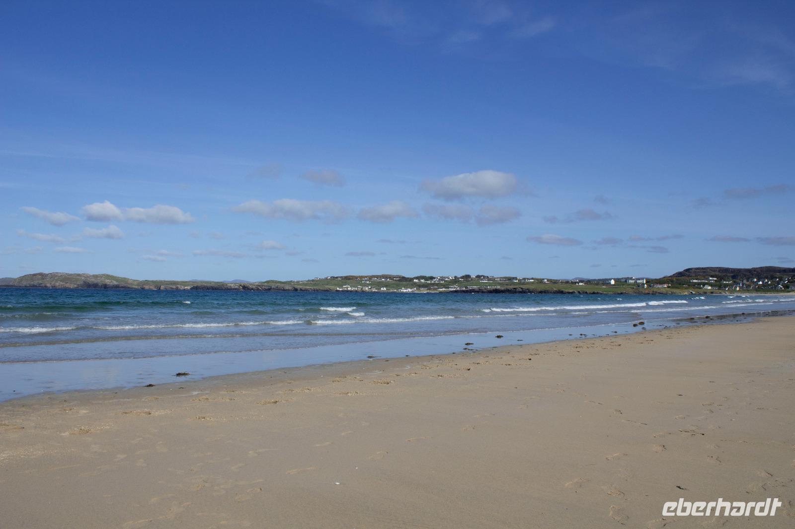 Nach unserer Picknickpause ging es zurück zum Schloss und wer wollte, der konnte hinauf zu einem Aussichtspunkt oberhalb des Schlosses mitkommen. Alle nutzen die Gelegenheit und von dort wanderten wir die vier bis fünf Kilometer zum Besucherzentrum zurück. Dort angekommen fuhren wir zum Strand von Dunafanaghy an die Nordküste Donegals, wo uns der Wind den Sand um die Ohren blies. Anschließend ging es zurück zum Hotel nach Letterkenny.