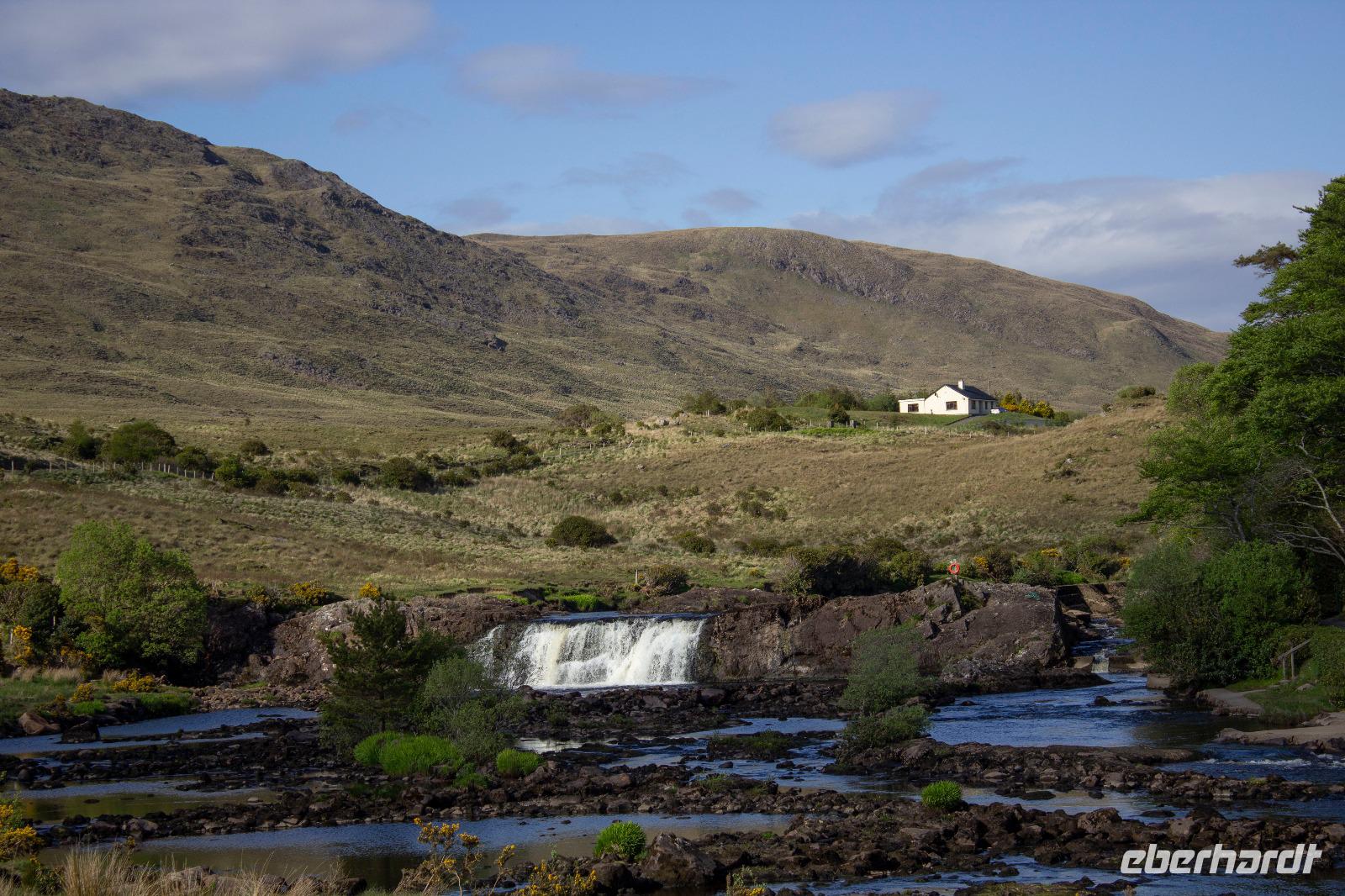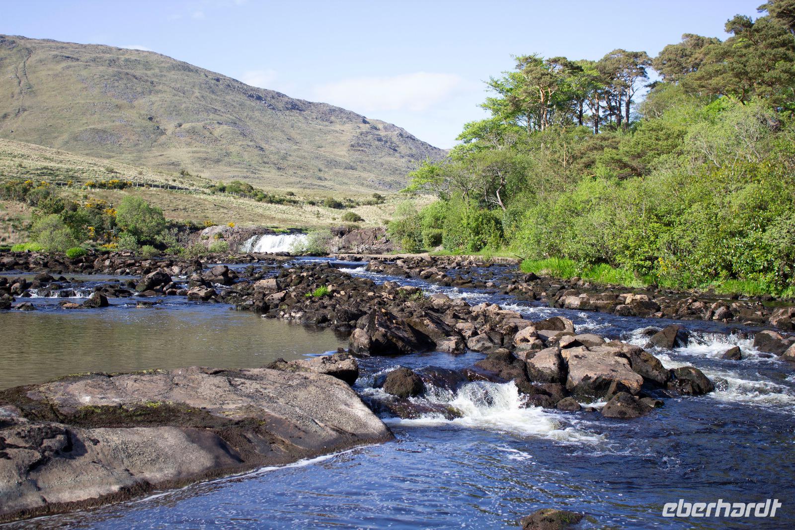 Entlang der Clew Bay ging es anschließend vorbei am Berg „Croagh Patrick", dem „heiligen" Berg der Iren. Auf ihm verbrachte Irlands Nationalheiliger, der Heilige Patrick, eine 40tägige Fastenzeit, an die jedes Jahr, am letzten Sonntag im Juli, mit einer Berg-Wallfahrt erinnert wird. Auf unserer Weiterfahrt legten wir noch zwei Fotostopps am Lough Doo und an den Aasleagh Falls am River Erriff ein. Letztere liegen herrlich eingebettet in der sie umgebenden Bergwelt. Danach fuhren wir entlang des Fjordes „Killary Harbor" zu unserem Hotel in Leenane.