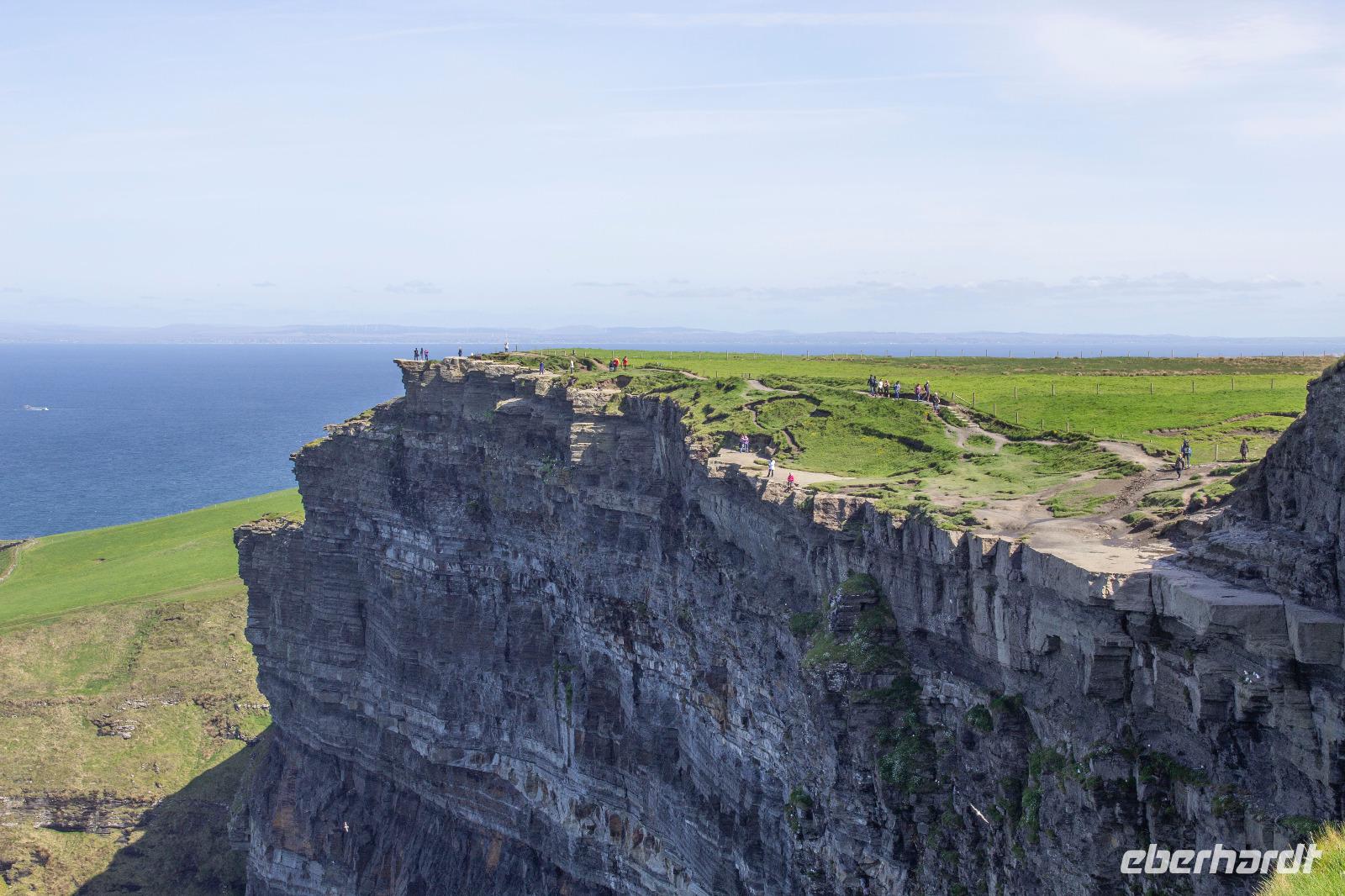 Von Gort aus fuhren wir über Ennis zu den Cliffs of Moher. Wir hatten wahnsinniges Glück mit dem Wetter! Eine atemberaubende Sicht und Sonnenschein! Von den Cliffs fuhren wir dann weiter zum kleinen Fährhafen von Killimer und setzten von dort mit der Fähre über den Shannon-Fluss nach Tarbert über. Manchmal sieht man bei der Fährüberfahrt Delfine. Dieses Mal hatten wir leider kein Glück. Unser nächstes Ziel war das hübsche Städtchen Listowel. Eine besondere Attraktion ist die Lartigue-Einschienenbahn. Von zwei konzipierten Strecken war die Strecke von Listowel nach Ballybunion die einzige, die gebaut wurde und tatsächlich den Betrieb aufnahm. Nach 36 Jahren wurde sie 1924 wieder eingestellt. Wir hatten während einer Fahrt auf diesem kuriosen Schienenstrang viel Spaß und freuten uns, dass dem Listoweler Lartigue-Monorail-Verein die Wiederbelebung eines ca. 500 Meter langen Streckenabschnittes gelungen ist. Anschließend ging es mit dem Bus zu unserem Hotel in Tralee. Nach dem Zimmerbezug trafen wir uns zum gemeinsamen Abendessen. Am Abend besuchten wir im Siamsa Tire- National Folk Theatre die Show „Fado, Fado", eine atemberaubende Vorstellung aus Tanz, Musik und Gesang. Direkt vom Theater aus ging es dann in den Pub, wo wir bei toller Live-Musik den Abend ausklingen ließen.