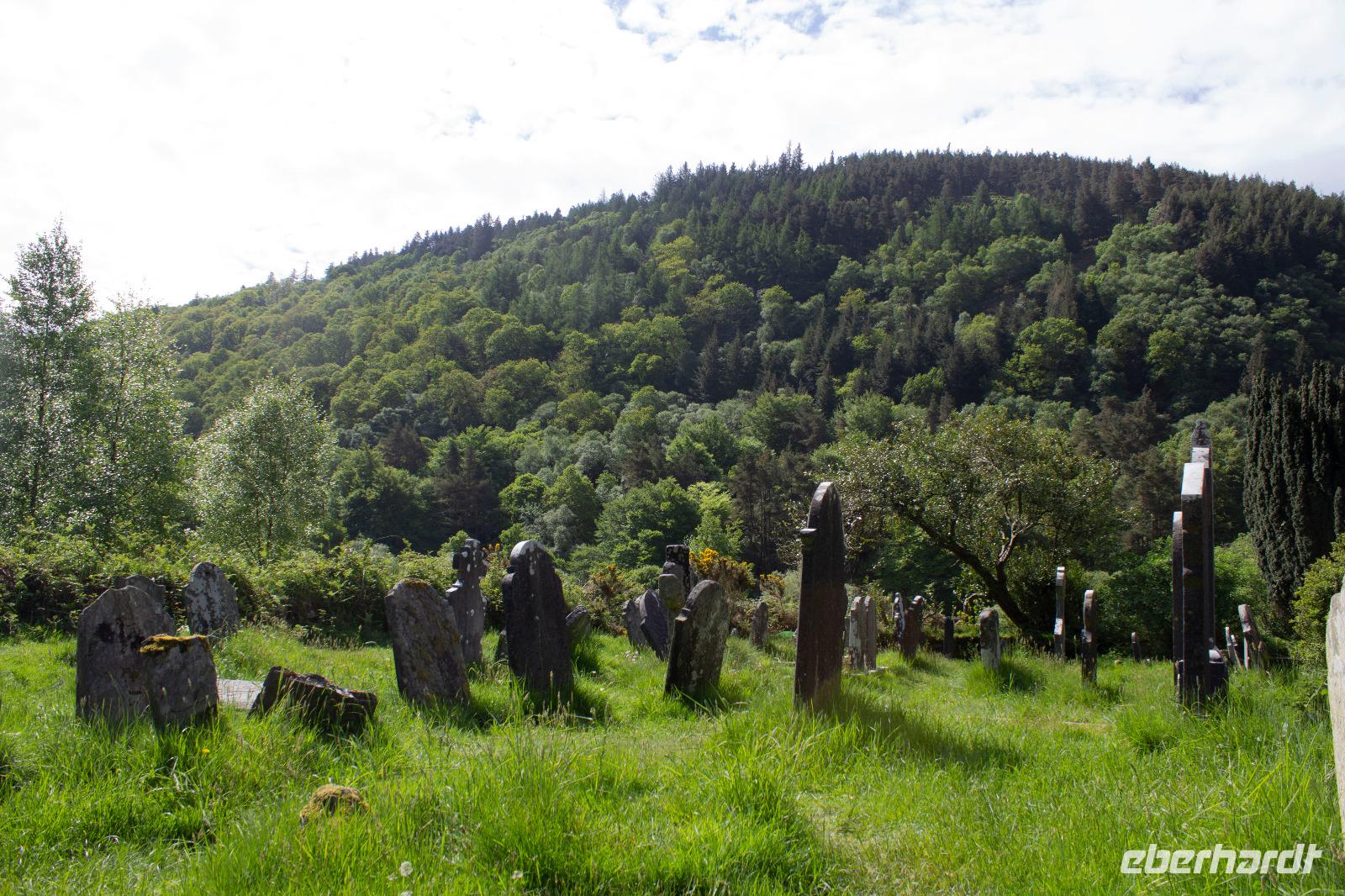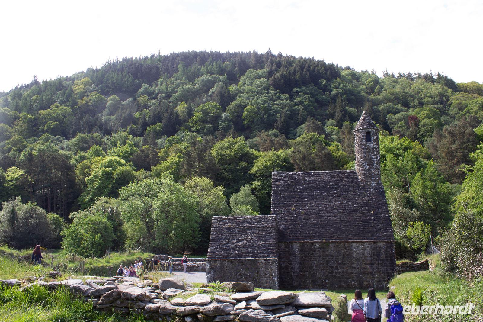 Unser letzter Wandertag begann mit der Busfahrt nach Glendalough, einer im 6. Jh. gegründeten frühchristlichen Klostersiedlung. Im Besucherzentrum sahen wir uns zunächst einen Film über das Christentum auf der irischen Insel an. Viele Orte und Geschichten daraus hatten wir bereits auf unserer Reise gesehen und kennengelernt. Bis zu tausend Schüler sollen einmal im Klosterbezirk Glendalough gewohnt haben, bis Überfälle der Wikinger und Feuerbrünste dem Klosterleben ein Ende setzten. Später war der Bezirk ein beliebter Wallfahrtsort. Der Rundturm und das Haus des Priesters sind erstaunlich gut erhalten. Von der Kathedrale stehen noch die Seitenwände. Der gesamte Komplex ist von mystischer Anziehungskraft.