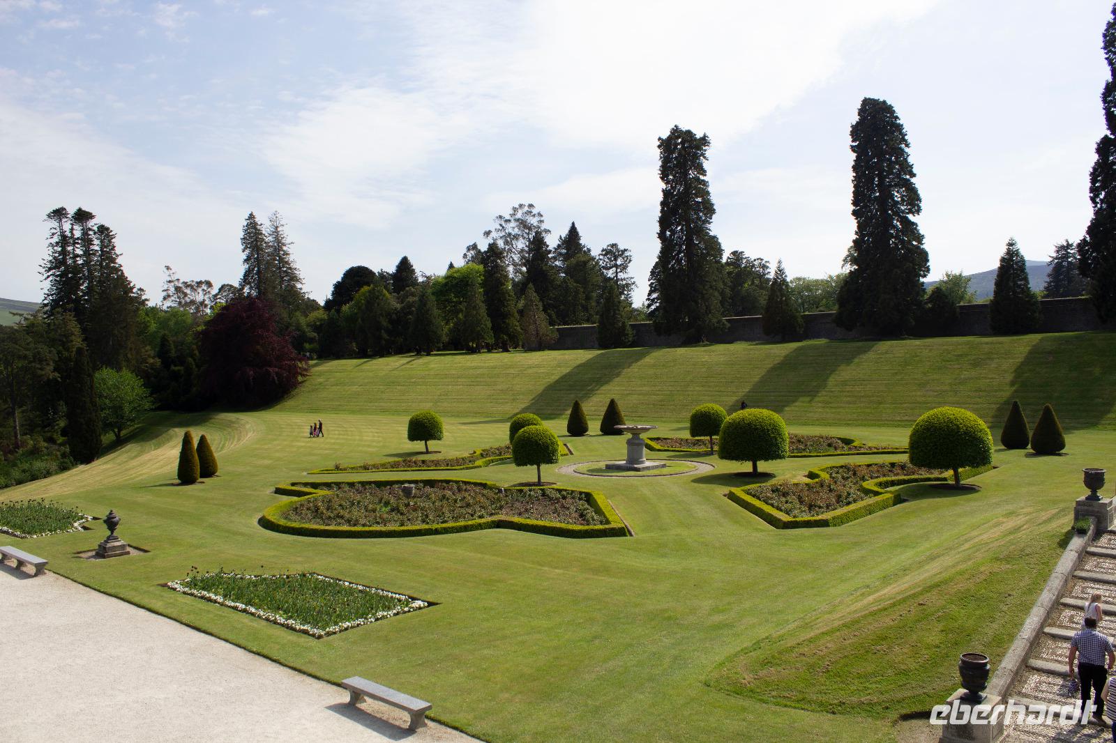Von Glendalough aus fuhren wir anschließend durch die Wicklow Mountains zu den Powerscourt-Gärten. Den Mittelpunkt dieser Anlage bildet das an höchster Stelle liegende Herrenhaus, in welchem sich heute Kunsthandwerksgeschäfte und ein Cafè befinden. Sobald wir aus dem Herrenhaus in die Gartenanlage hinaustraten, eröffnete sich uns ein weitläufiger Blick auf die vor uns liegende Terrassenanlage, den See und den im Hintergrund aufragenden Berg Sugerloaf (Zuckerhut). Die Gärten sind sehr gepflegt und unterteilen sich nach einzelnen Themenbereichen. Den Besuch der schönen Garten- und Parkanlage schlossen viele von uns mit einem Kaffee auf der Außenterrasse des Herrenhauses ab. Anschließend fuhren wir zum Abendessen zu unserem Hotel zurück.